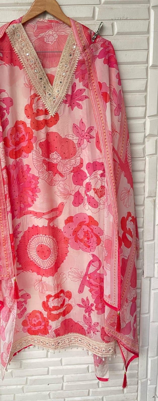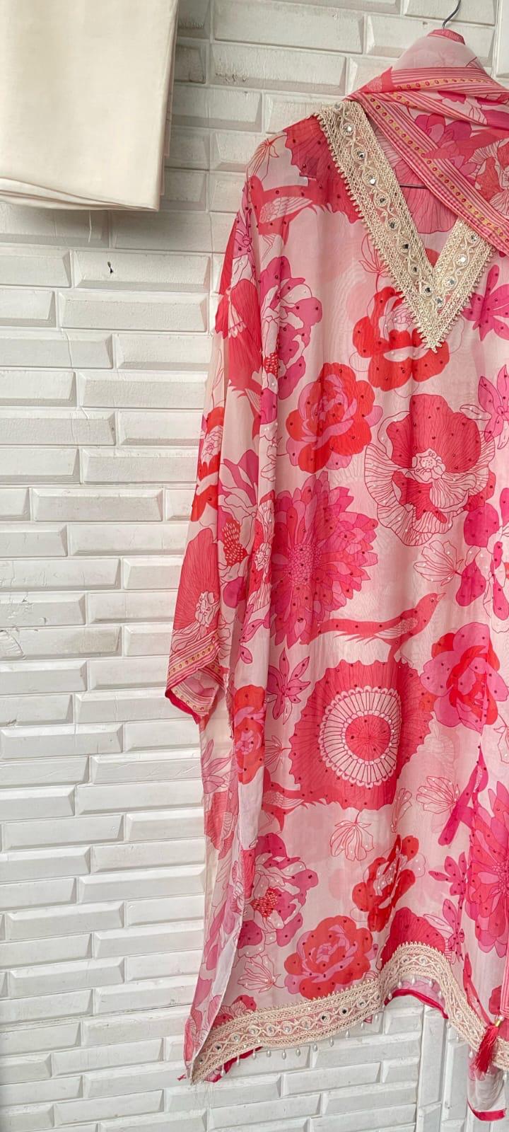 😊 organza printed fabric unstitched shirt with pearl beads embroidery