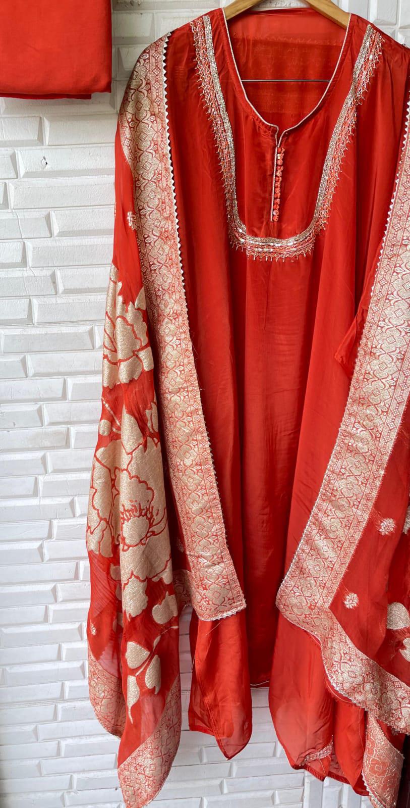 😊organza unstitched shirt with Dabka sequins Resham embroidery