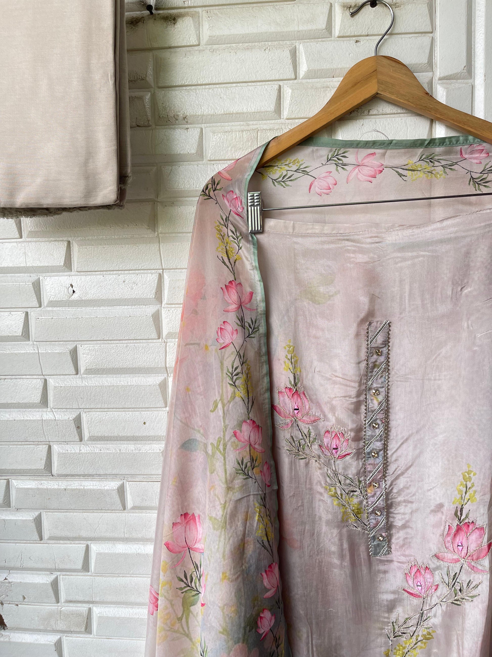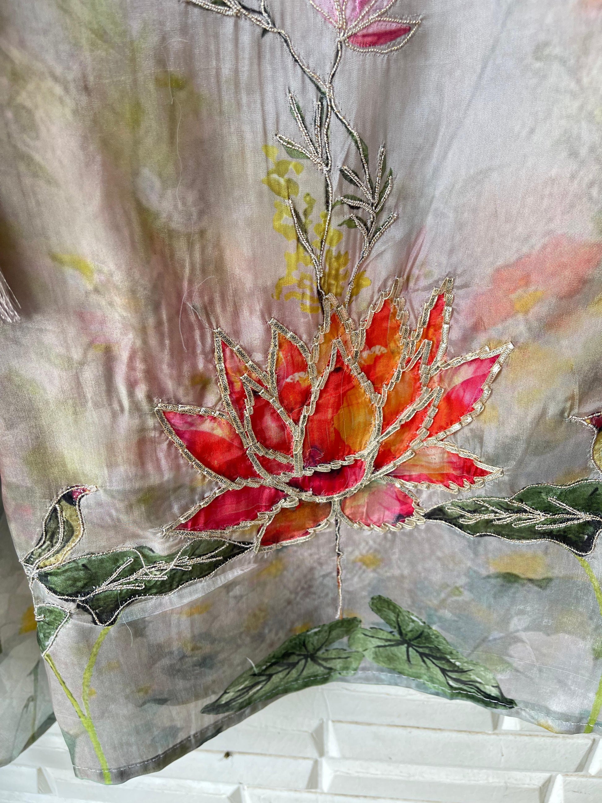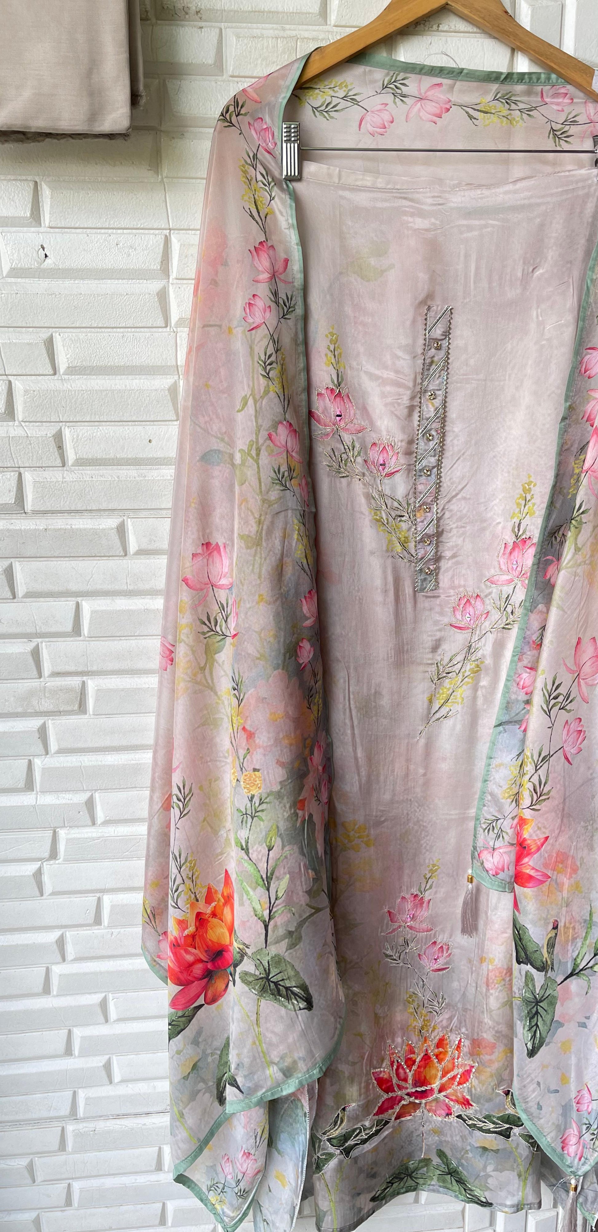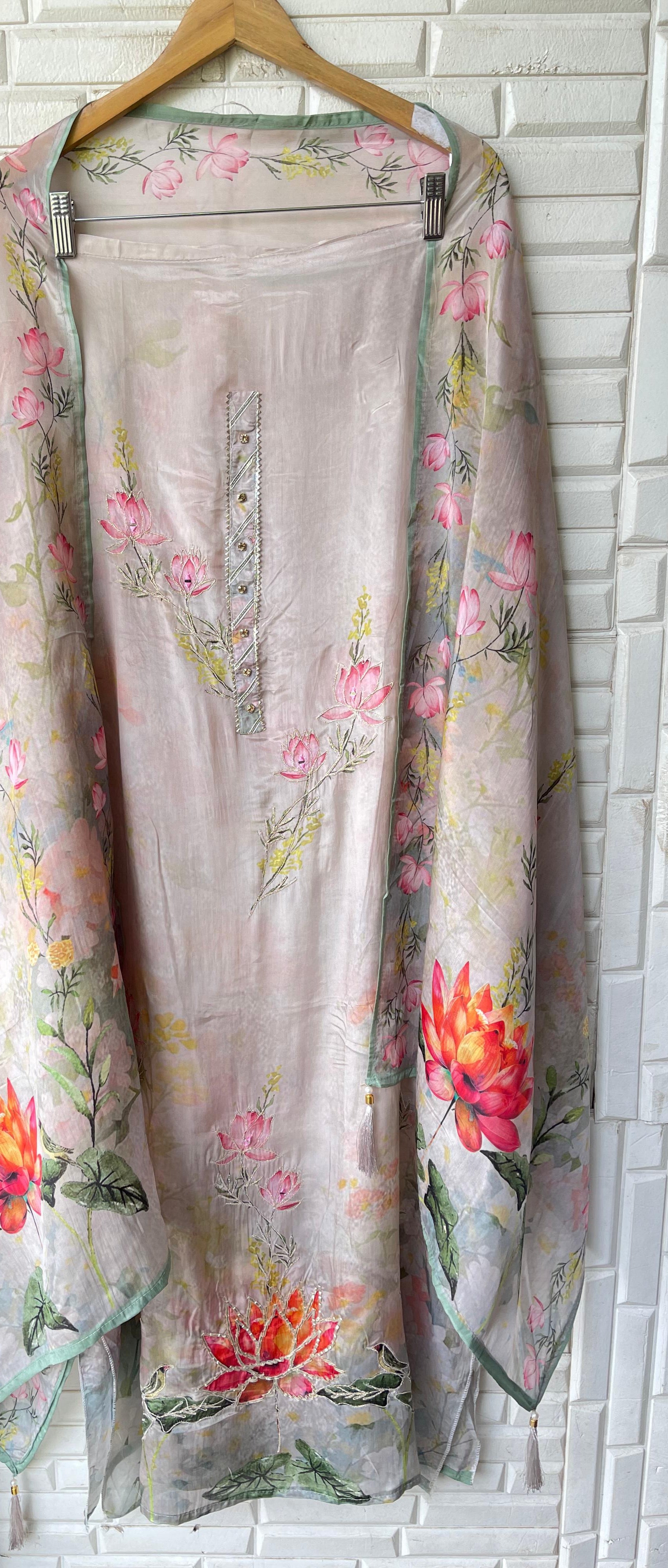 ๐ organza silk printed fabric un stitched shirt with gotta lace mirror work resham zari embroidery