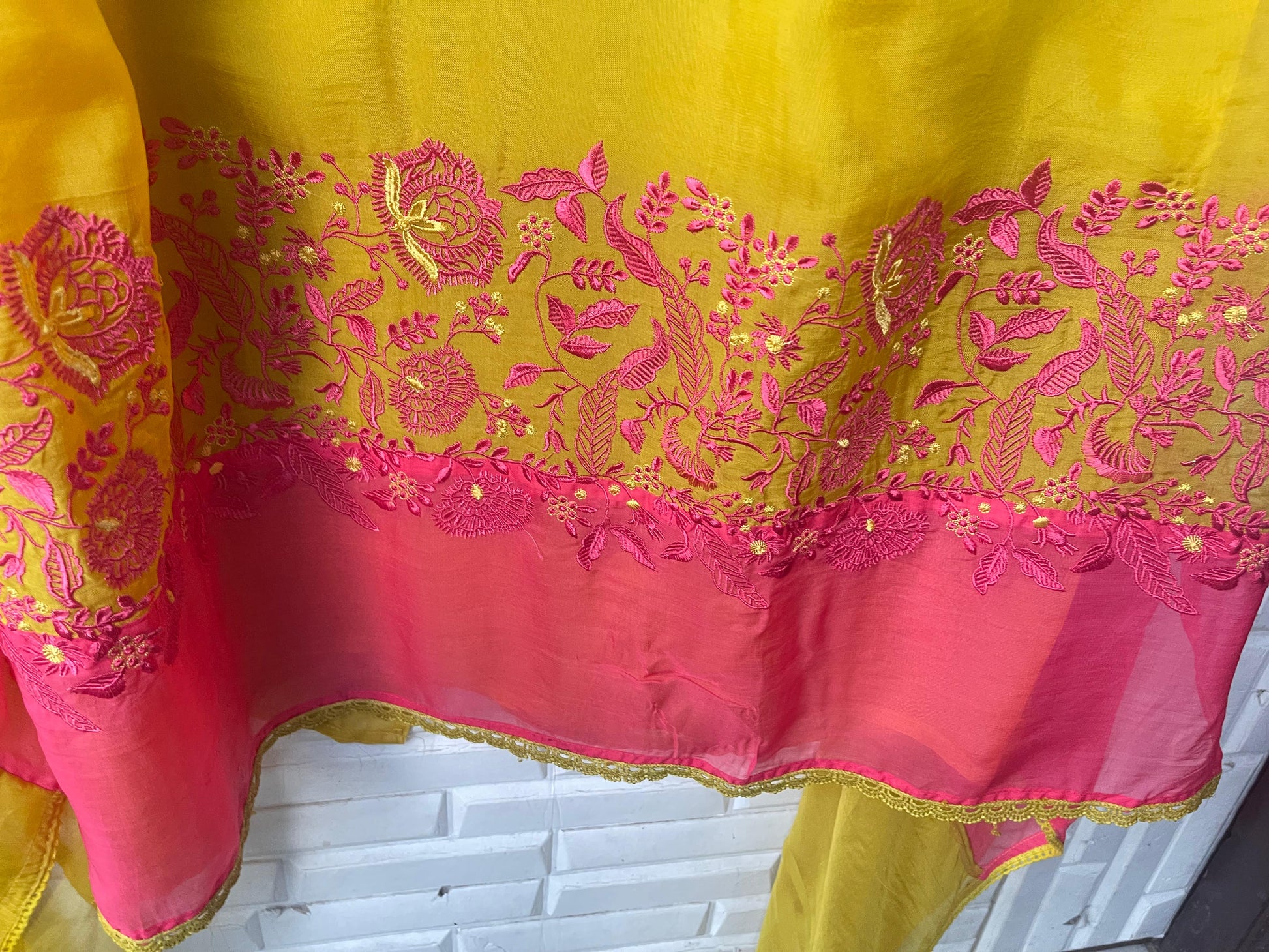 😊 organza fabric un stitched shirt with resham embroidery and crotia ghera lace