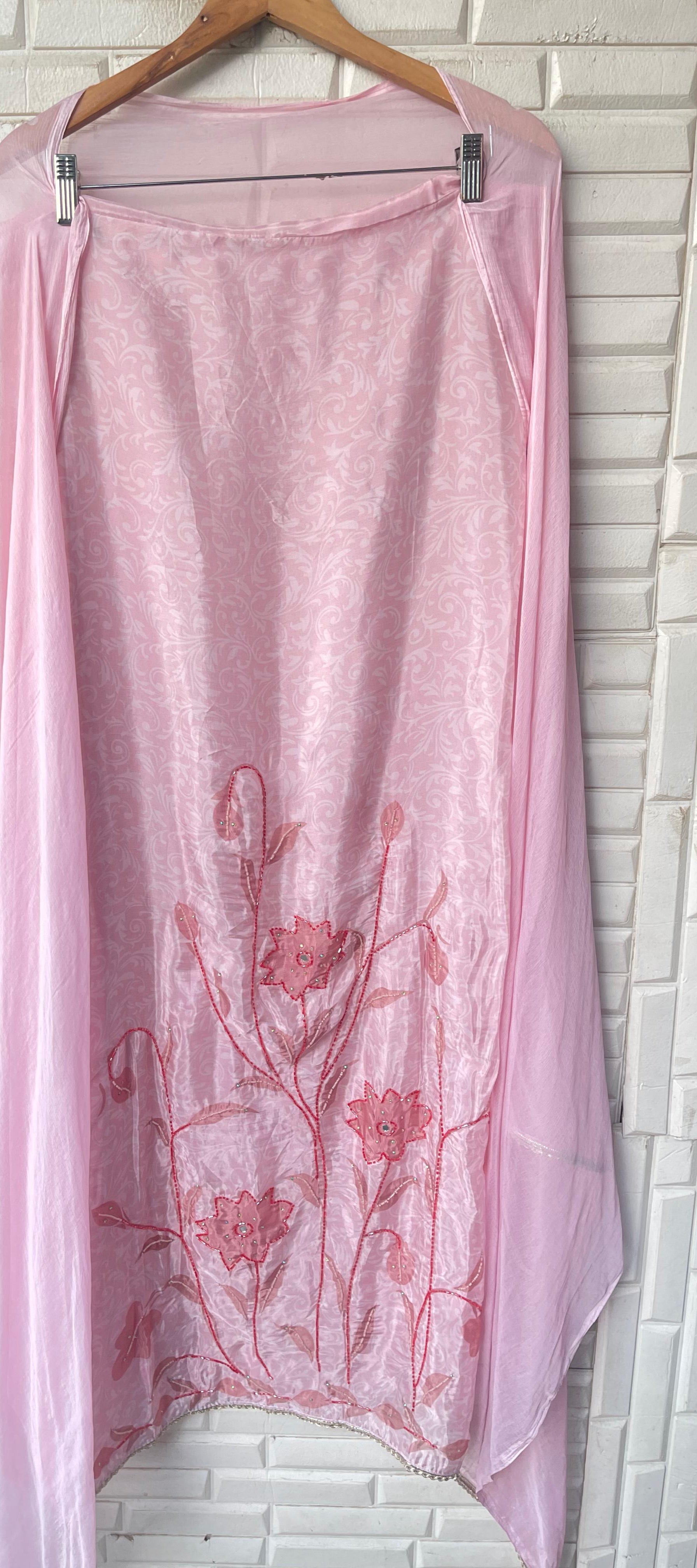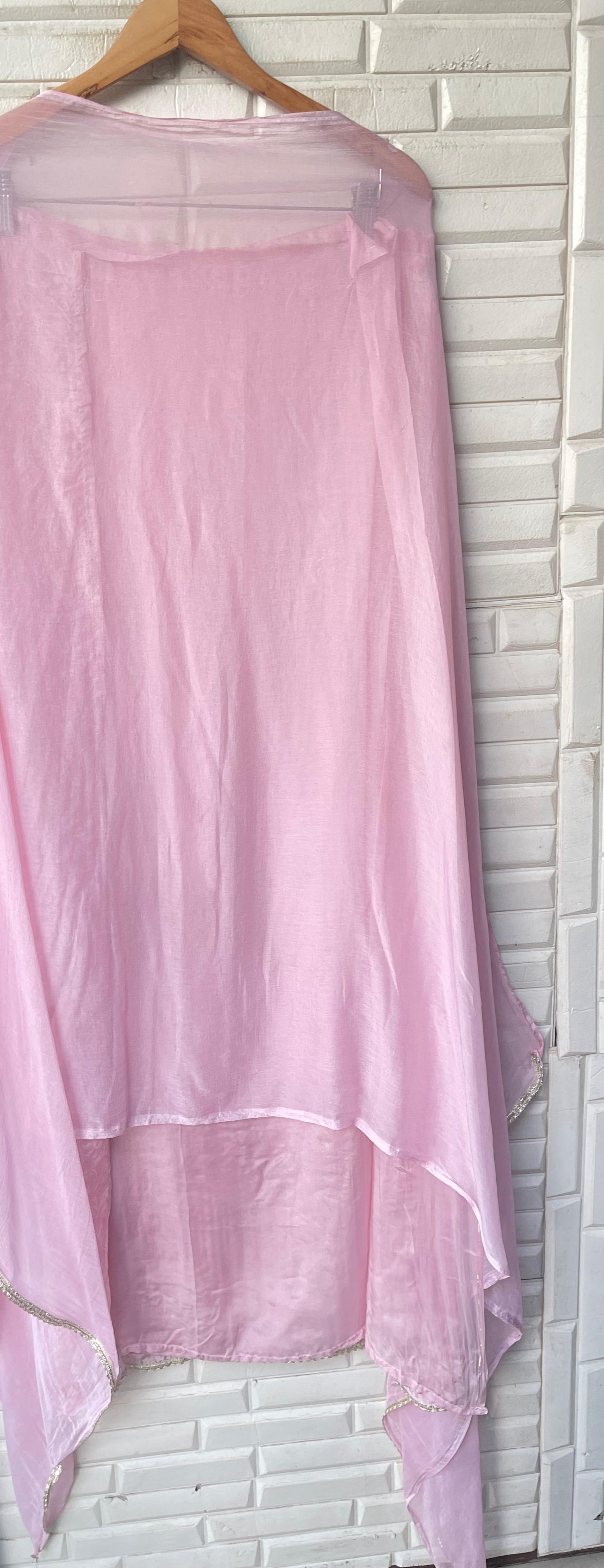 ๐ organza silk printed fabric un stitched shirt with mirror work kutdanna swarowski embroidery and ghera lace