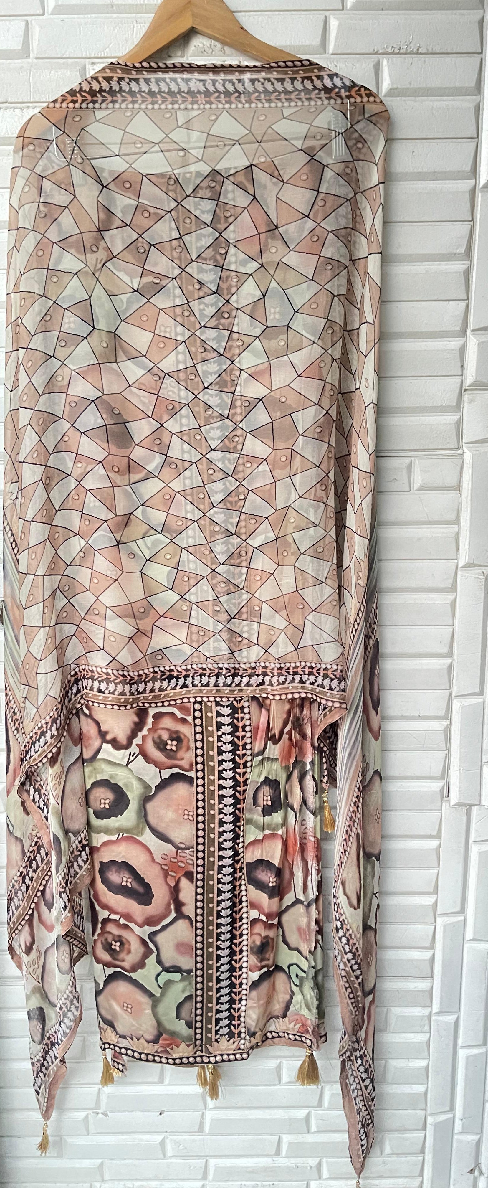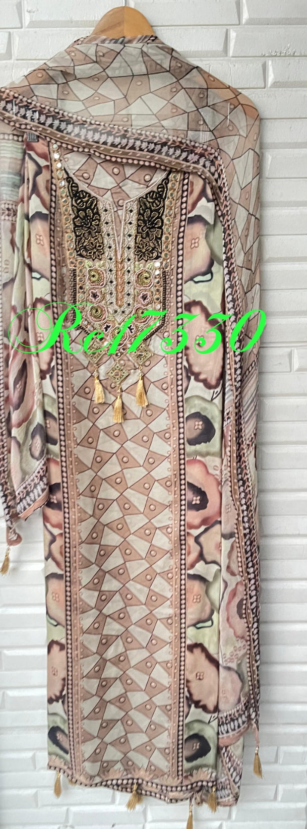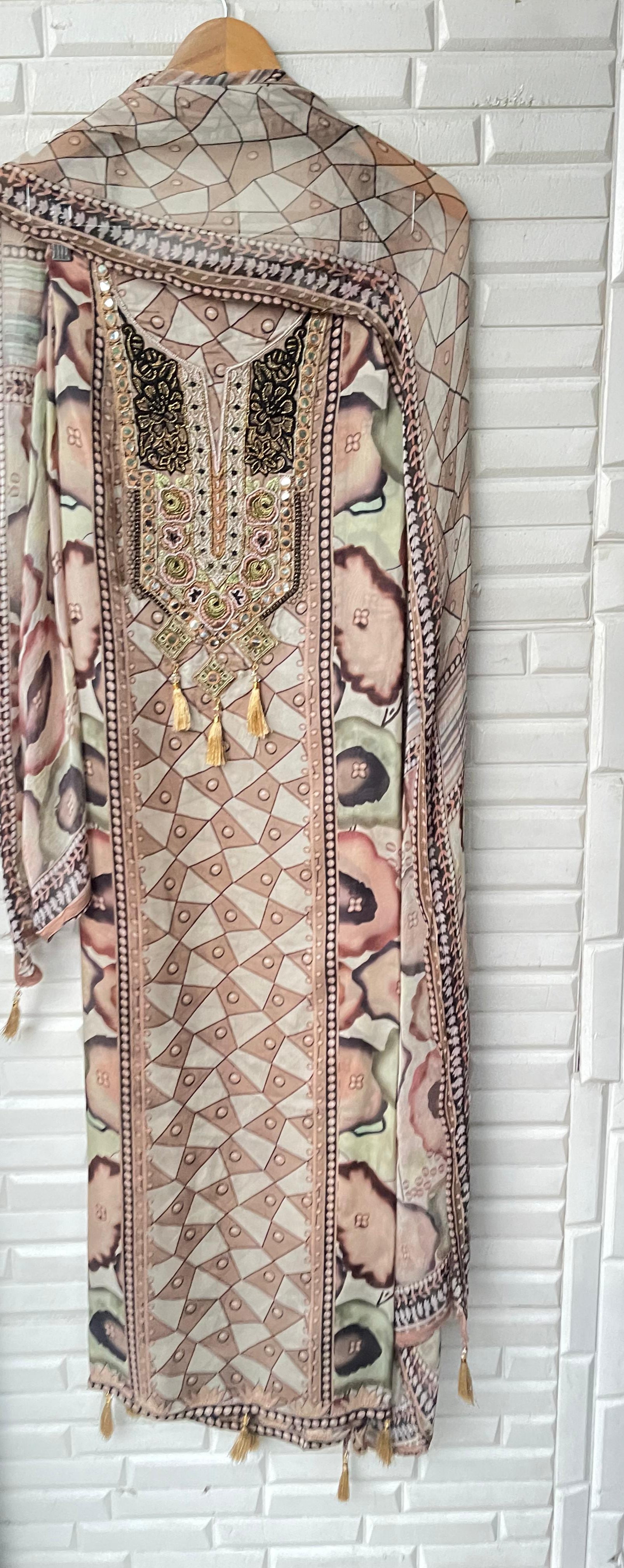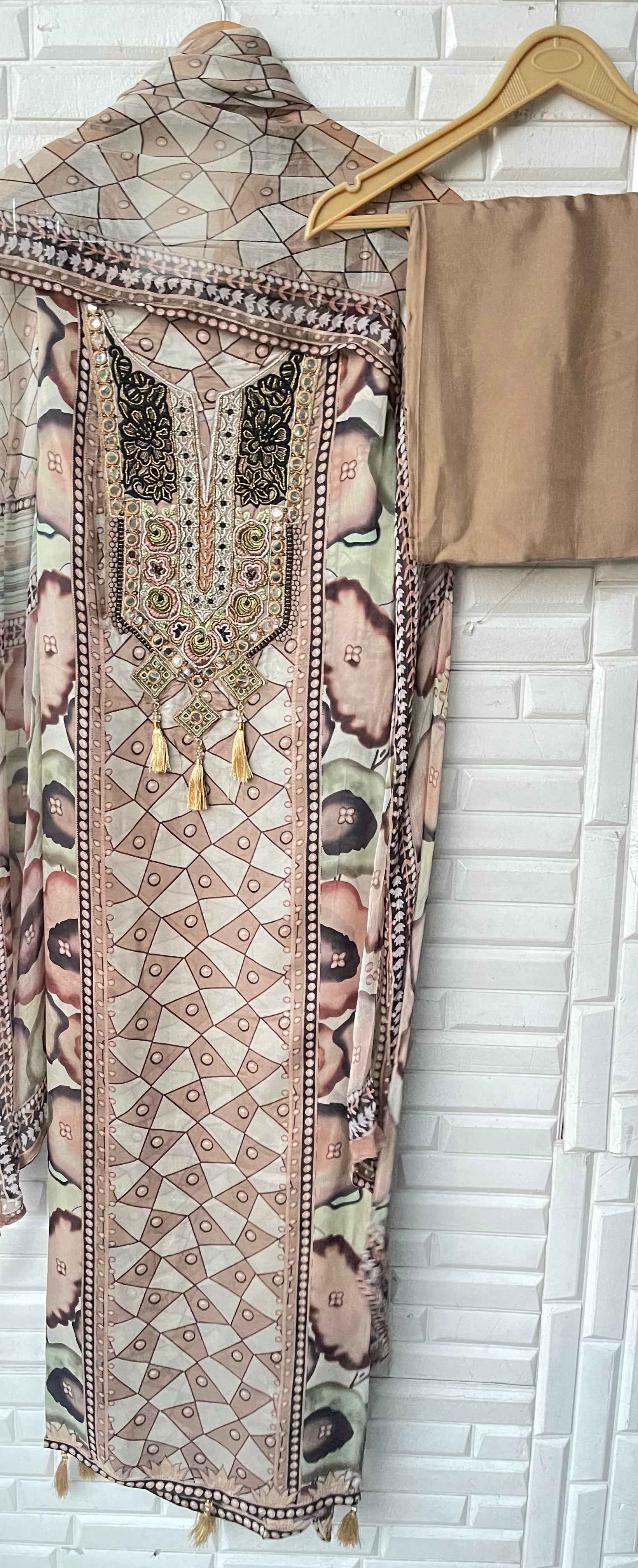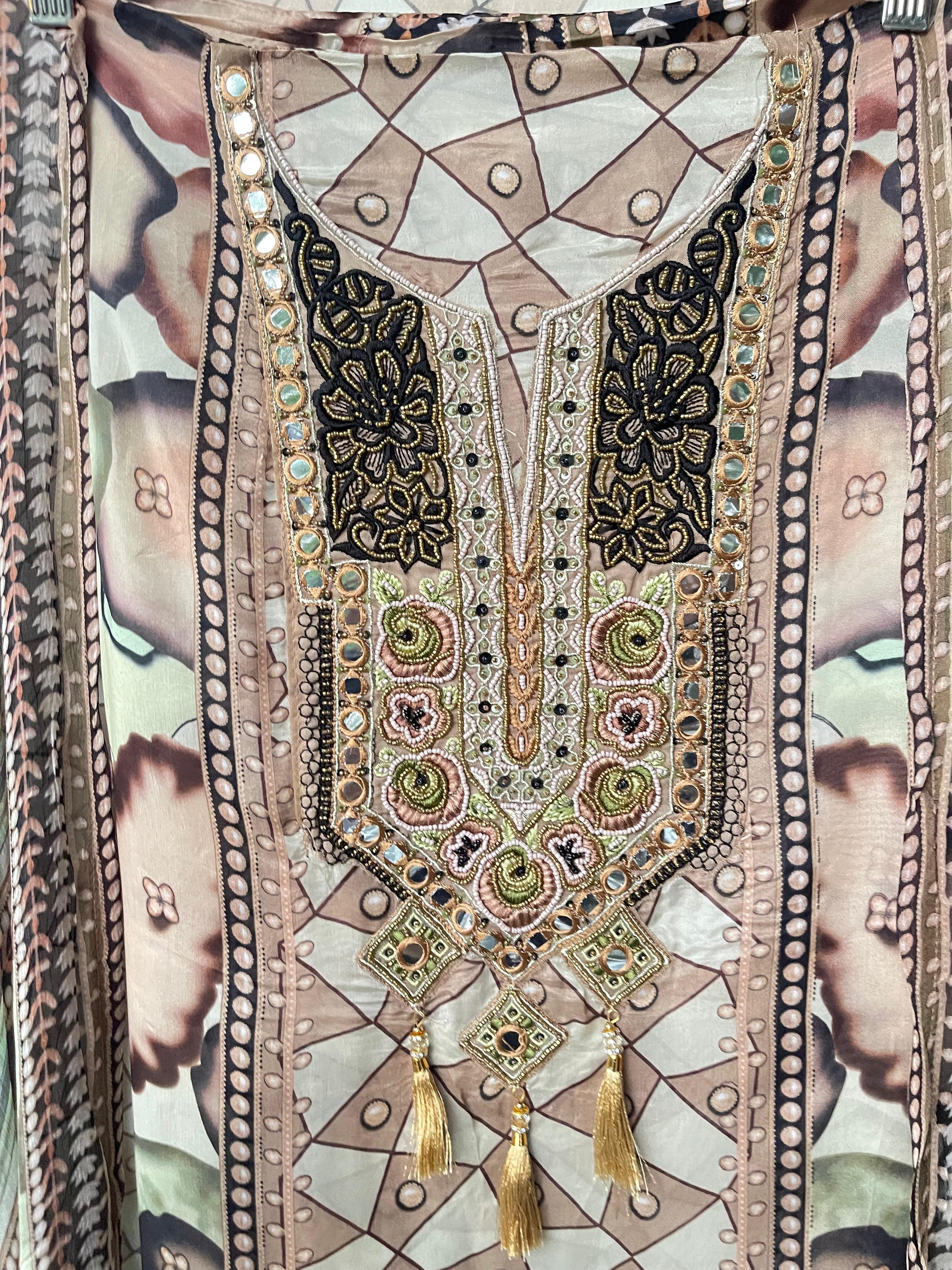 ๐ organza silk printed fabric un stitched shirt with mirror pathri work resham pearl sequence embroidery