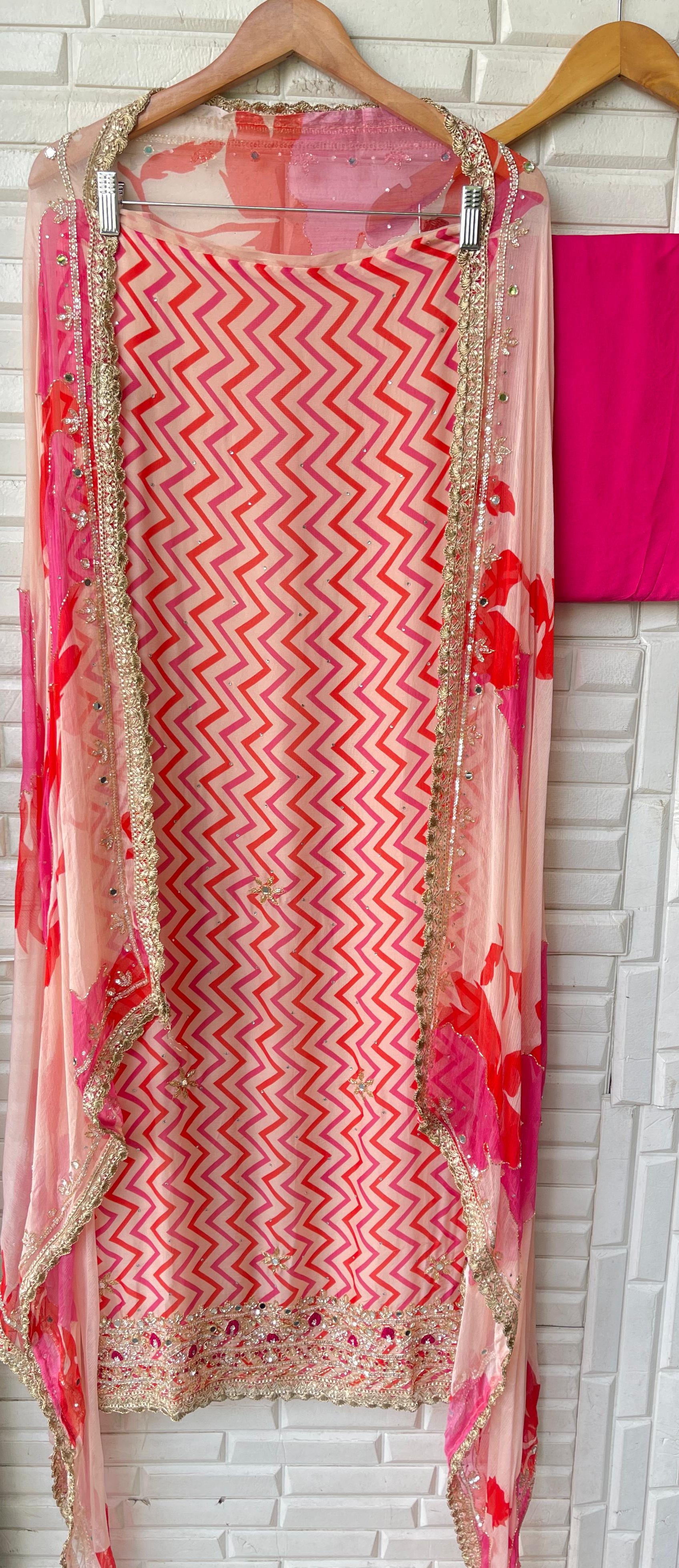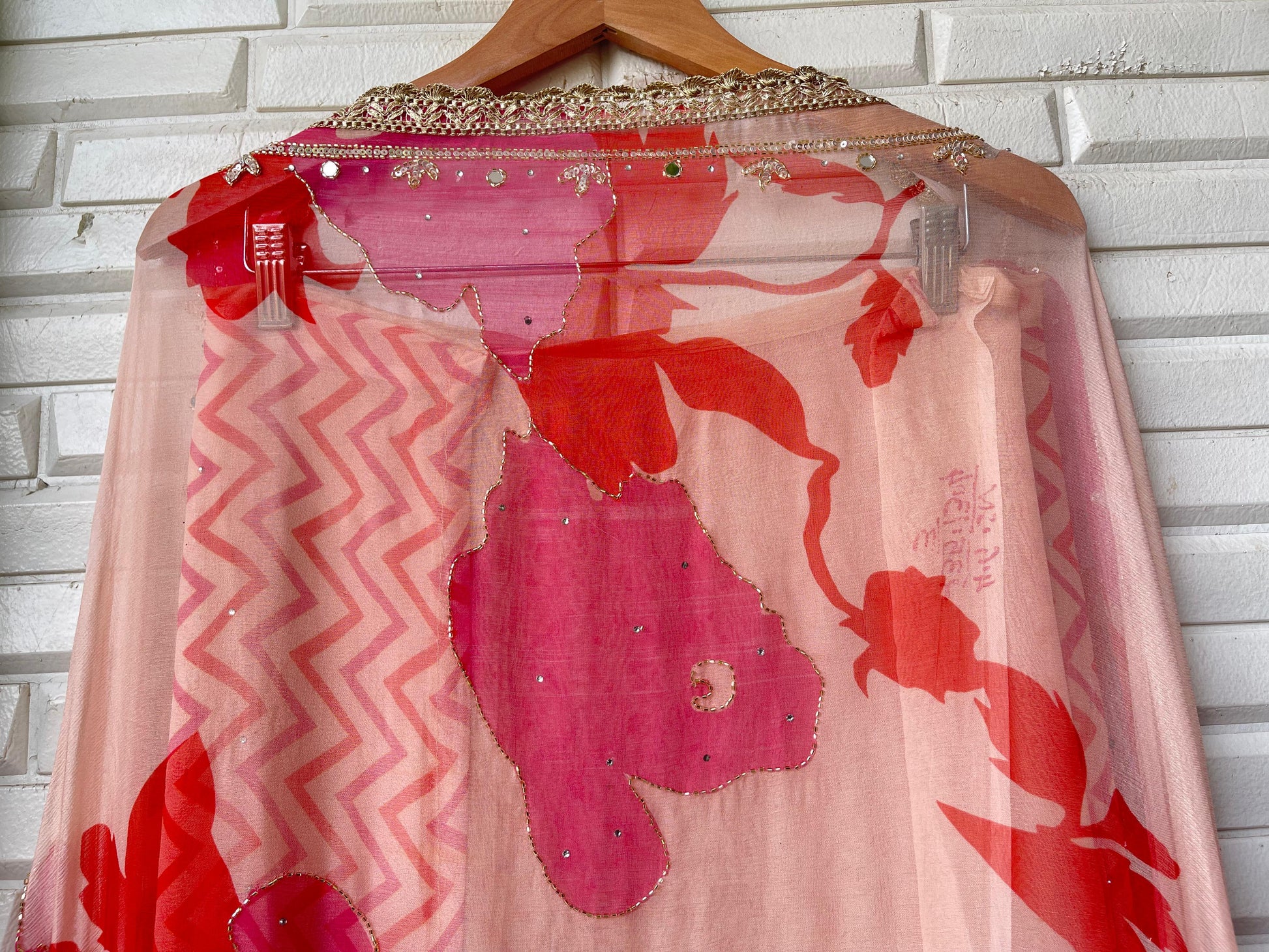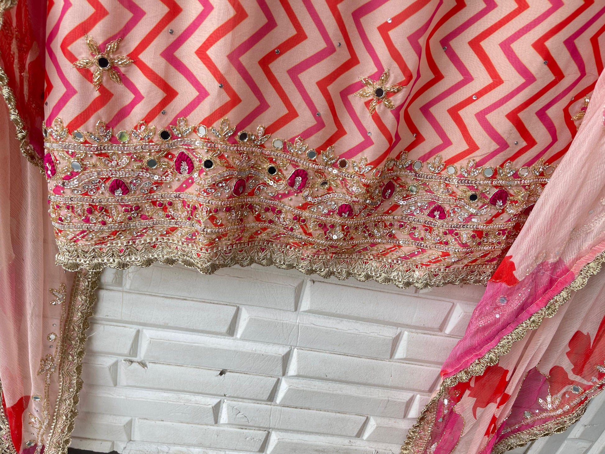 😊pure chiffon printed dupatta with cutdana sequins mirror work embroidery and lace