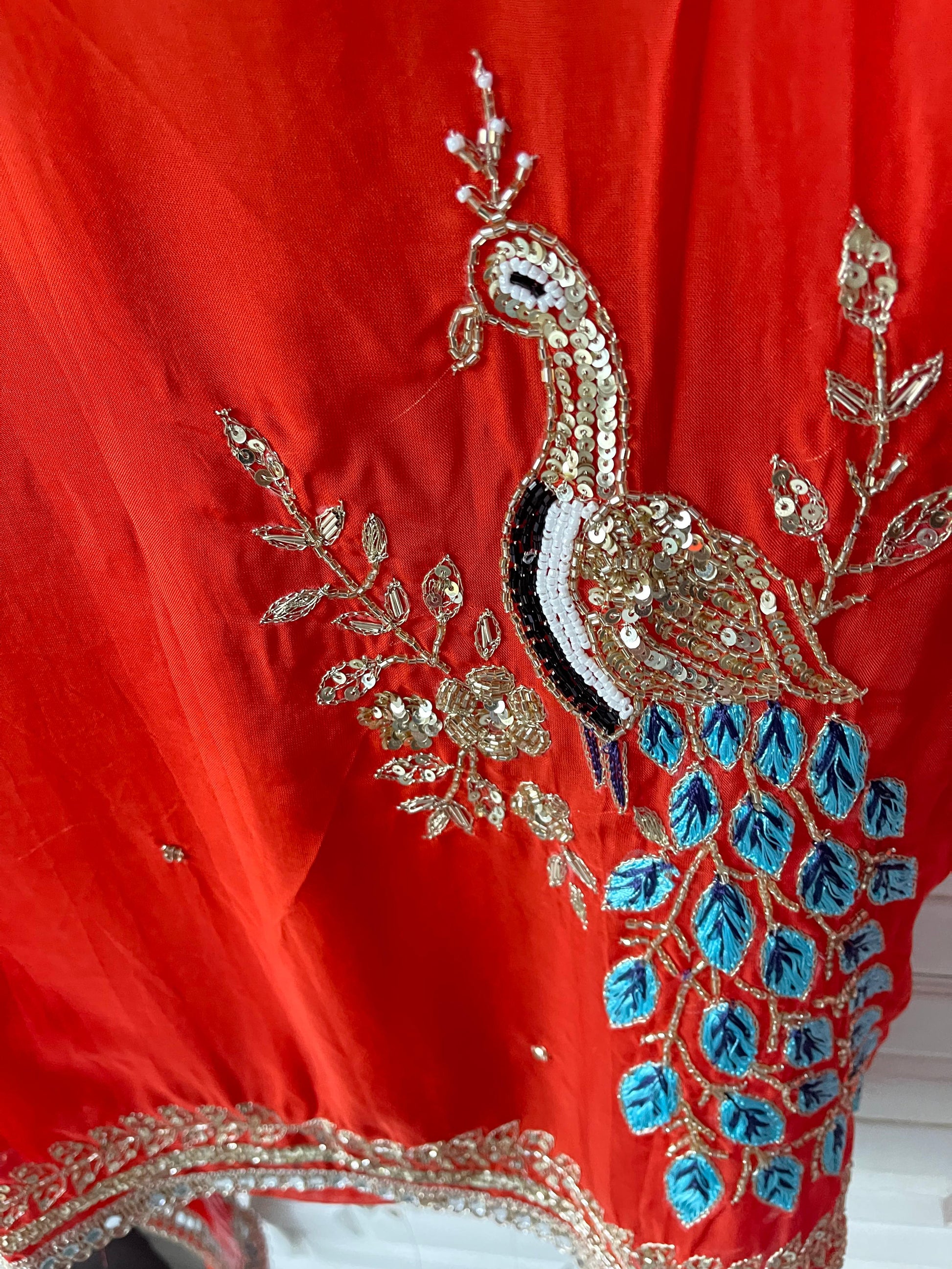 π organza fabric unstitched shirt with zari sequence kutdanna embroidery and mirror ghera border lace plus running hand embroidered peacock