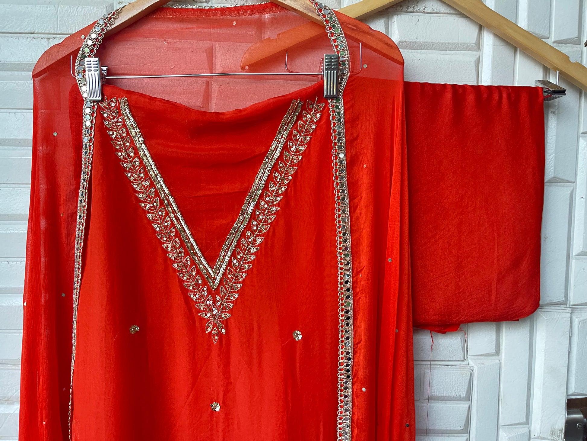 π pure chiffon fabric dupatta with mirror border lace and pathri highlighting