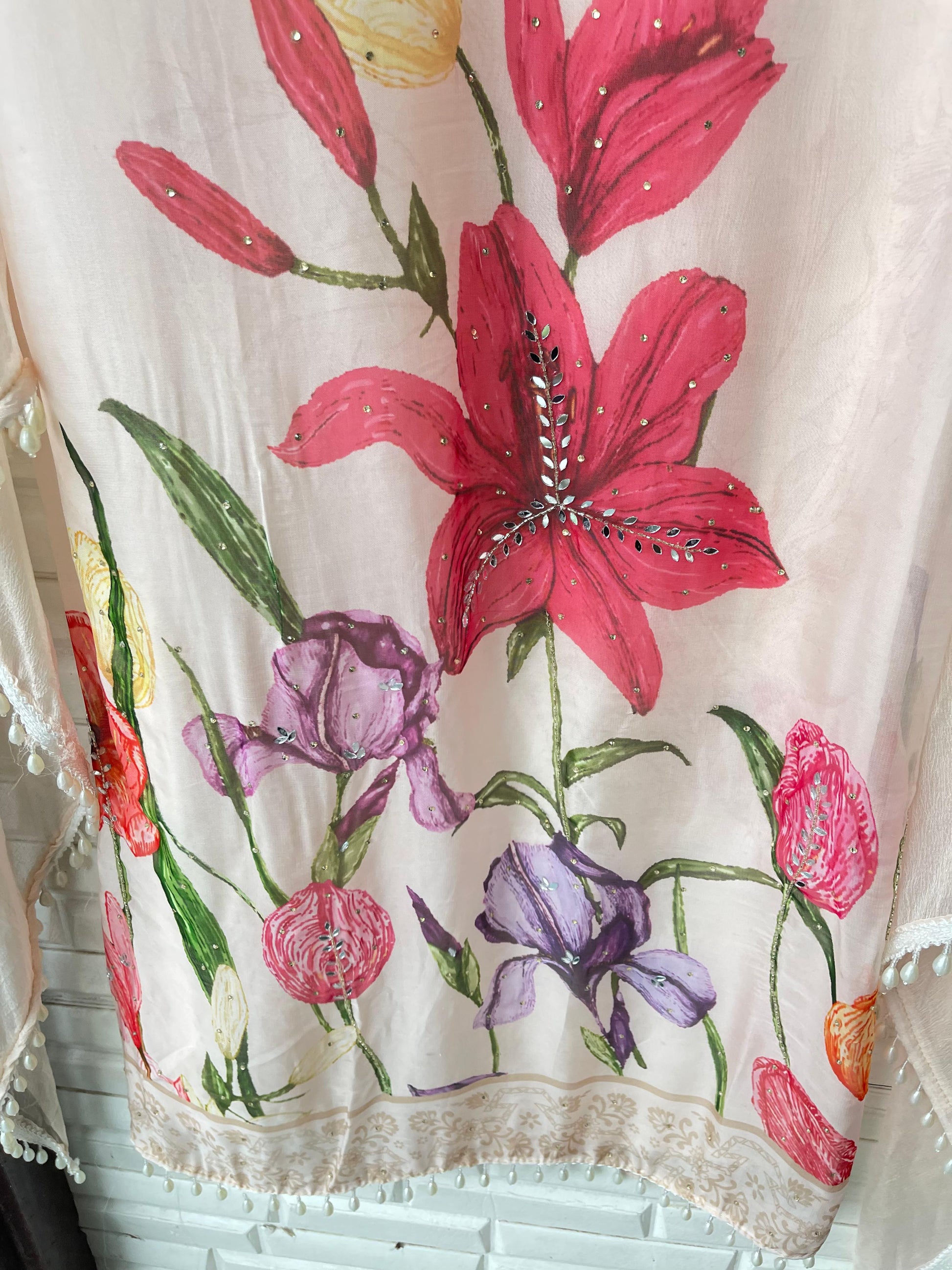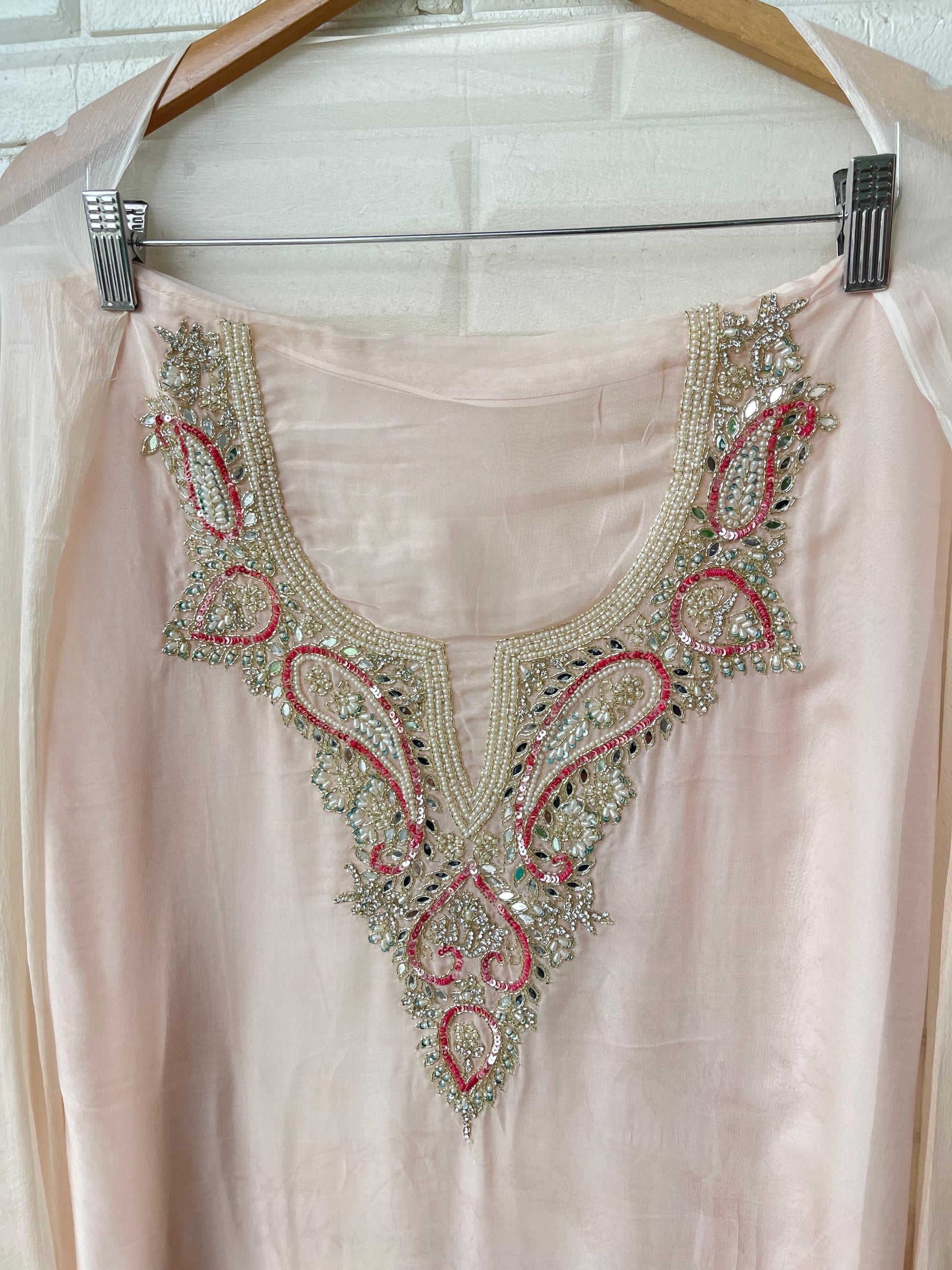 π organza fabric unstitched shirt with mirror work dabka pearl resham kutdanna sequence swarowski hand embroidery embroidery and hanging ghera lace
