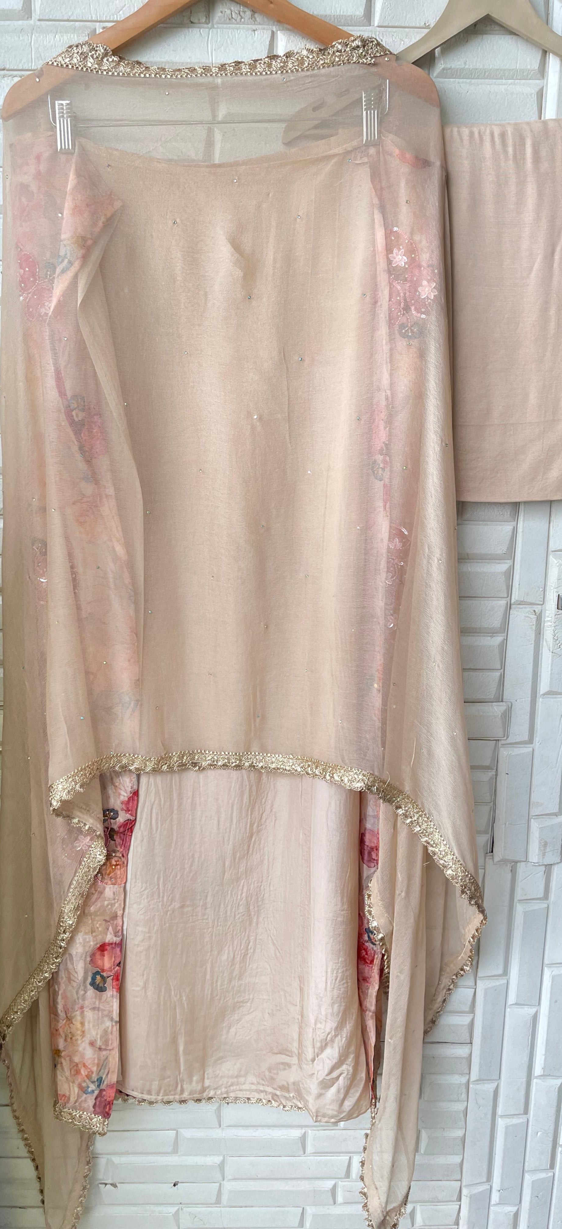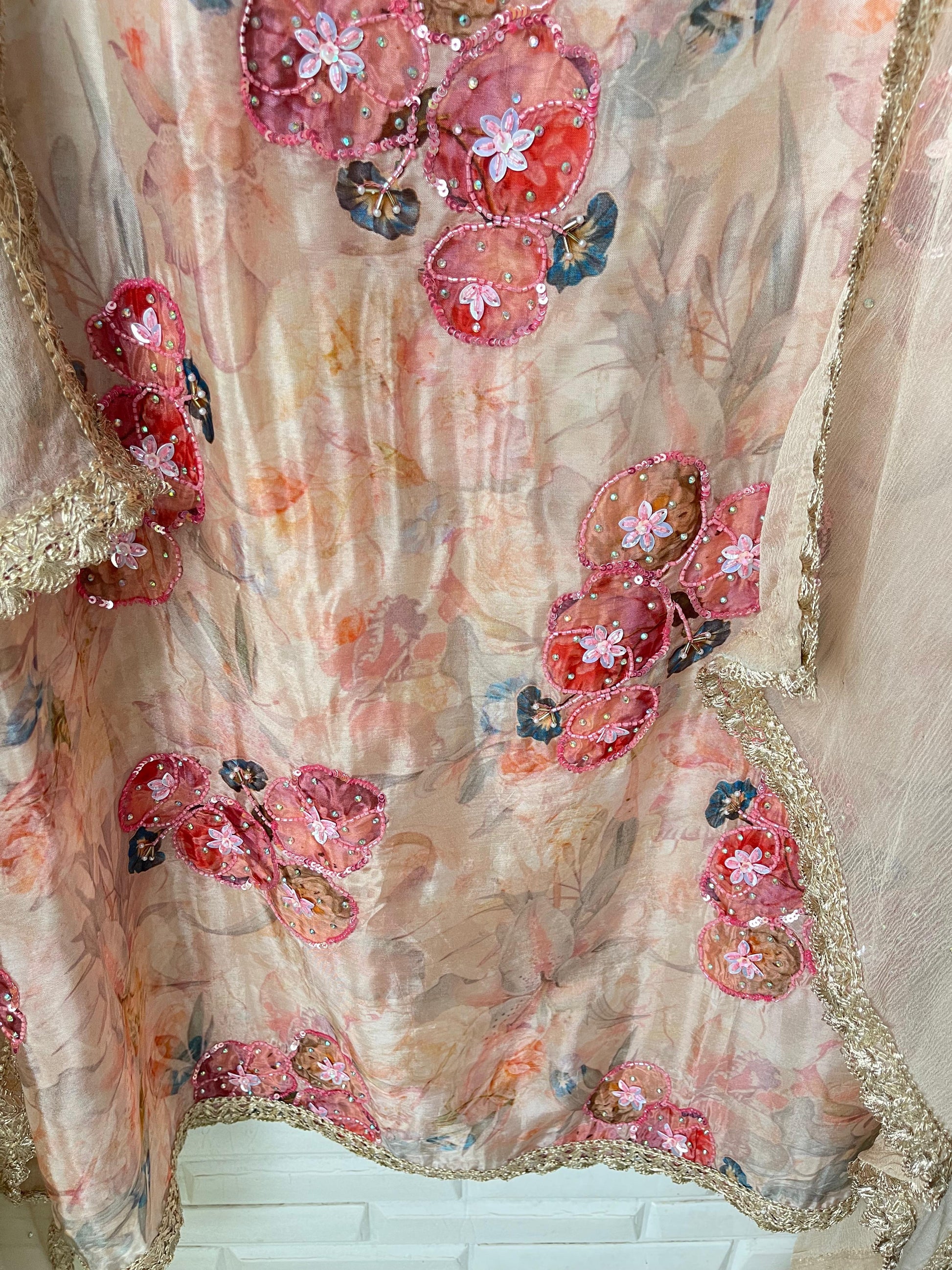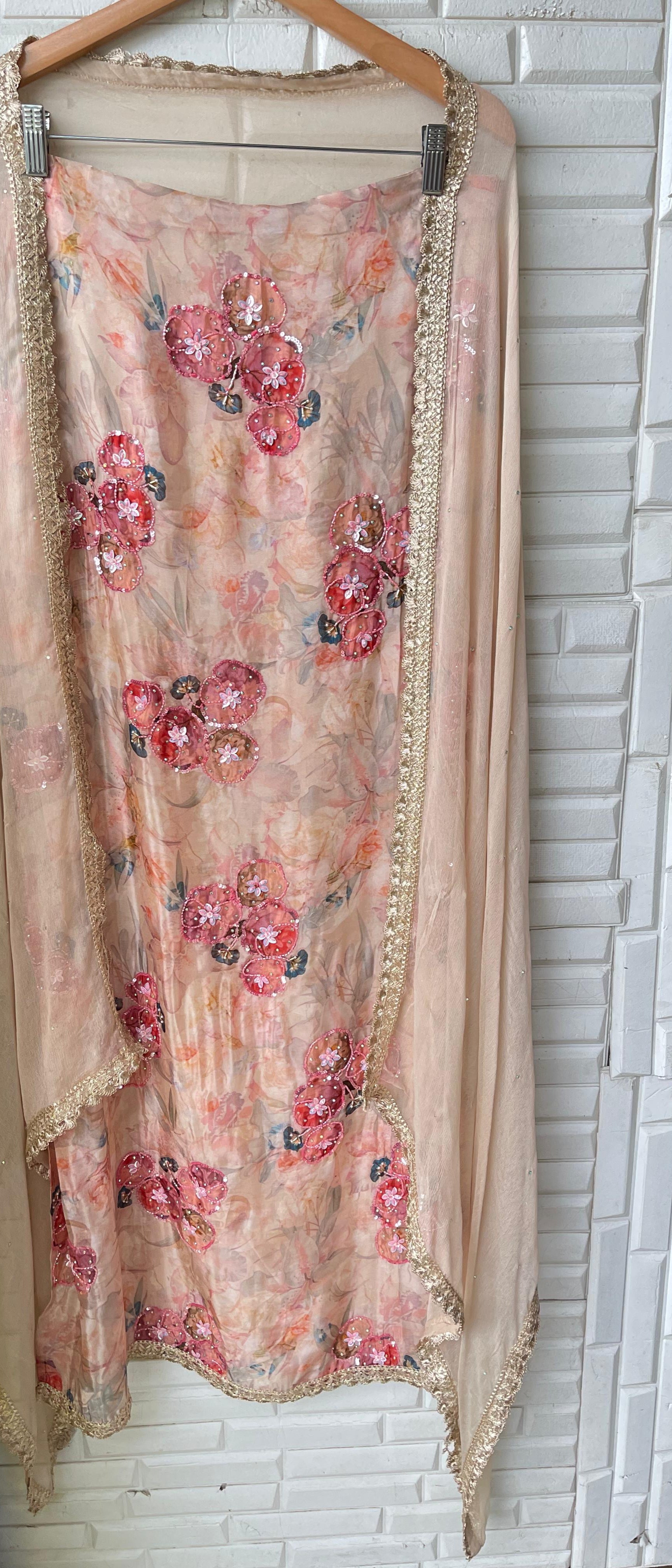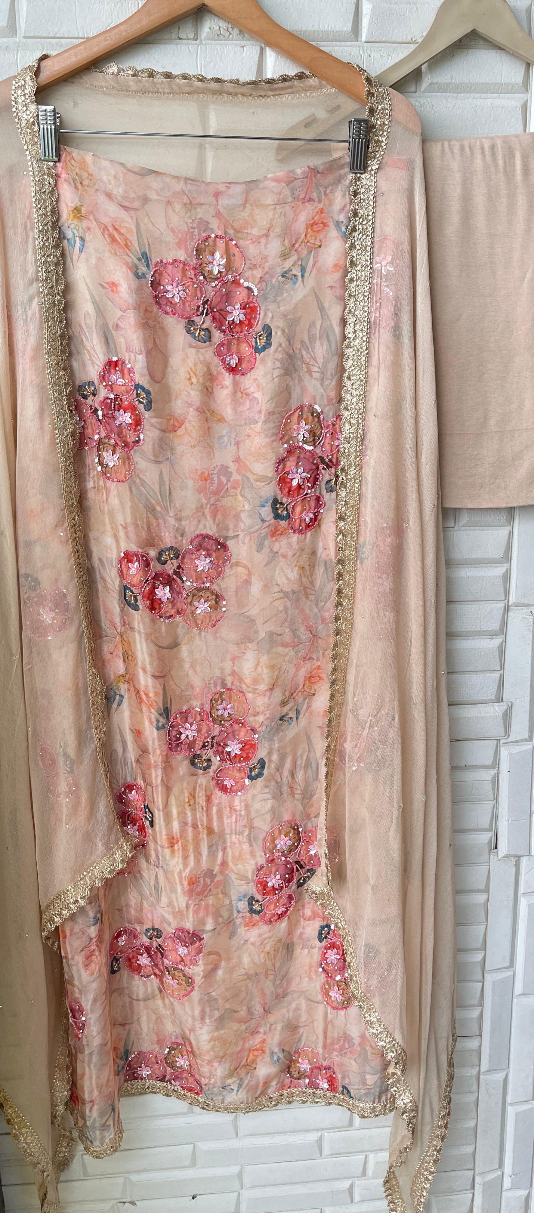 😊 glass organza printed fabric unstitched shirt with kutdanna swarowski sequence embroidery