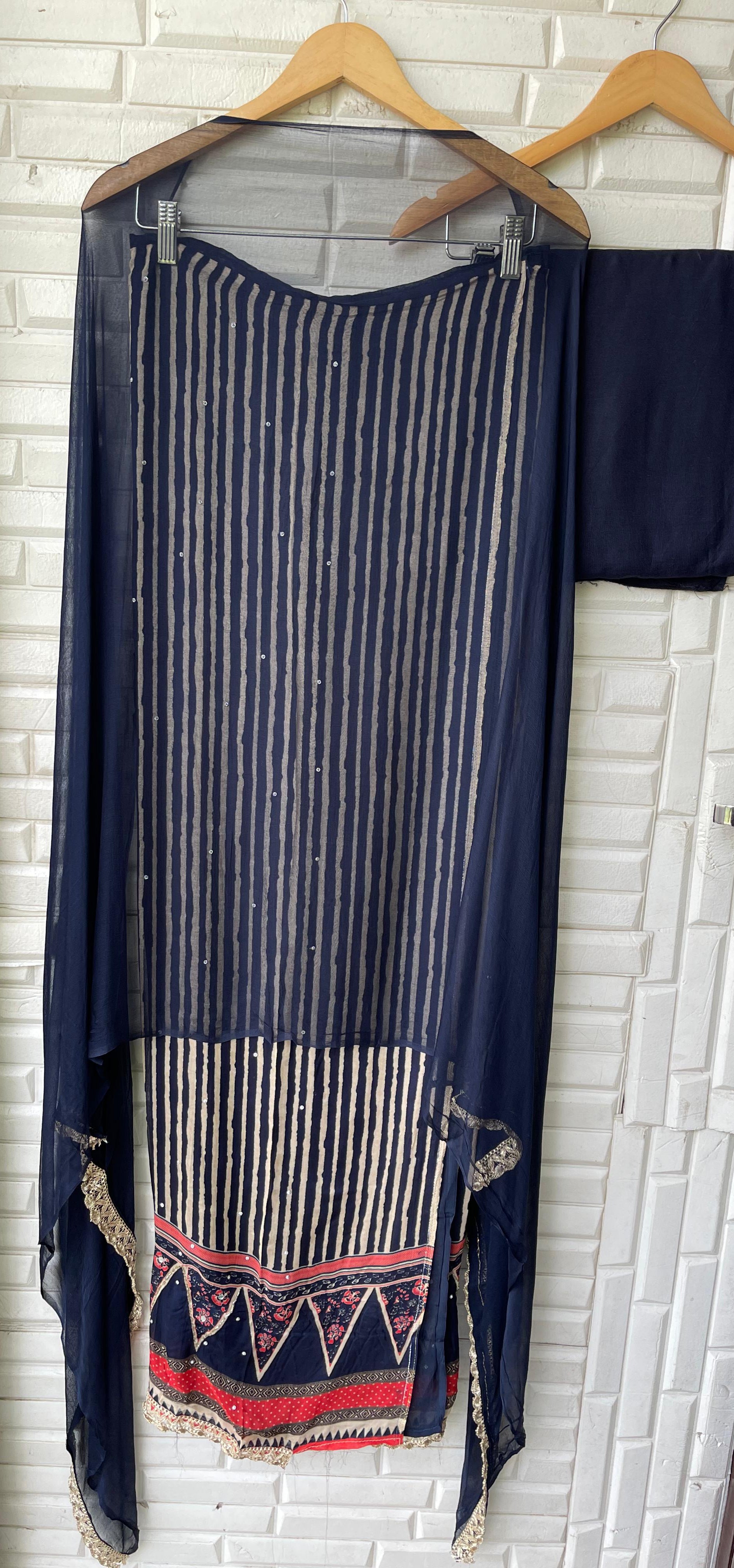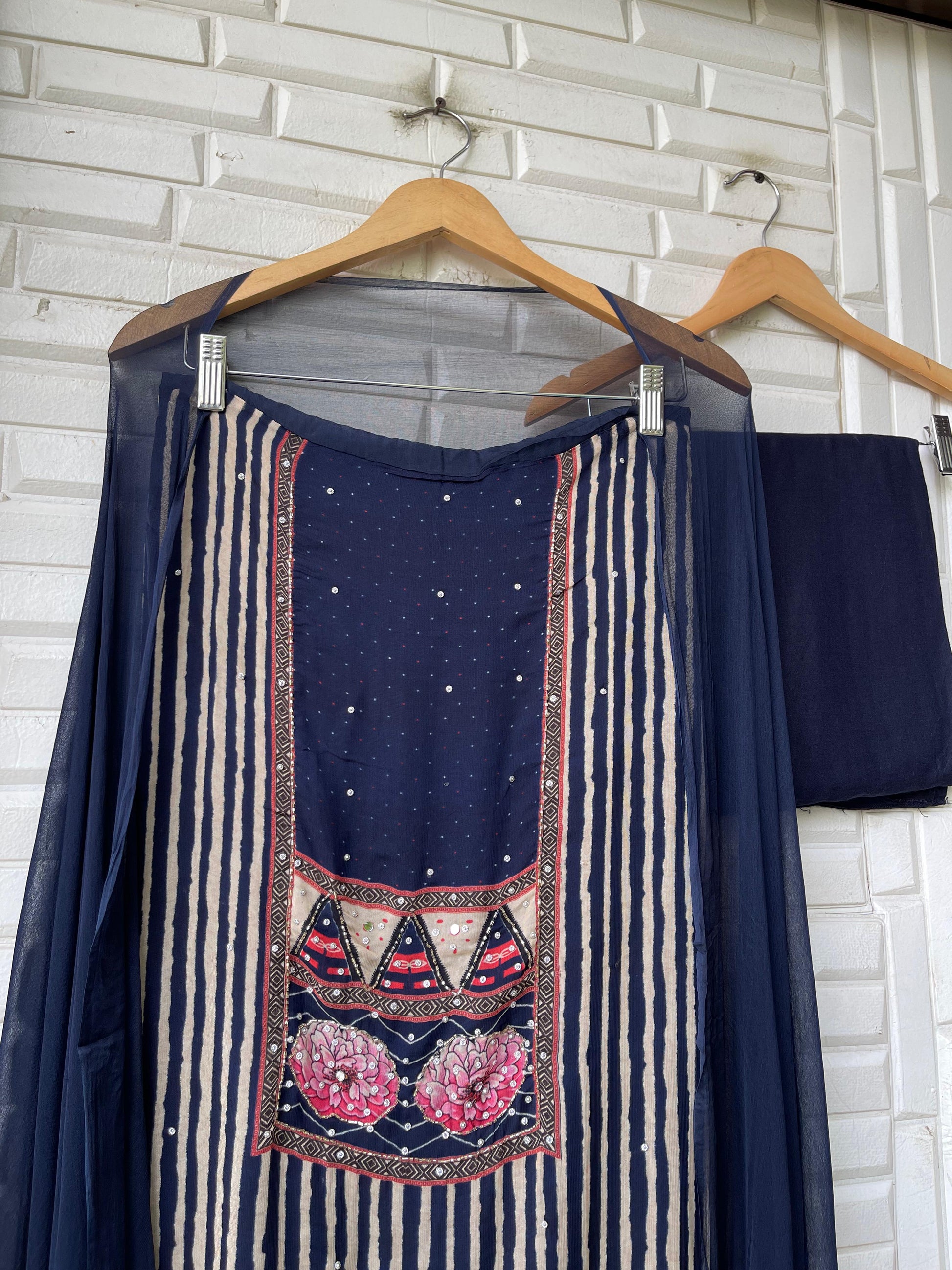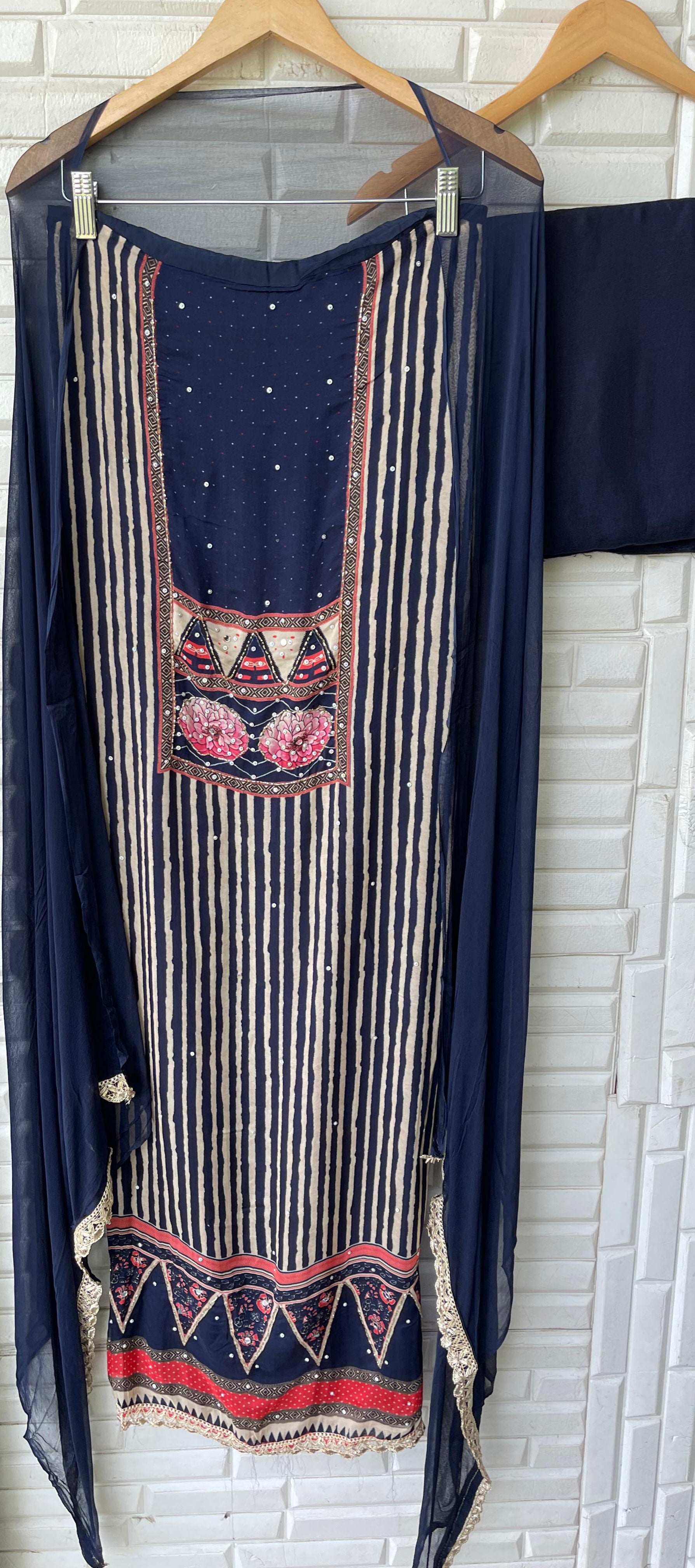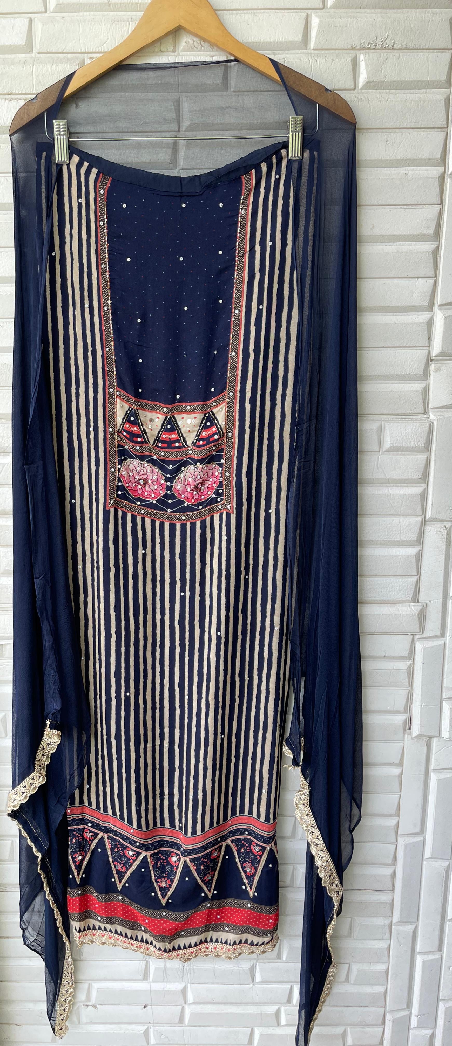 π organza printed fabric unstitched shirt with kutdanna swarowski embroidery