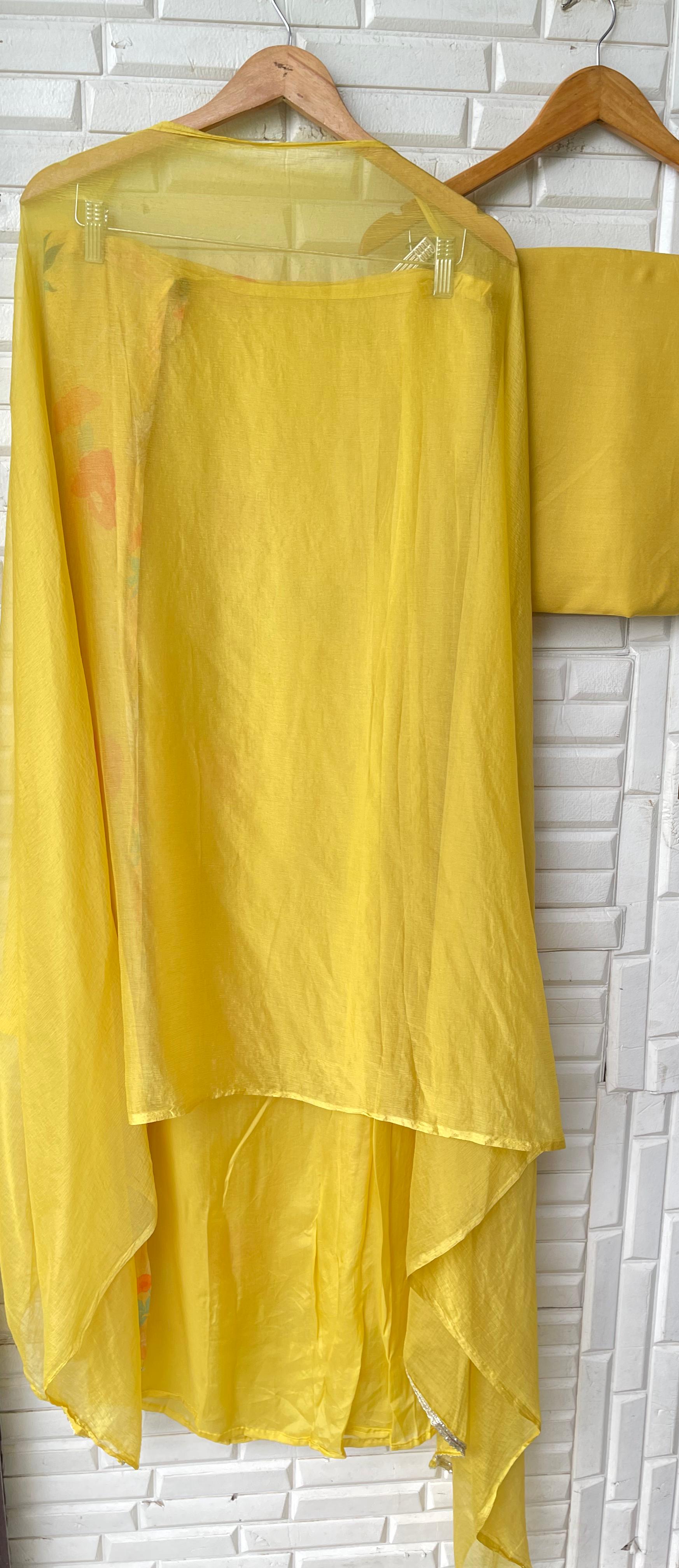 😊 organza printed fabric semi stitched shirt with mirror work kutdanna pearl swarowski embroidery