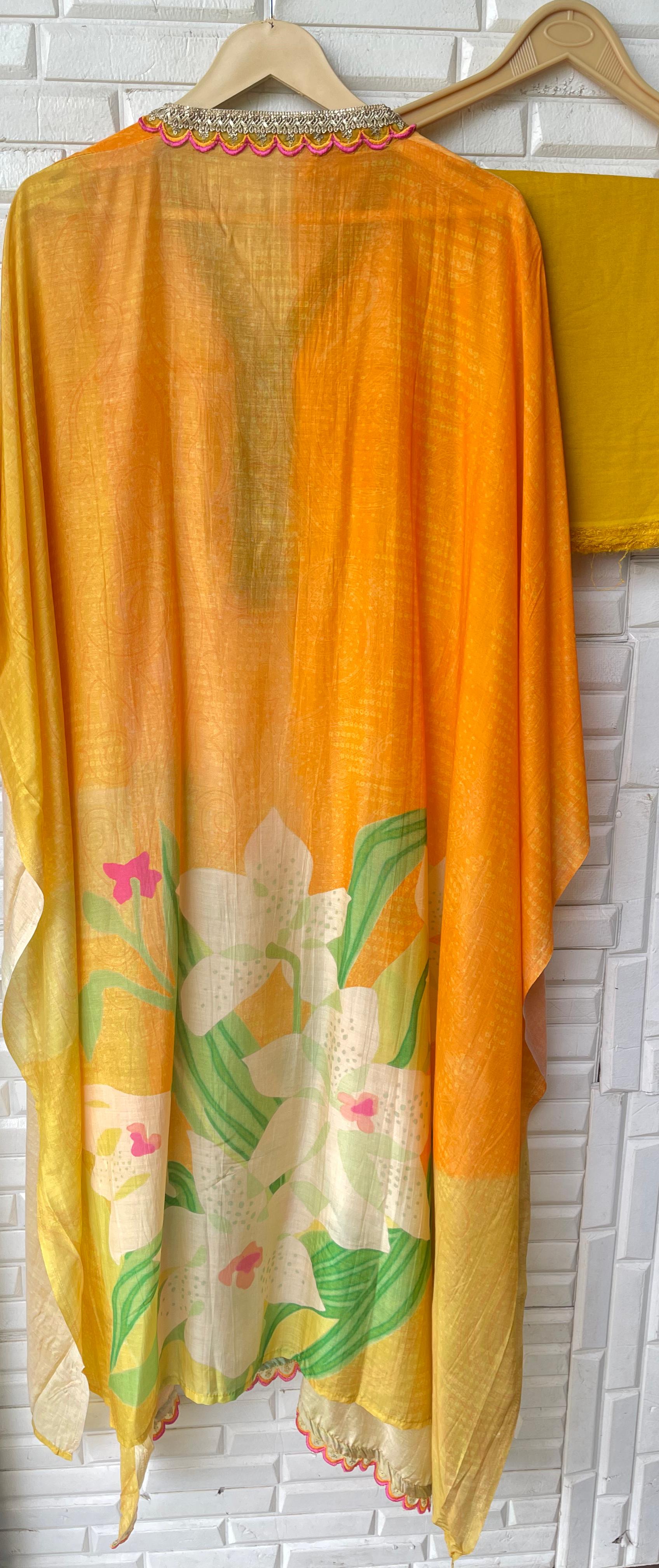 😊 organza printed fabric unstitched shirt with neck zari lace and sequence zari highlighting