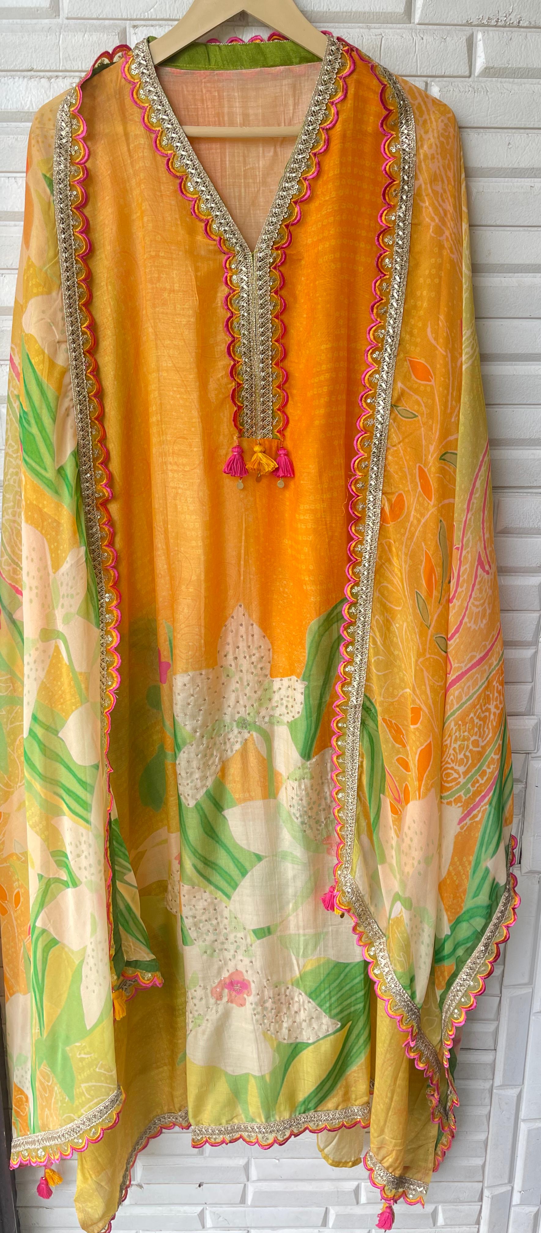 😊 organza printed fabric dupatta with border lace resham scalping and sequence embroidery