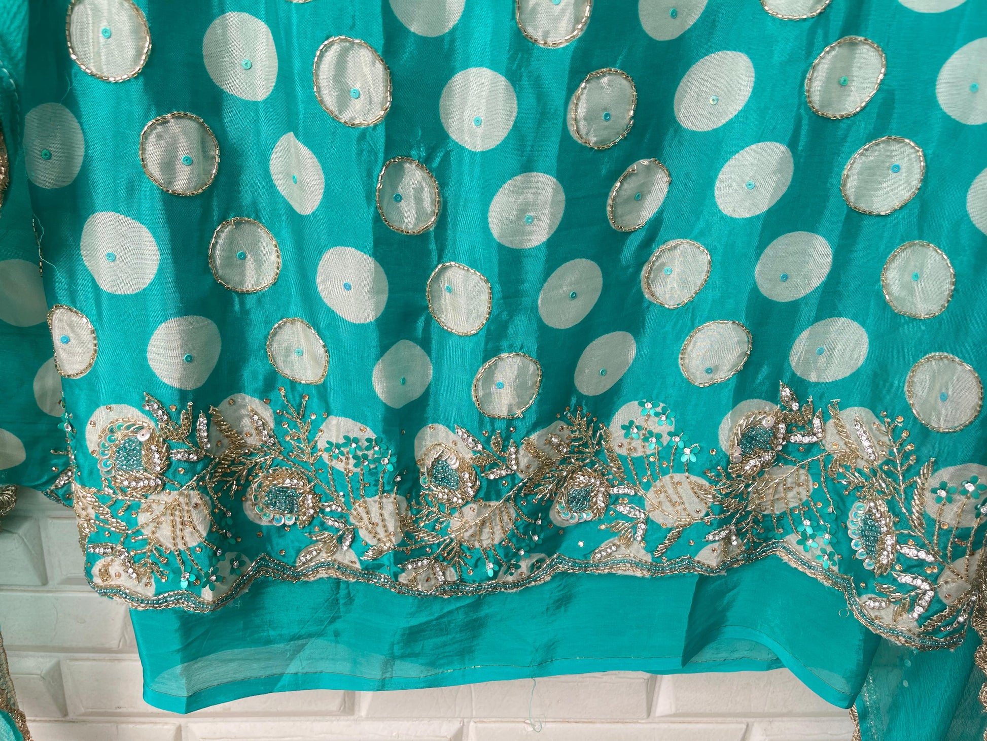 π paper organza with sheen, printed fabric unstitched shirt with swarowski pearl sequence zari kutdanna embroidery