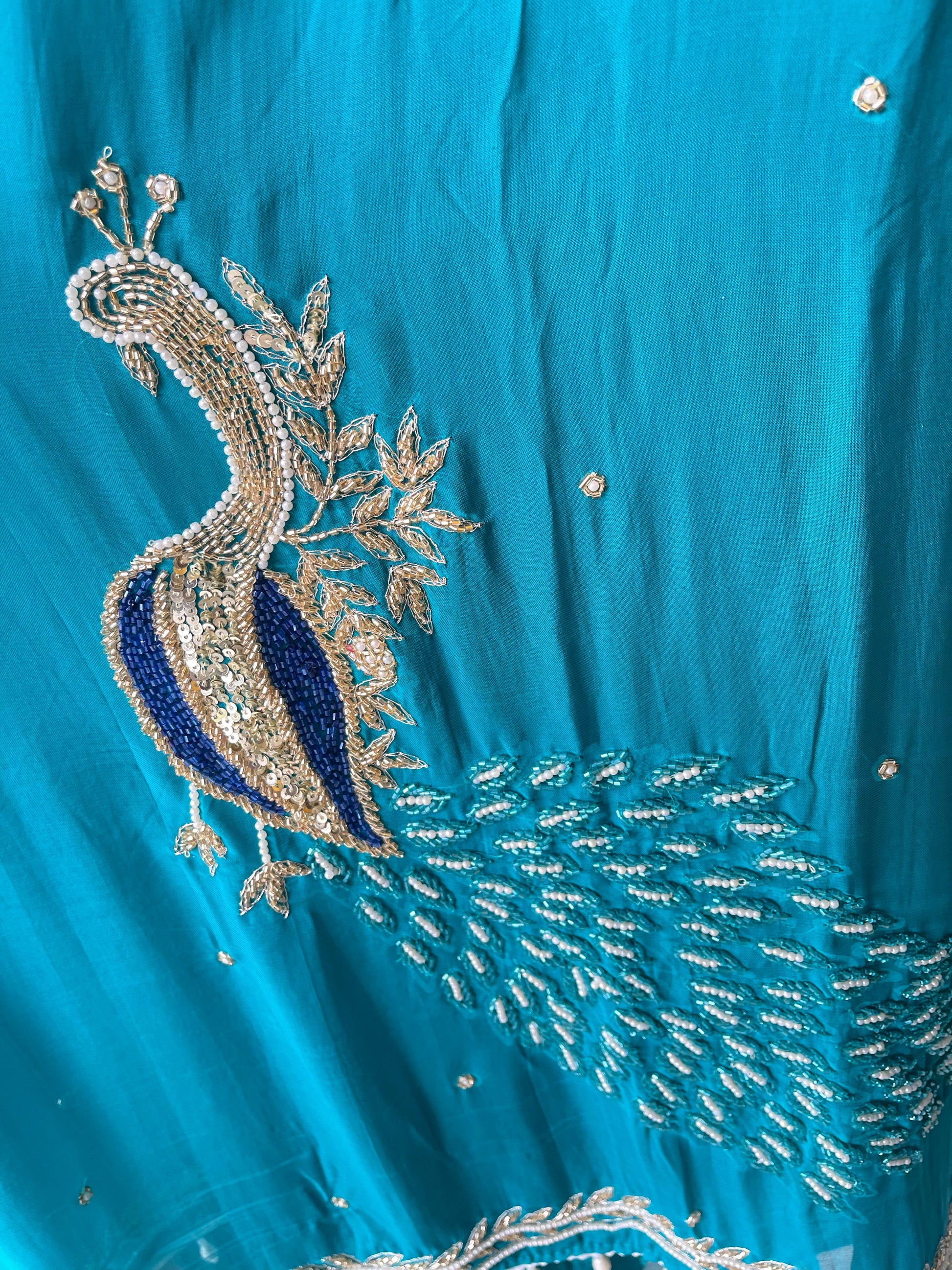 π organza fabric unstitched shirt with pearl kutdanna embroidery and ghera hanging lace