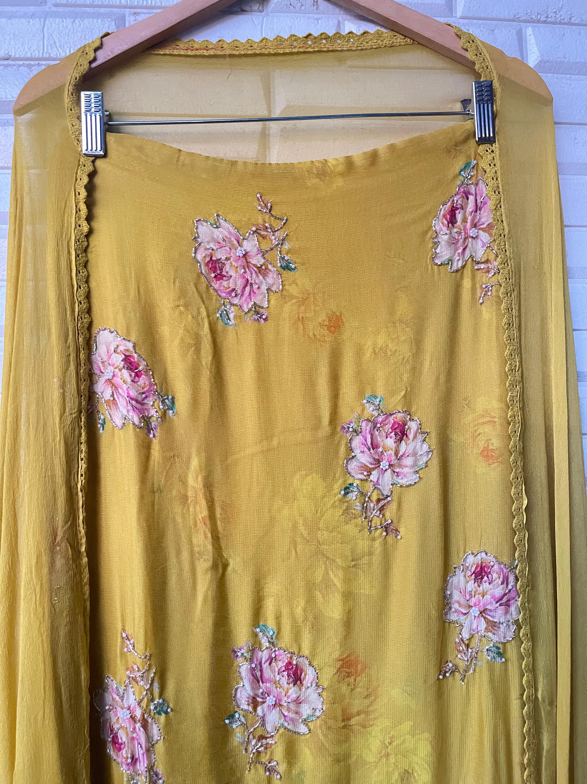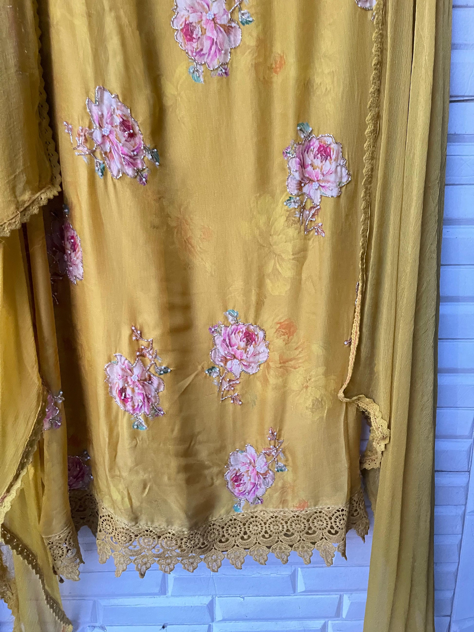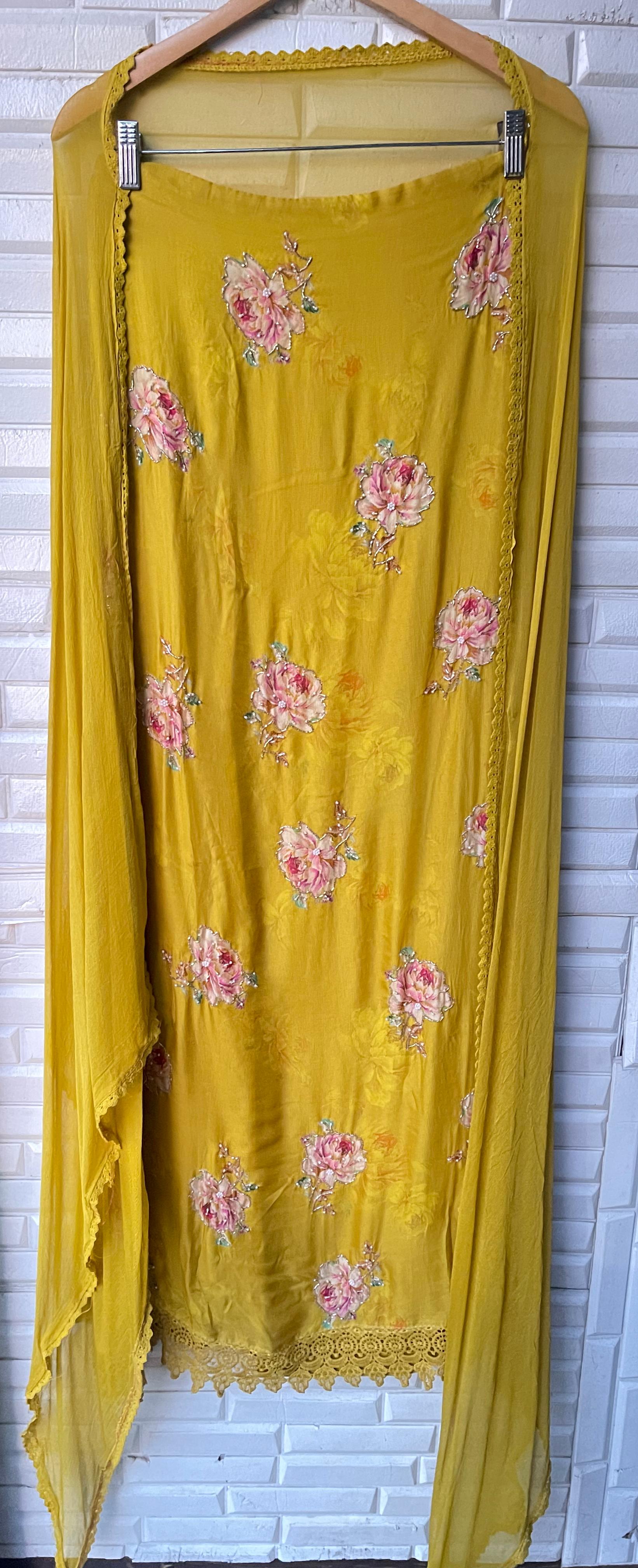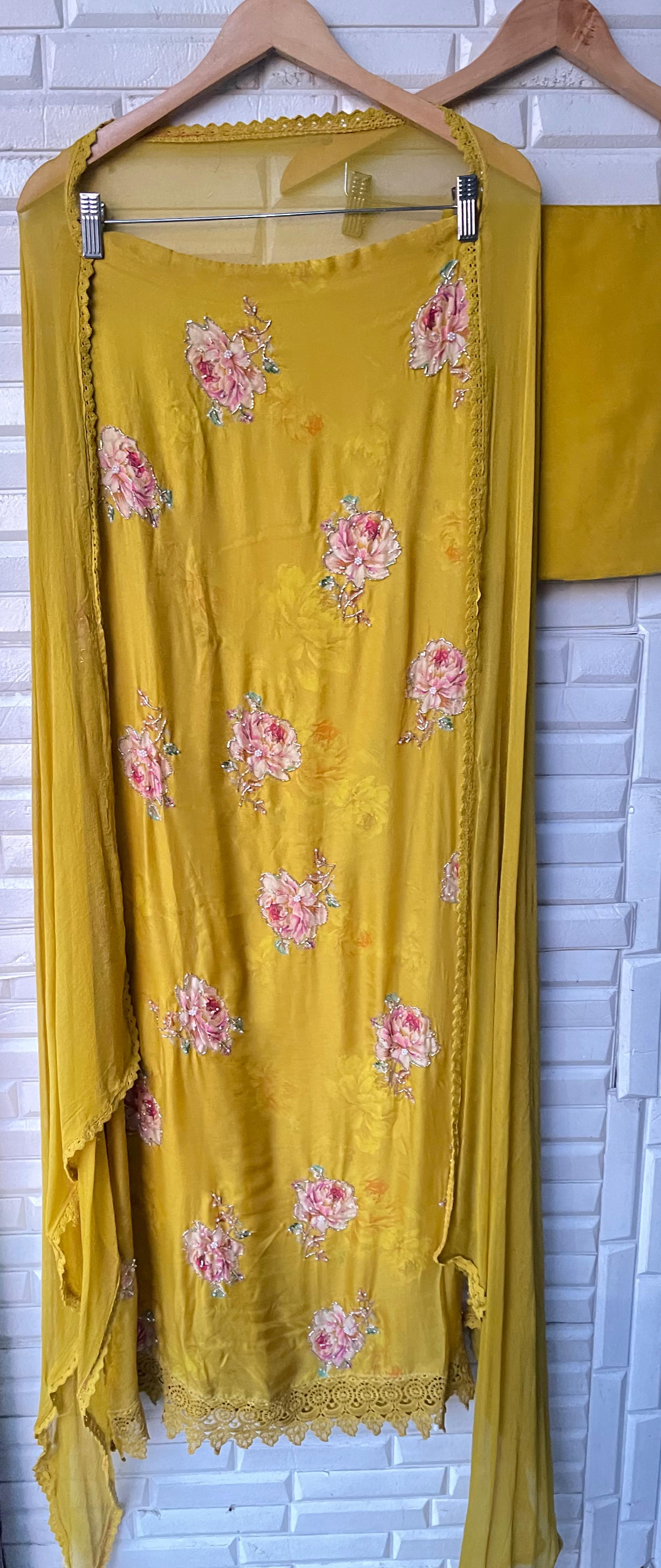 😊 self organza printed fabric unstitched shirt with pearl kutdanna embroidery