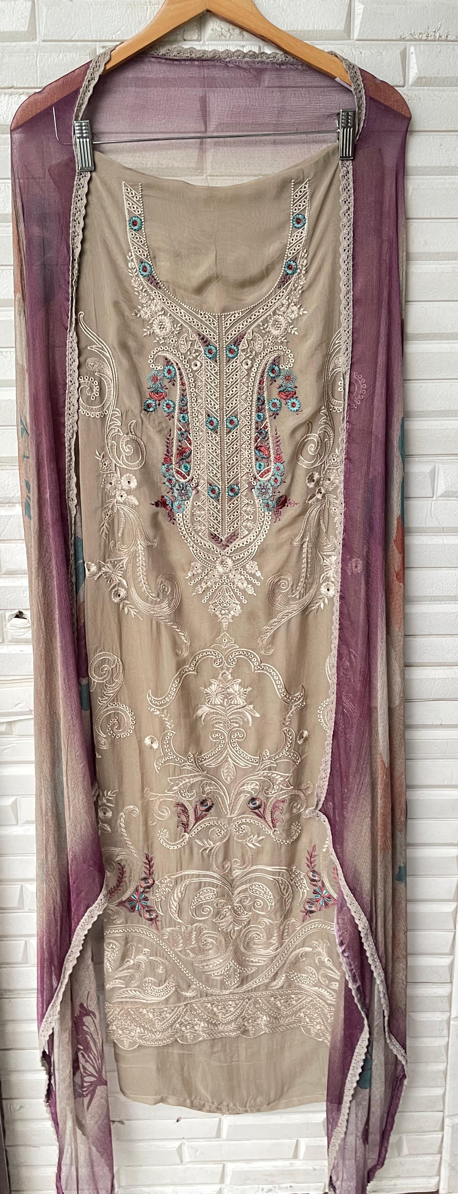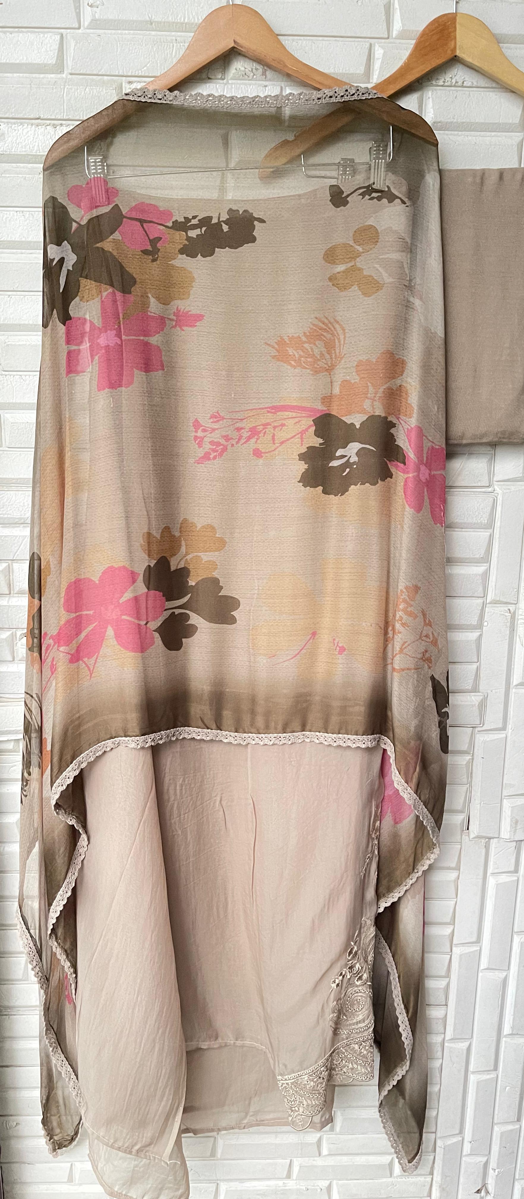 π organza fabric unstitched shirt with patchwork with resham embroidery and scalping on ghera