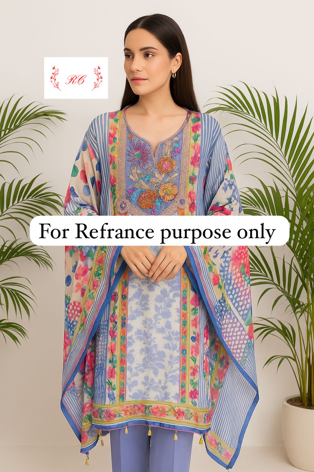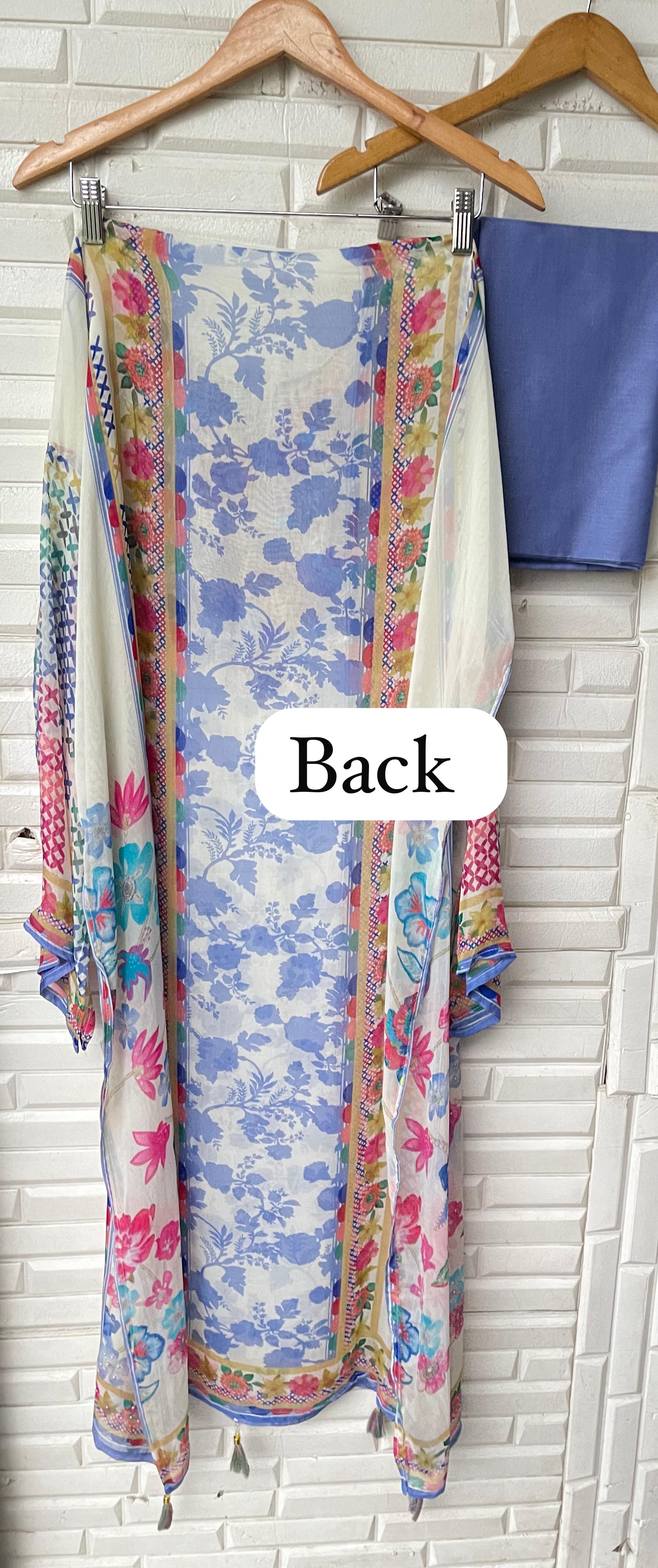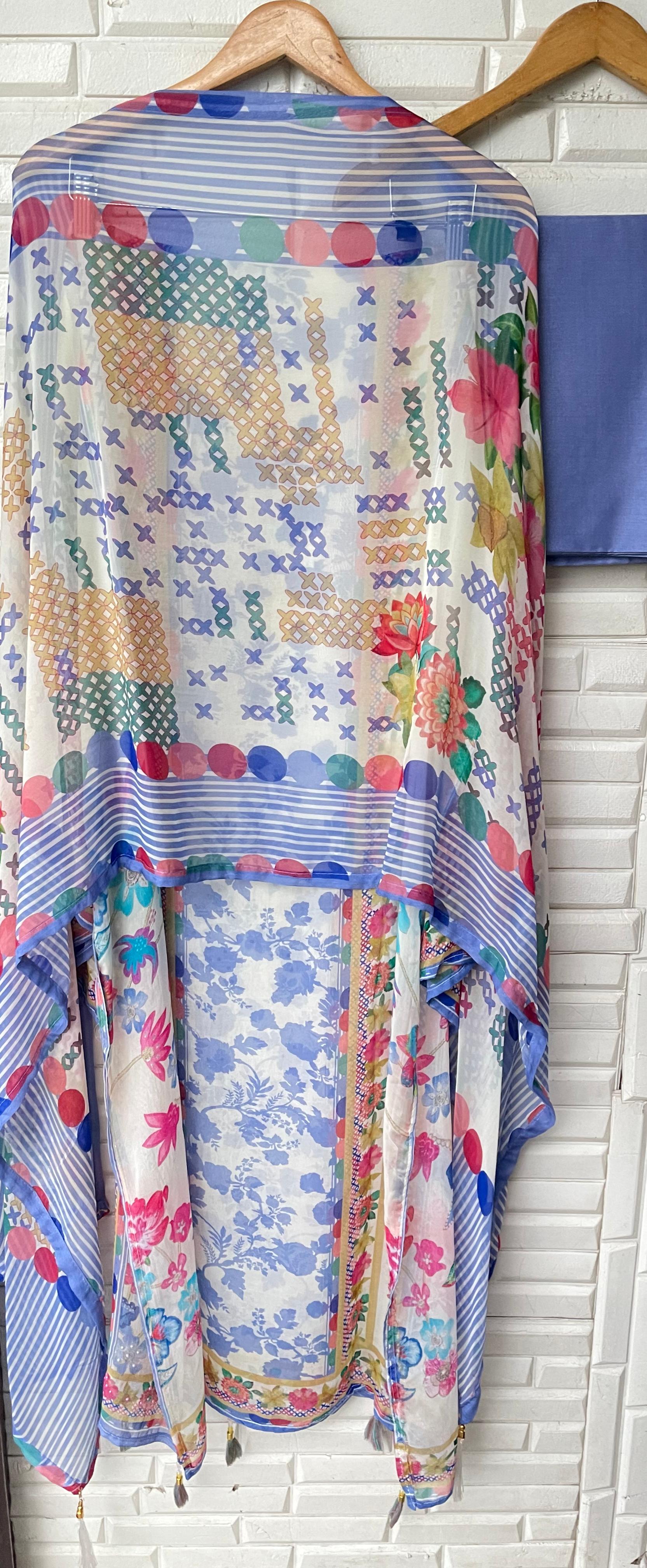 π organza printed fabric unstitched shirt with patchwork on neck with resham pearl scalping embroidery and pearl highlighting all over