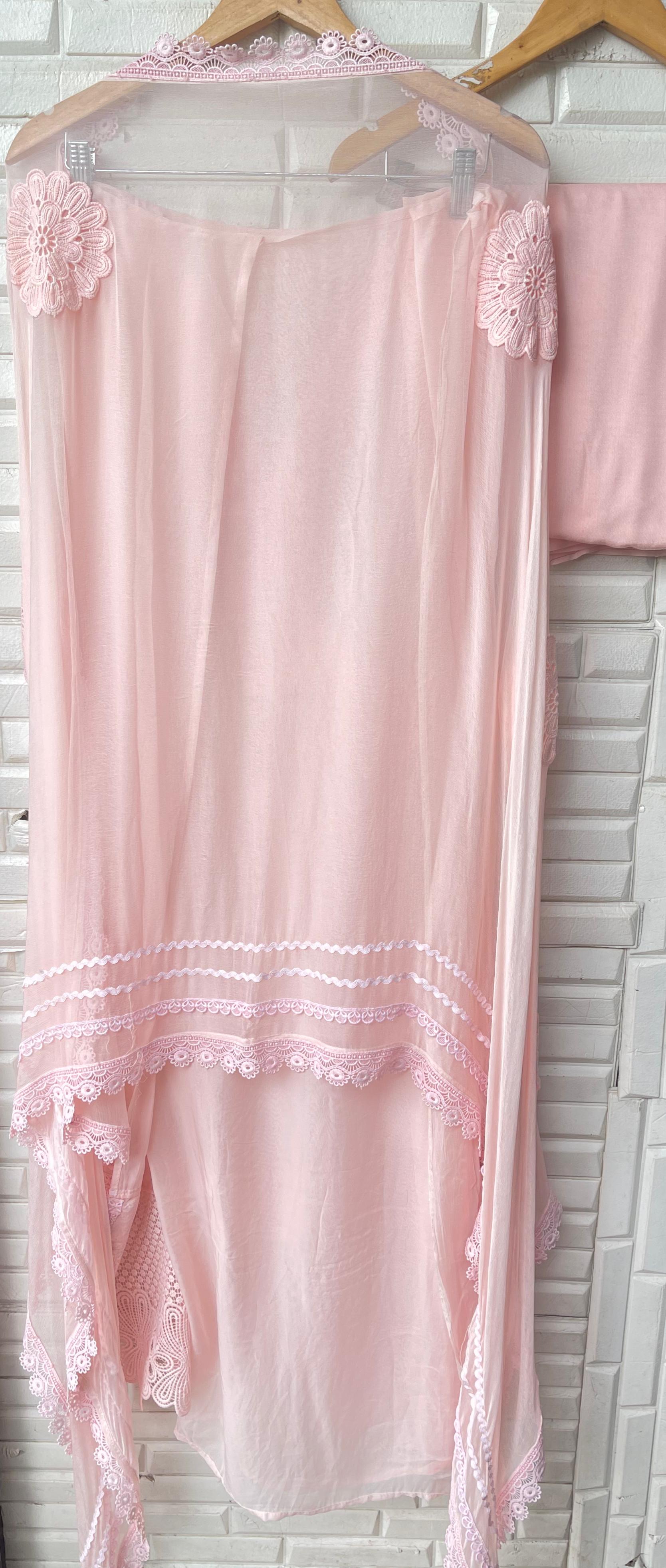 ๐ pure chiffon full size fabric dupatta with crotia border lace and crotia 3D flowers