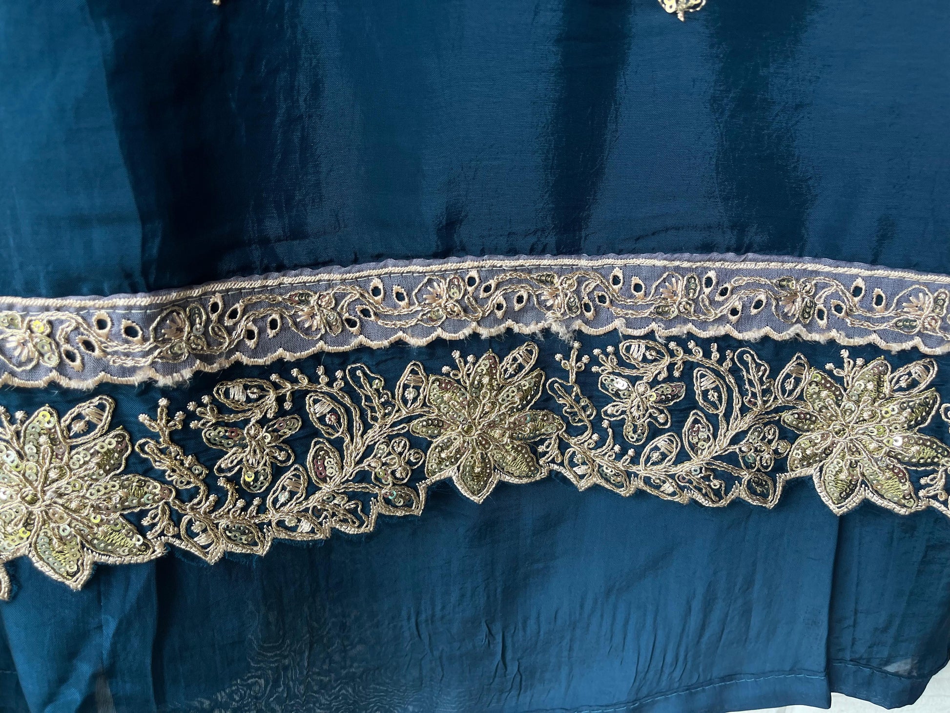 😊organza crape dupatta with gorgeous emebroidery in zari and sequins plus scalping