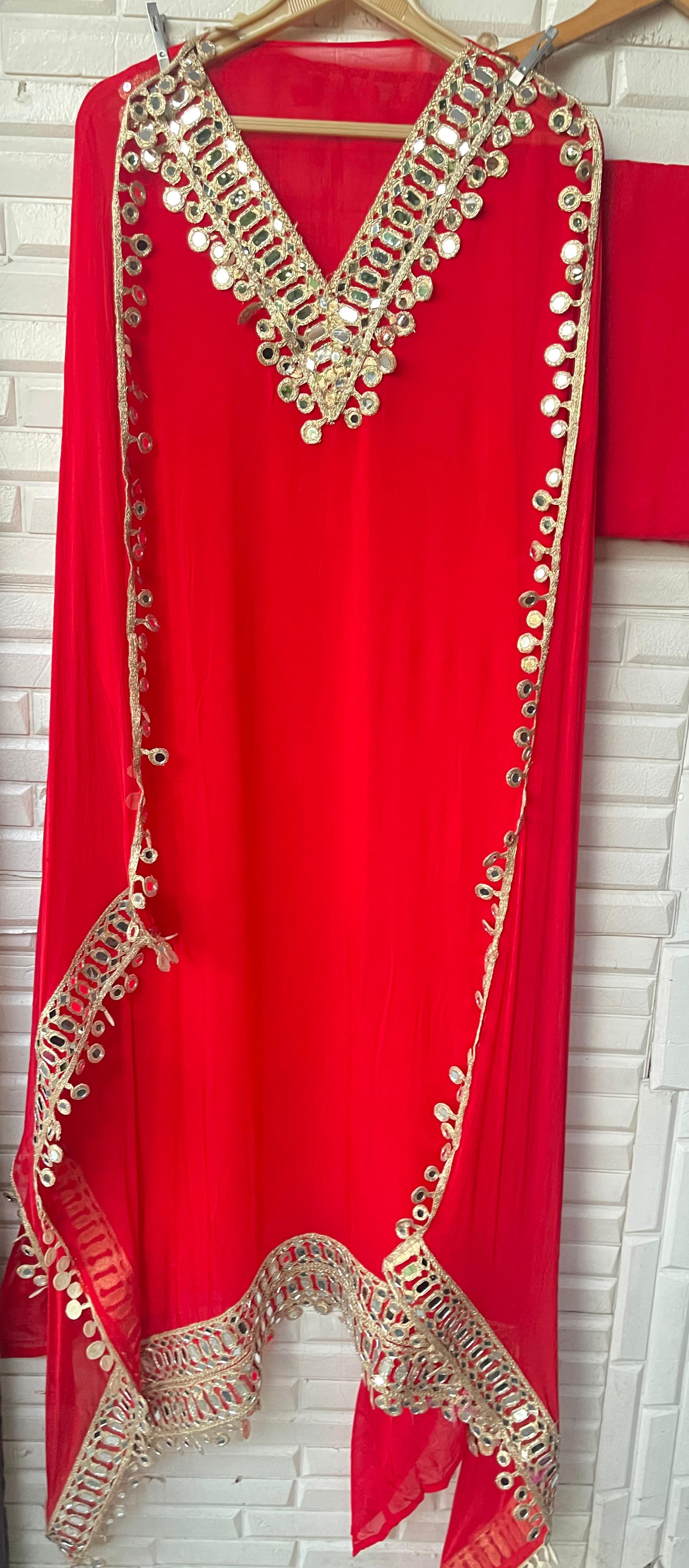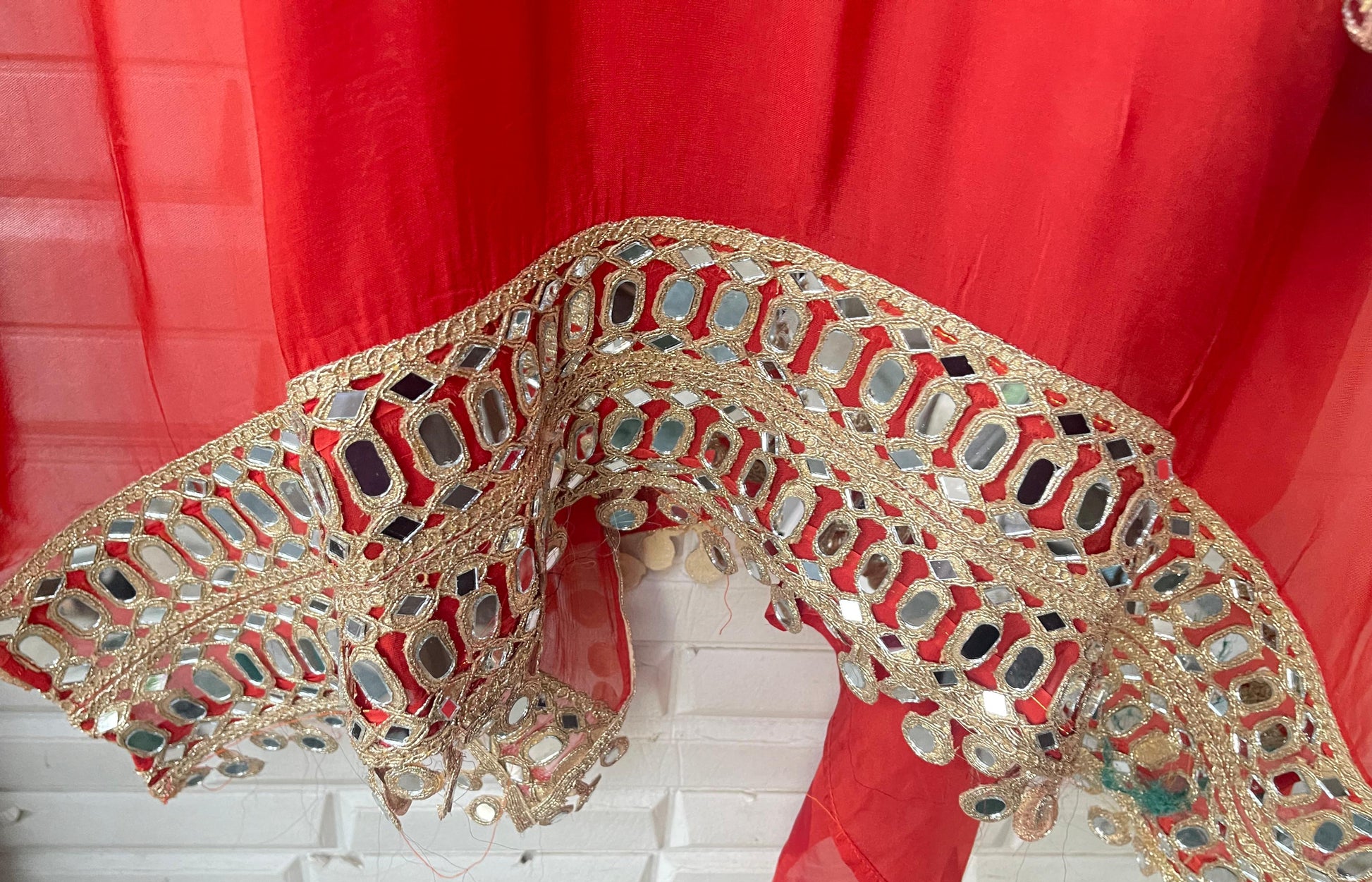 π chiffon fabric dupatta fabric with same mirror work border and a stunning palla