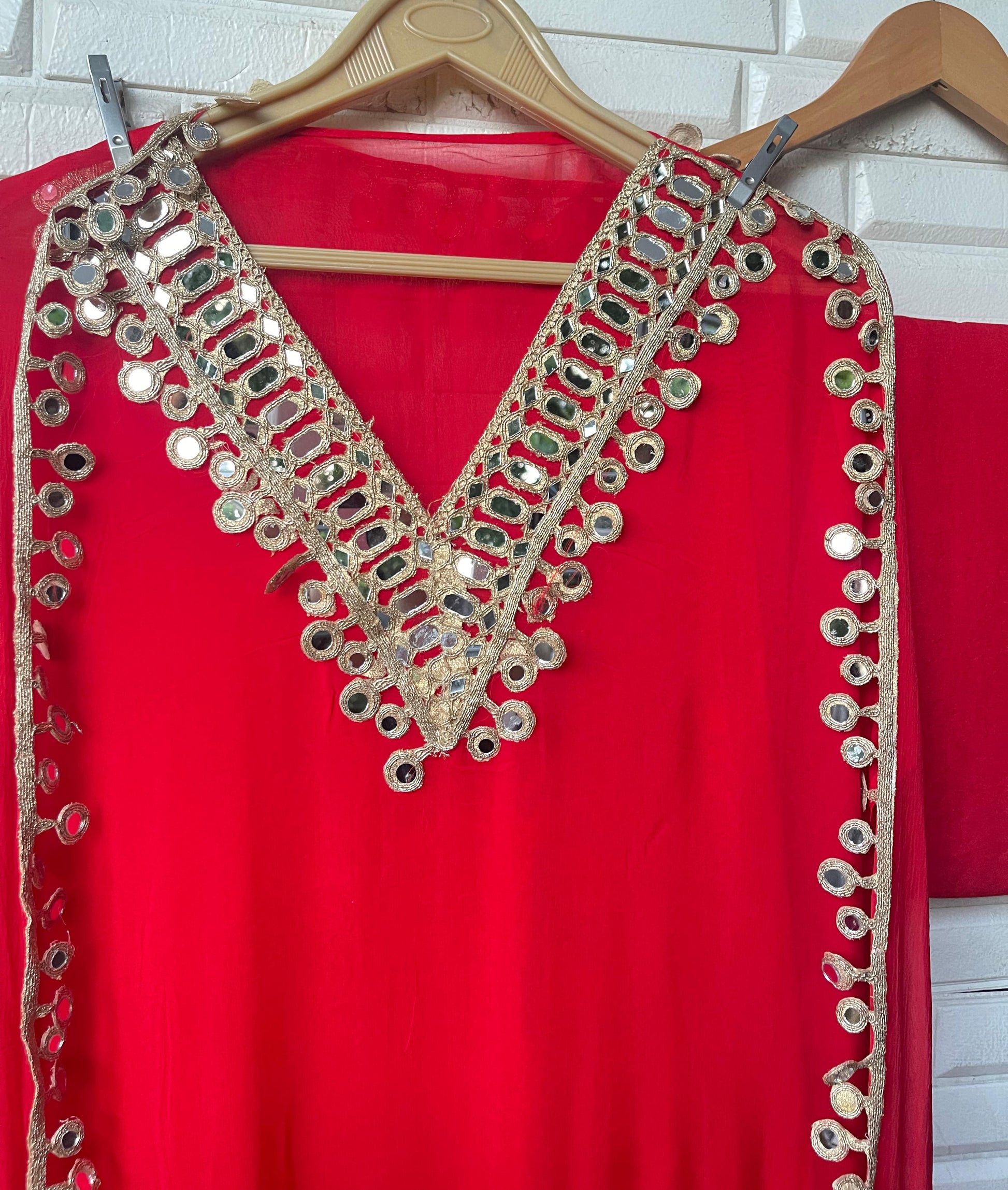 π organza fabric unstitched shirt with actual mirror work highlighting on neck and ghera