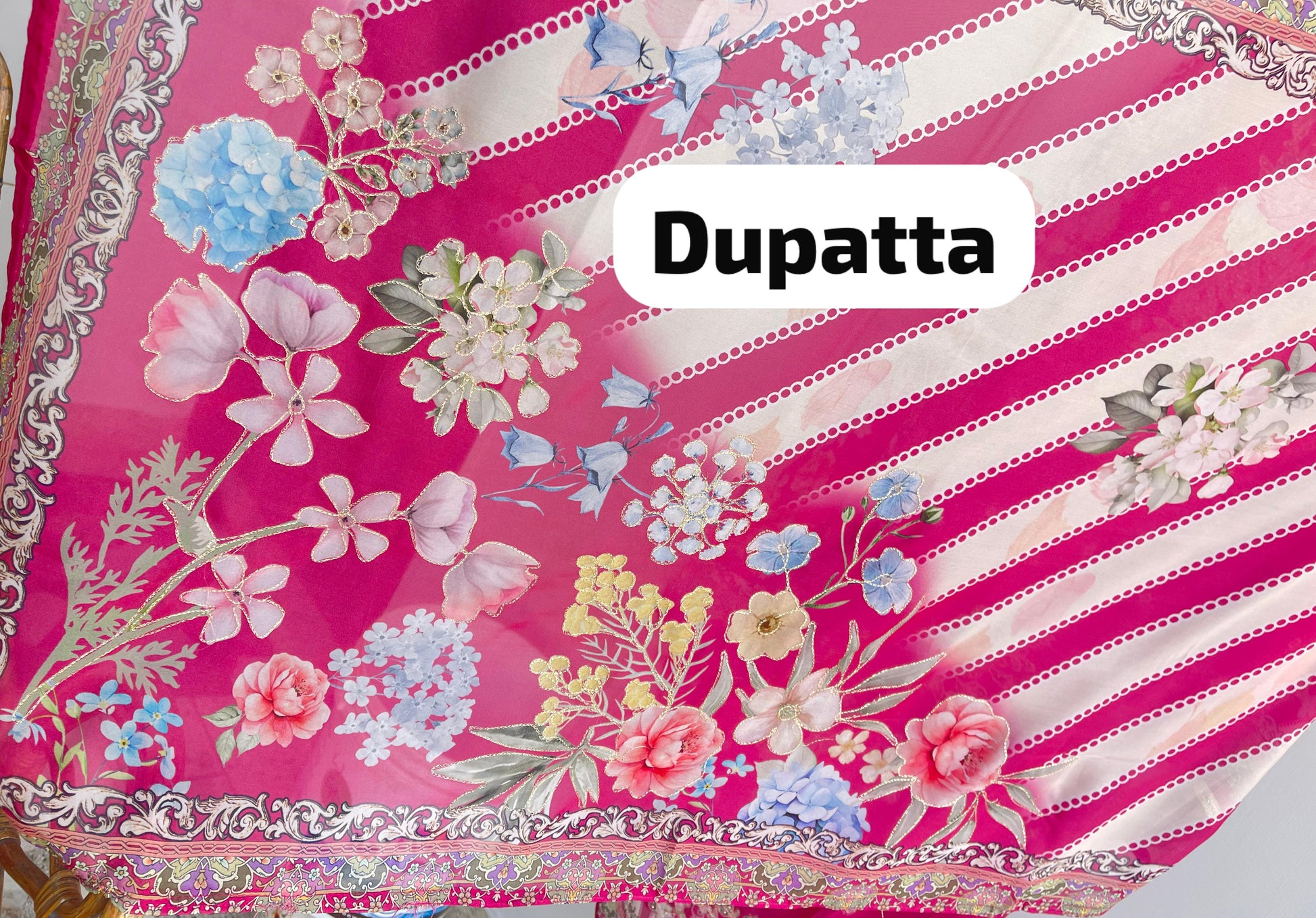 π organza printed fabric unstitched shirt with pearl zari embroidery and ghera zari lace