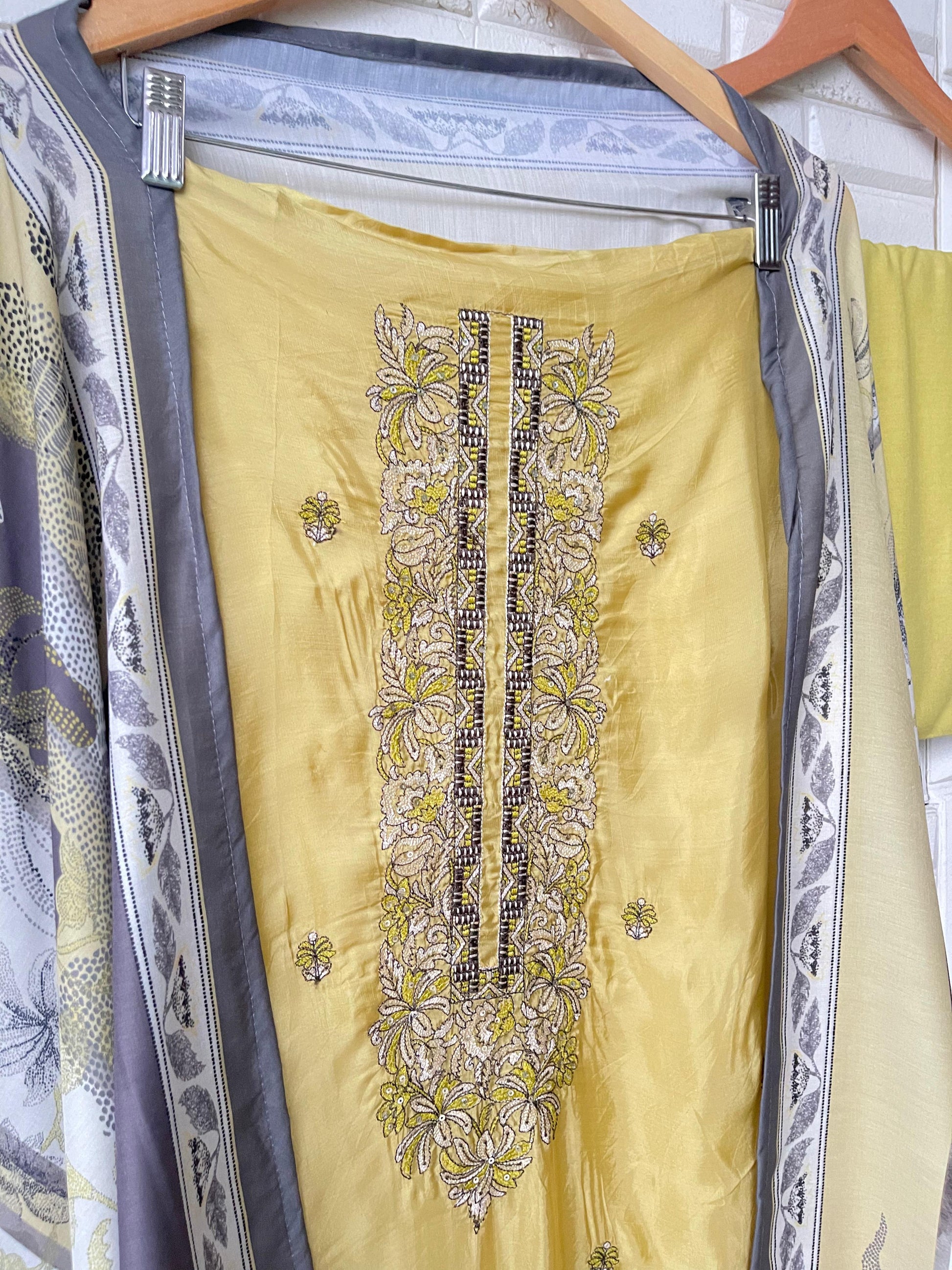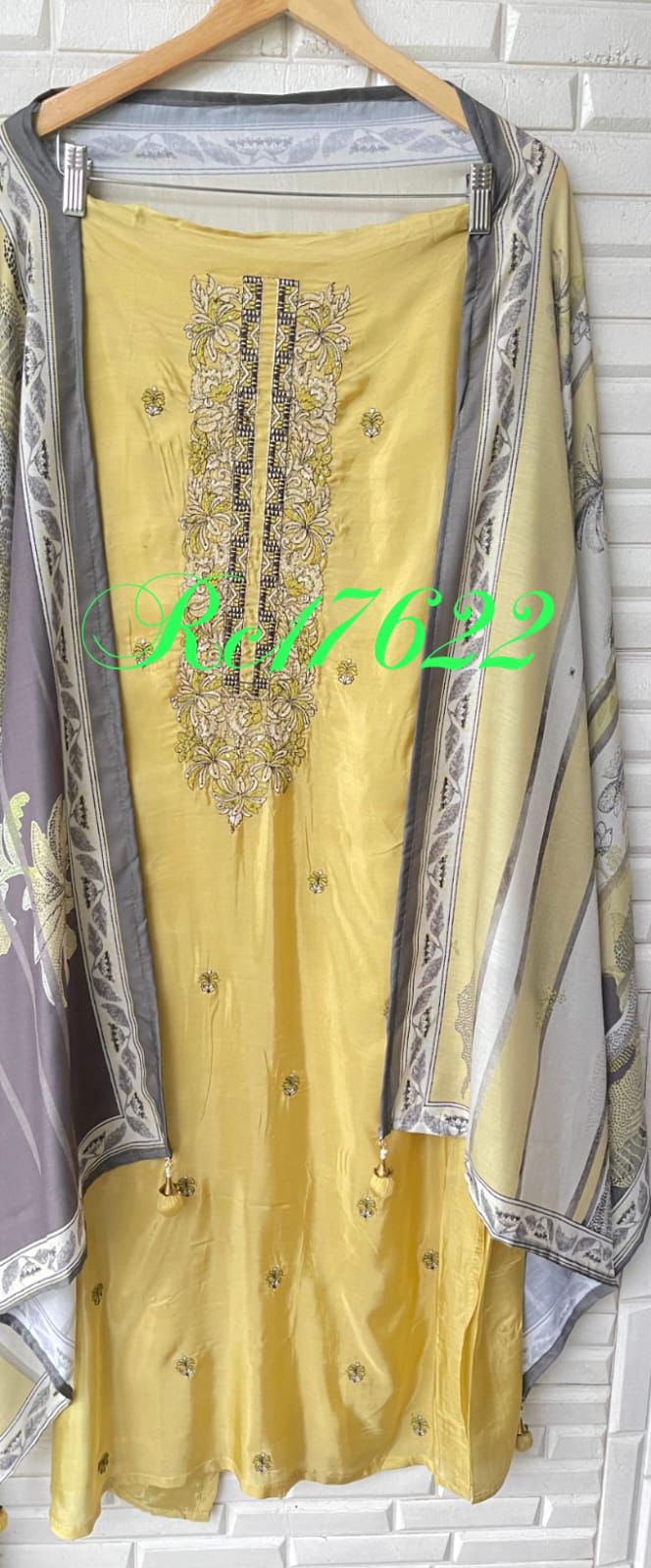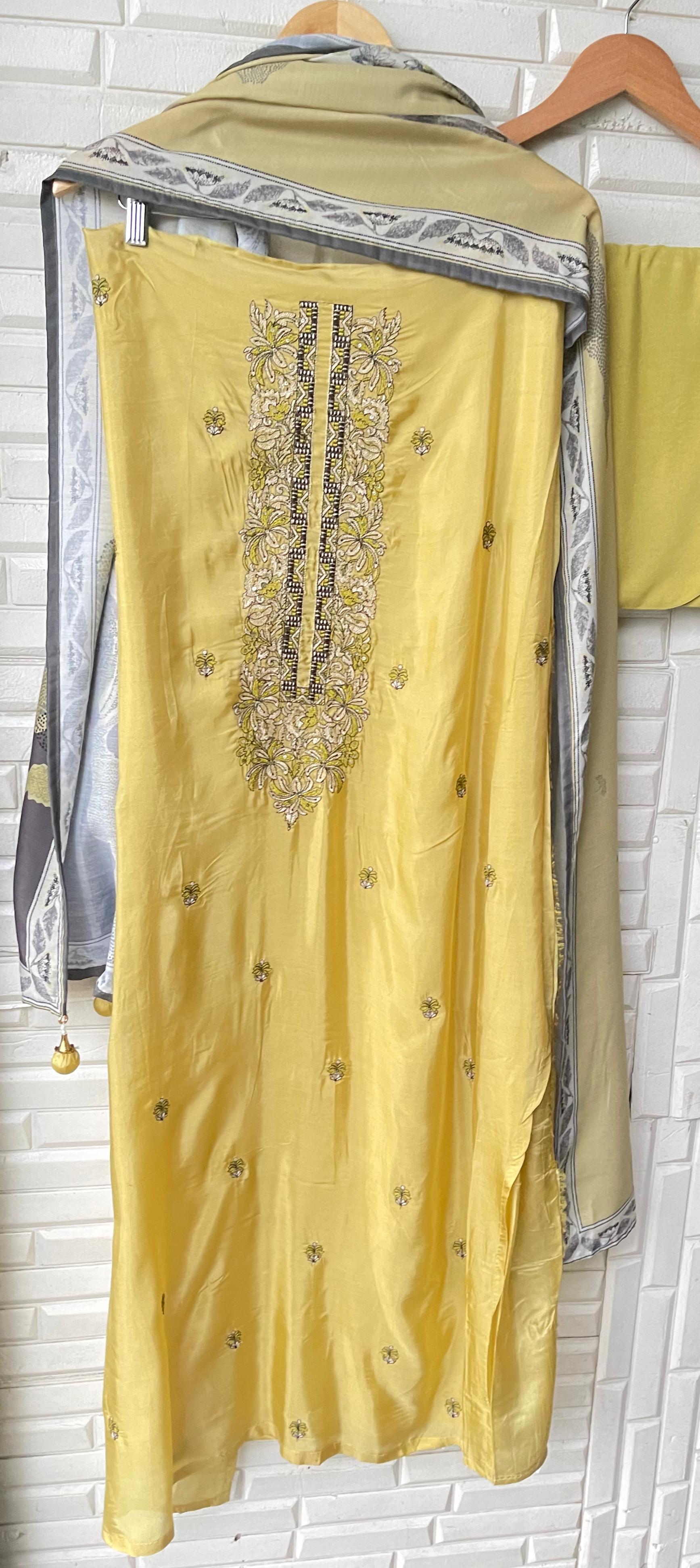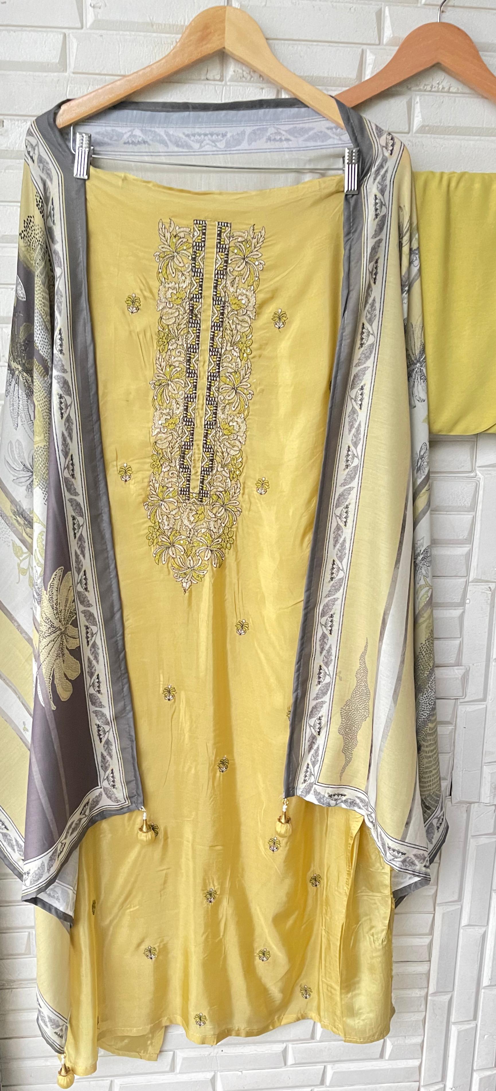 π paper silk fabric unstitched shirt with resham sequence with cutwork