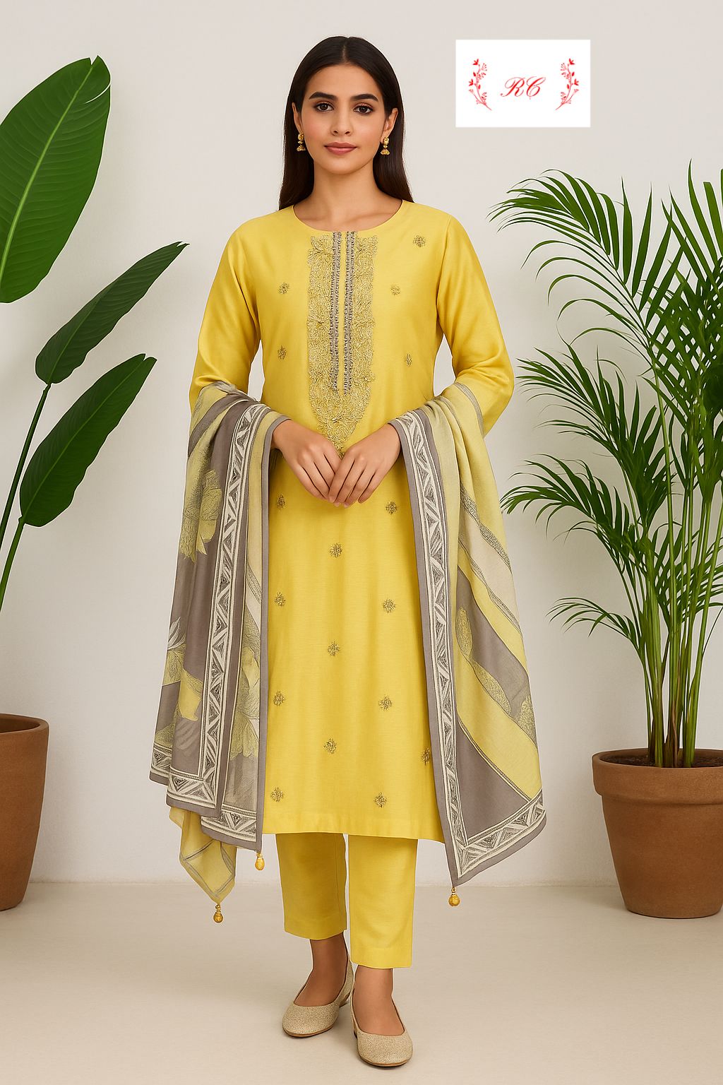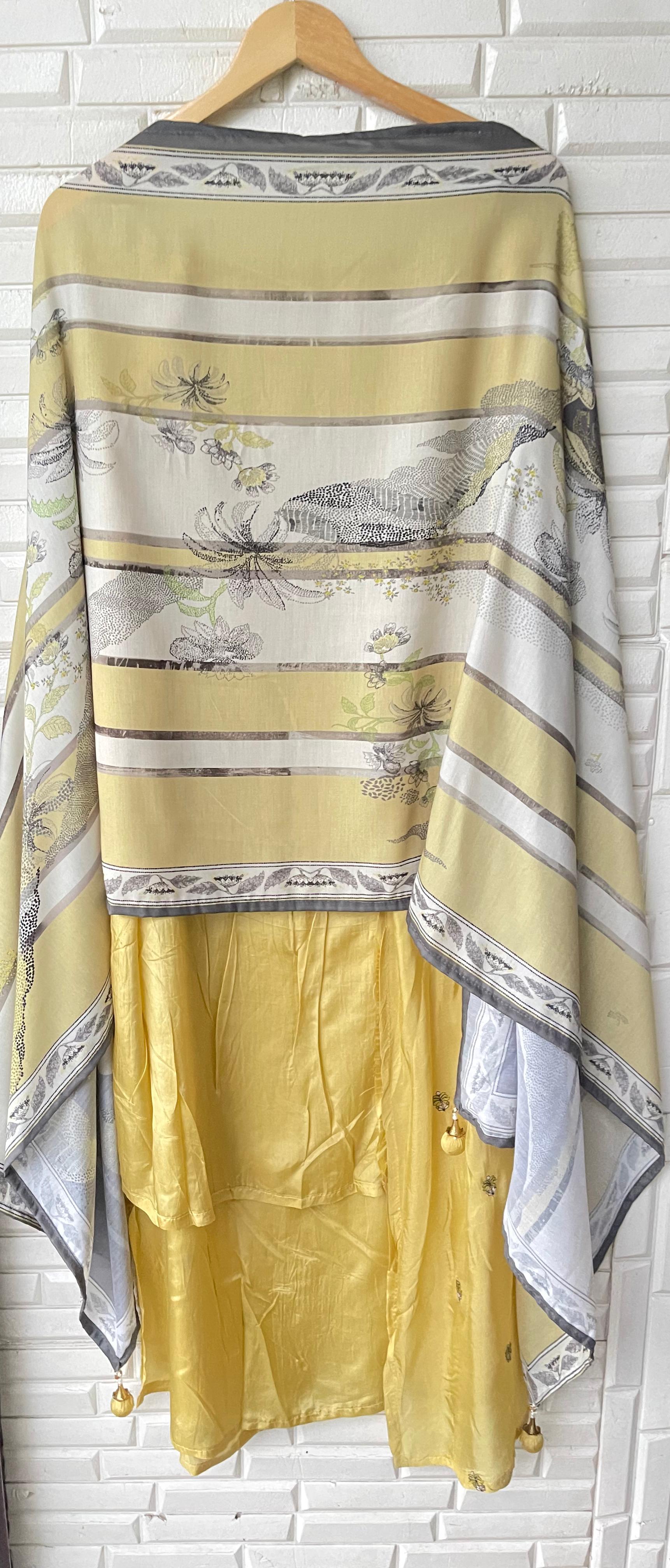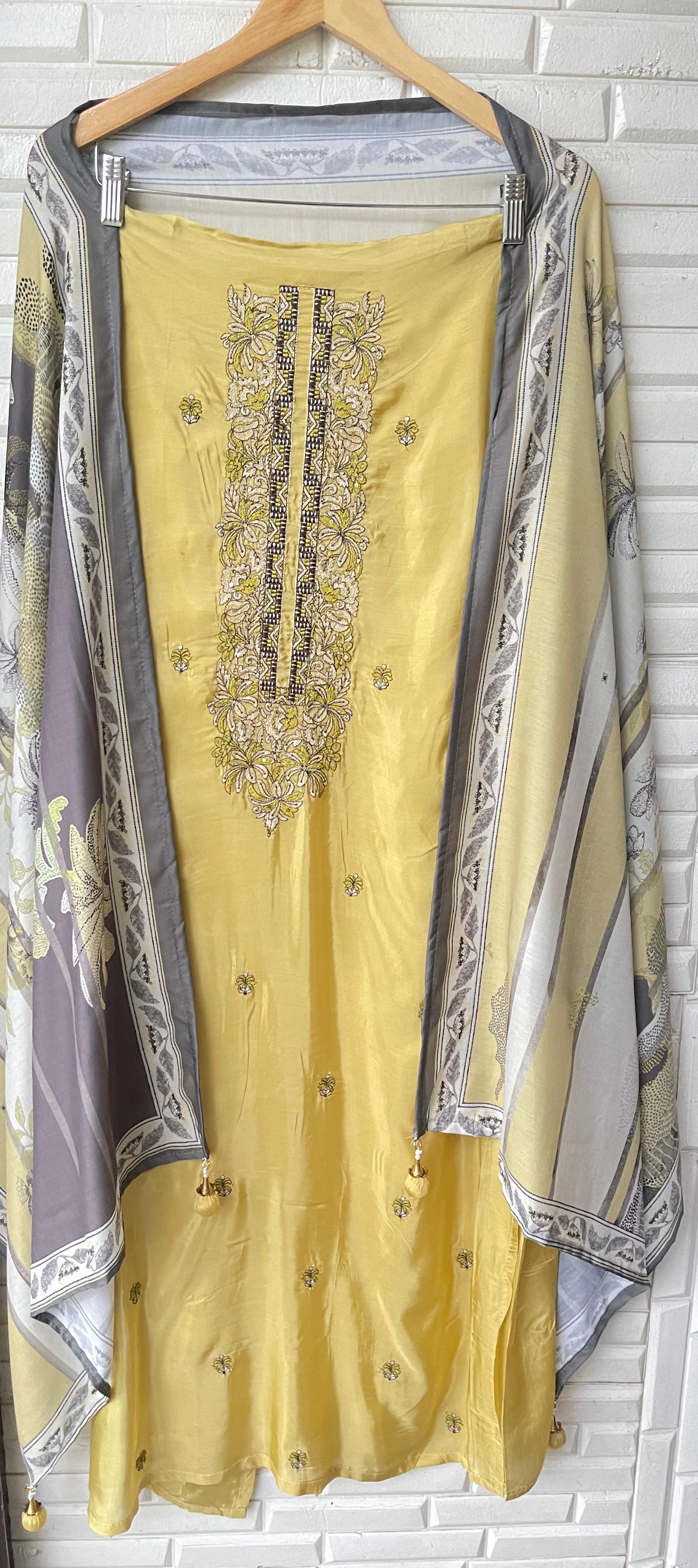 π paper silk fabric unstitched shirt with resham sequence with cutwork