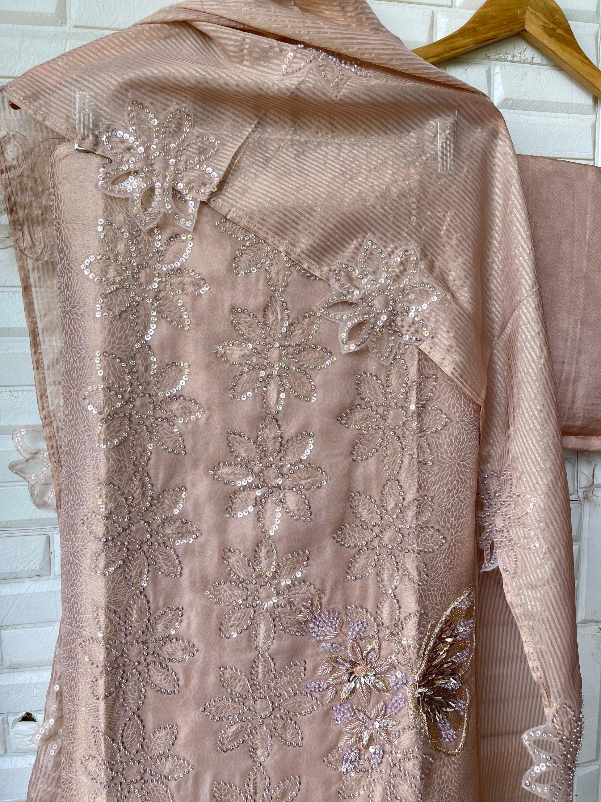 😊 pure brocade self banarasi shimmer silk fabric unstitched shirt with sequence pearl resham kutdanna embroidery appliqué work panel and 3D flowers in stunning metal sequins pearl cutdana zari