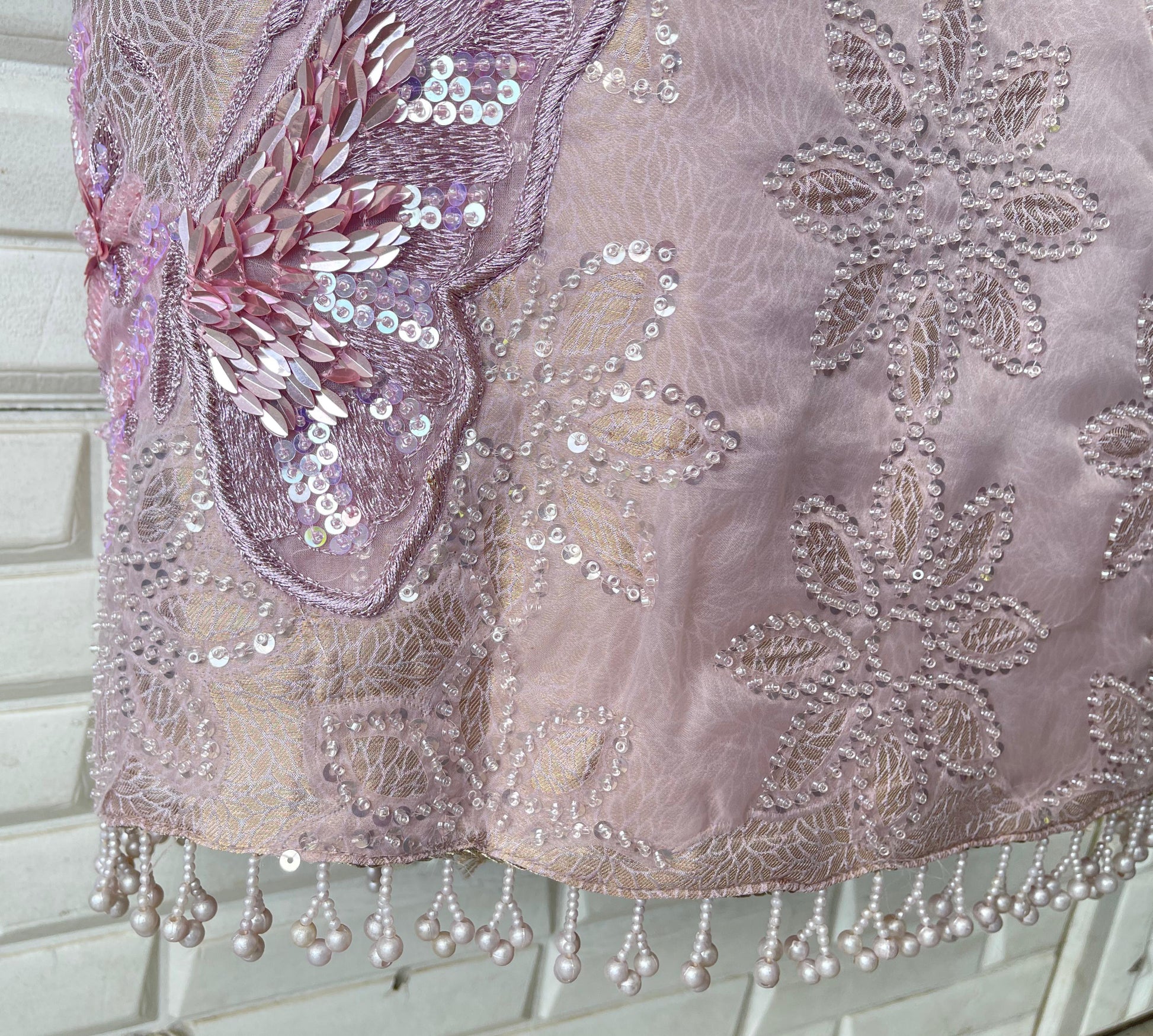 😊 pure brocade self banarasi shimmer silk fabric unstitched shirt with sequence pearl resham kutdanna embroidery appliqué work panel and 3D flowers in stunning metal sequins pearl cutdana zari