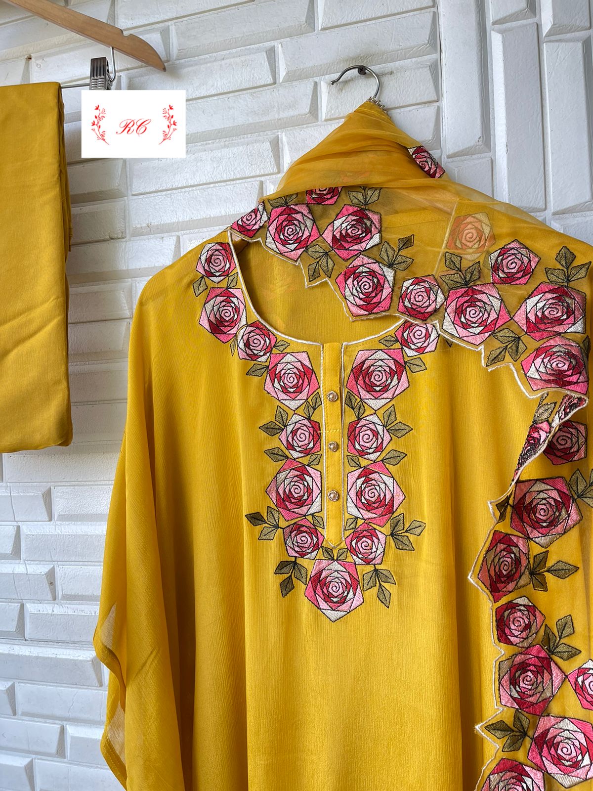 😊 pure chinnon fabric unstitched shirt with resham embroidery