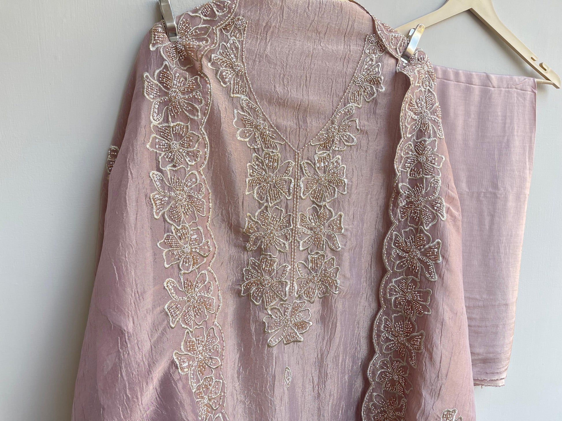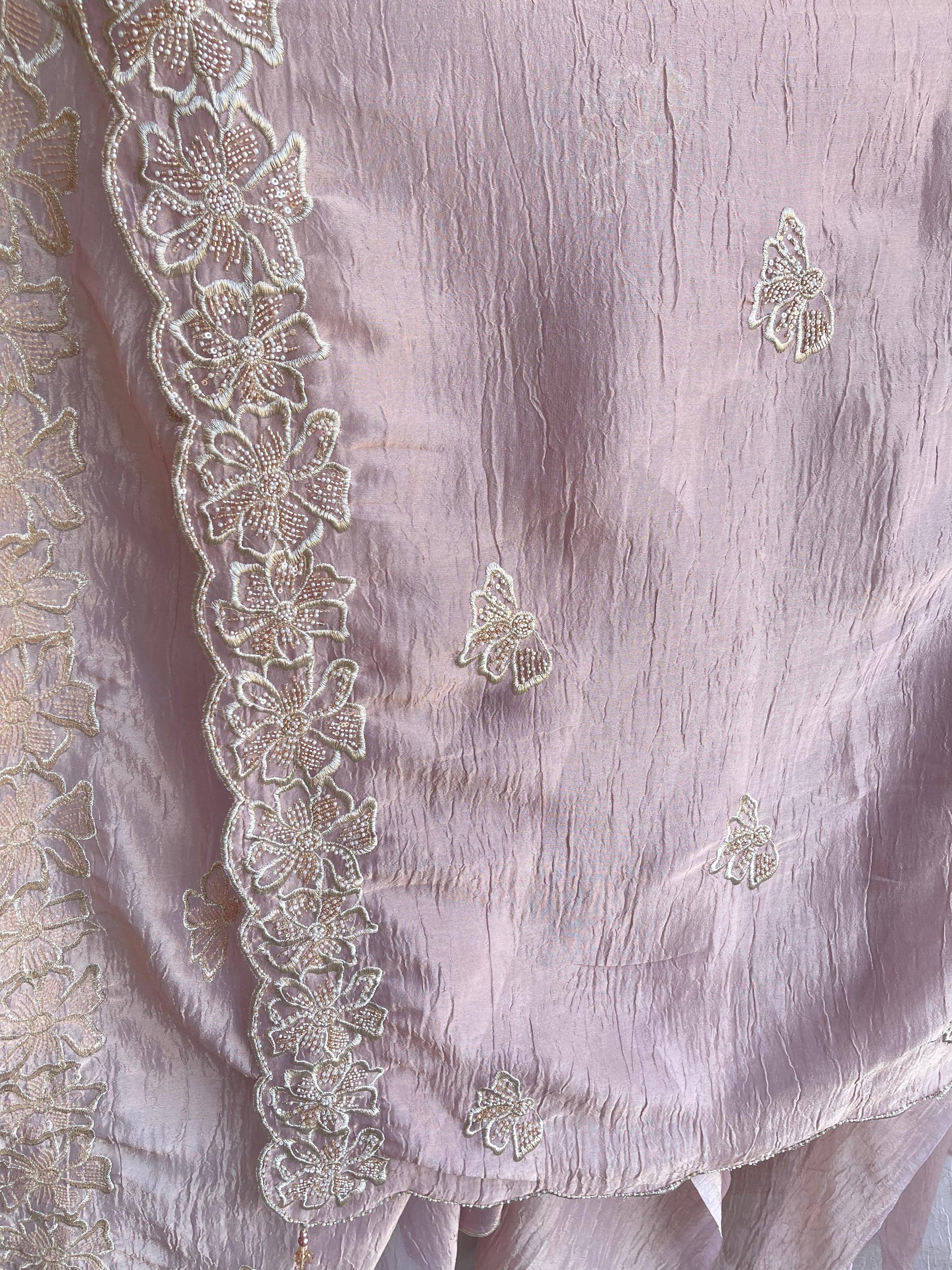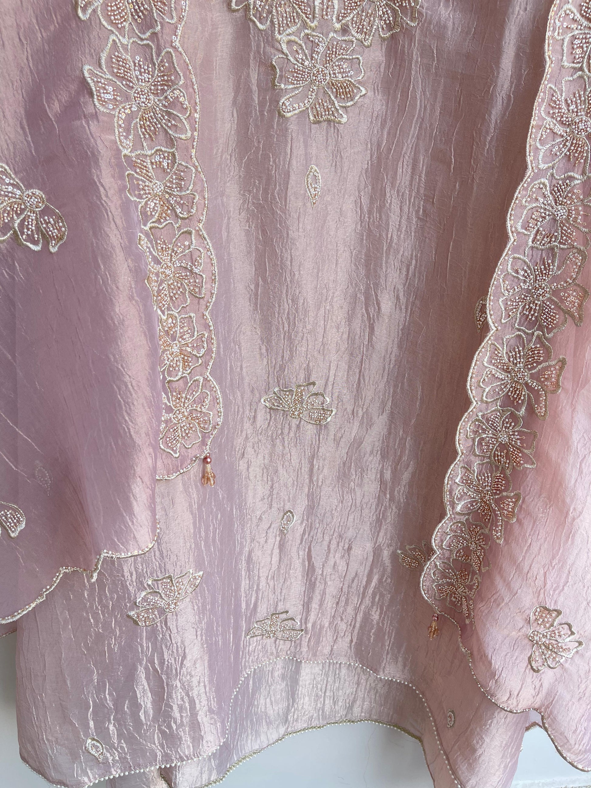 π pure crushed tissue fabric dupatta with zari pearl kutdanna sequins embroidery and scalping