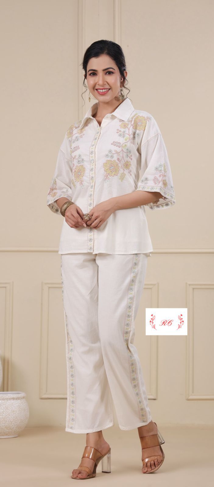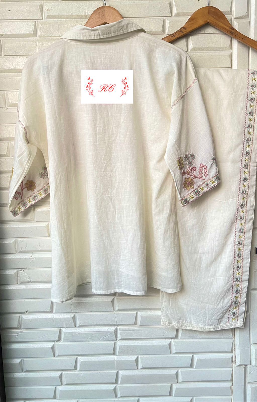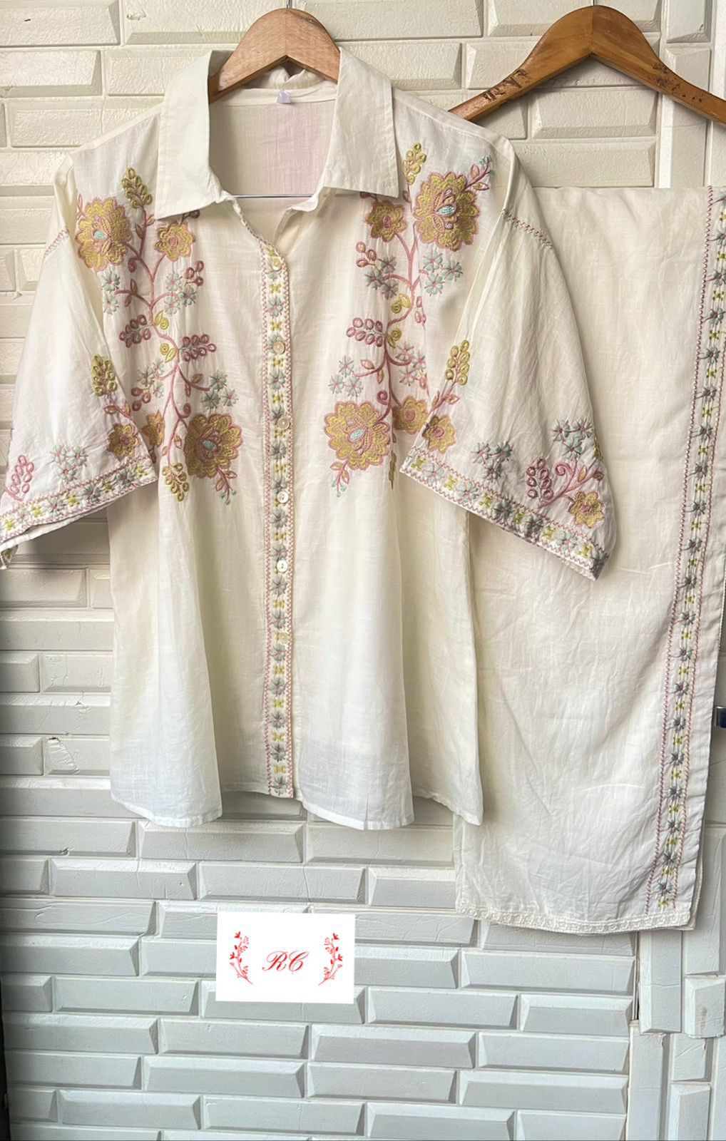 😊 pure linen cotton fabric stitched coord set shirt with resham embroidery and attached lining