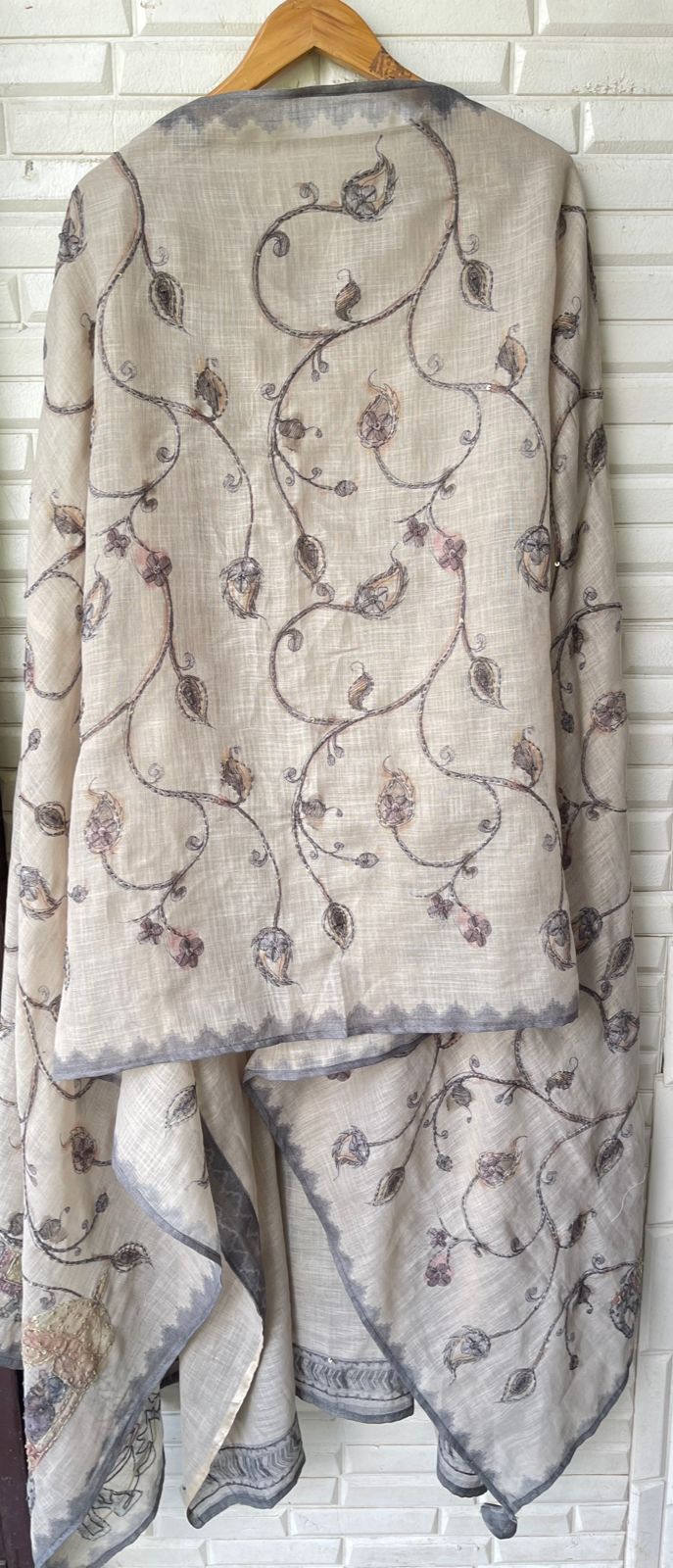 π pure cotton linen fabric full jaal embroidery dupatta with resham knots sequence work