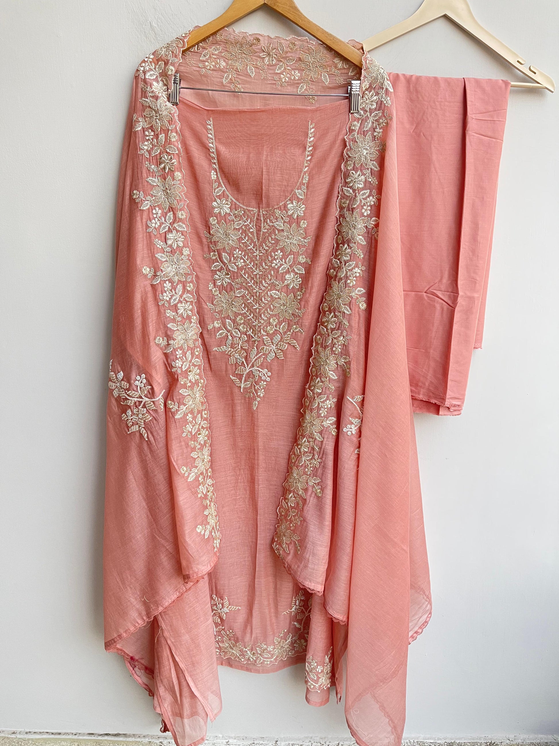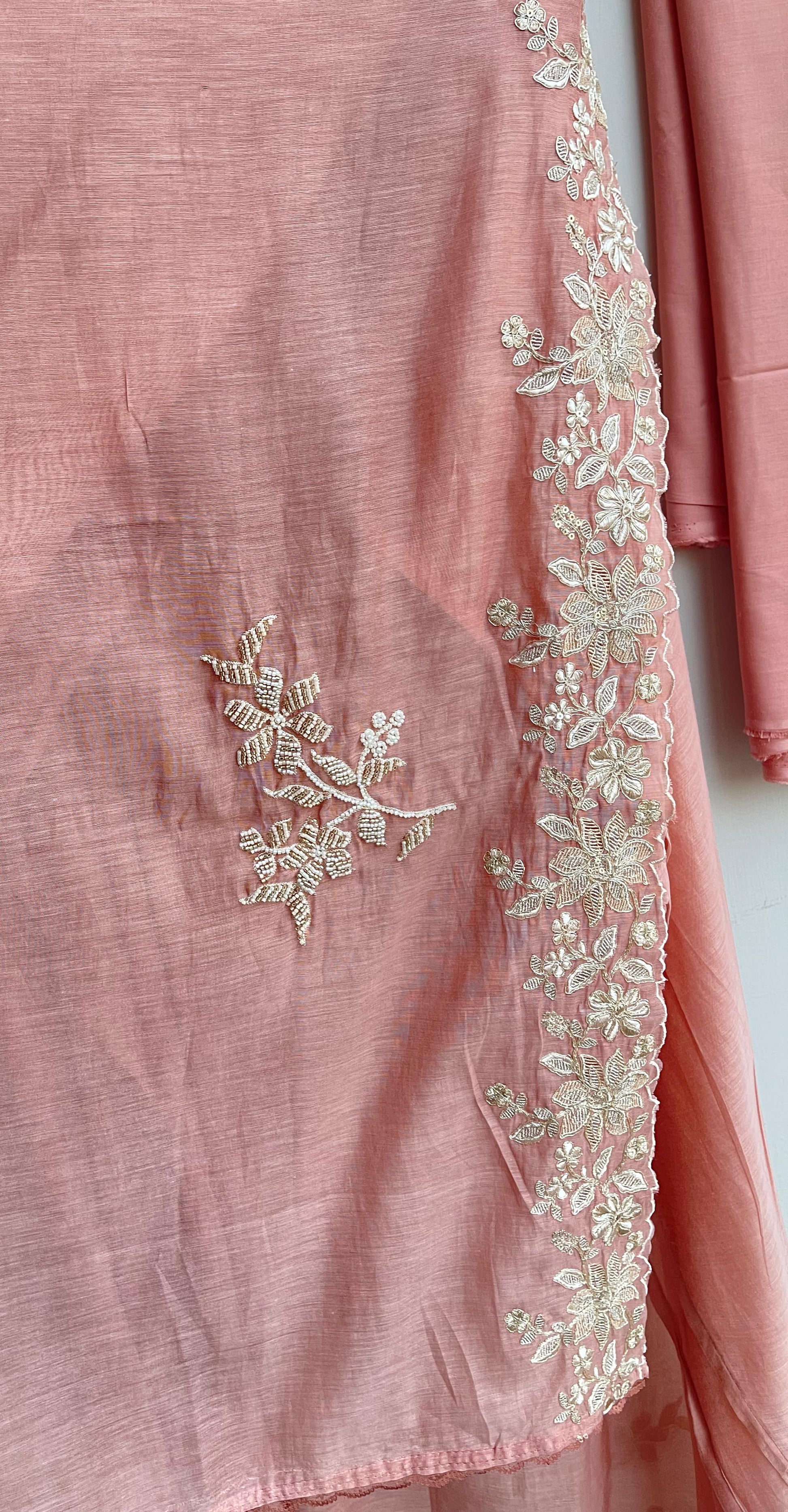 😊 pure mul chanderi fabric unstitched shirt with resham zari sequence embroidery
