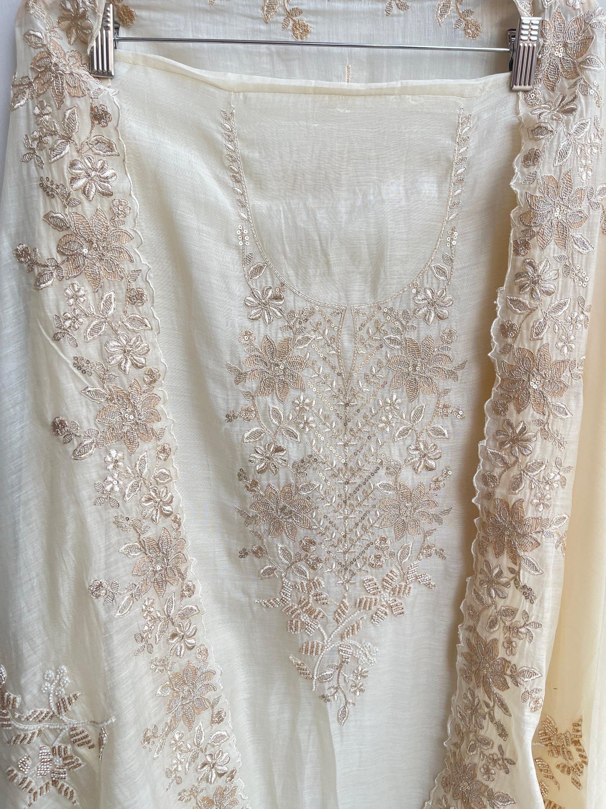 😊 pure mul chanderi fabric unstitched shirt with resham zari sequence embroidery