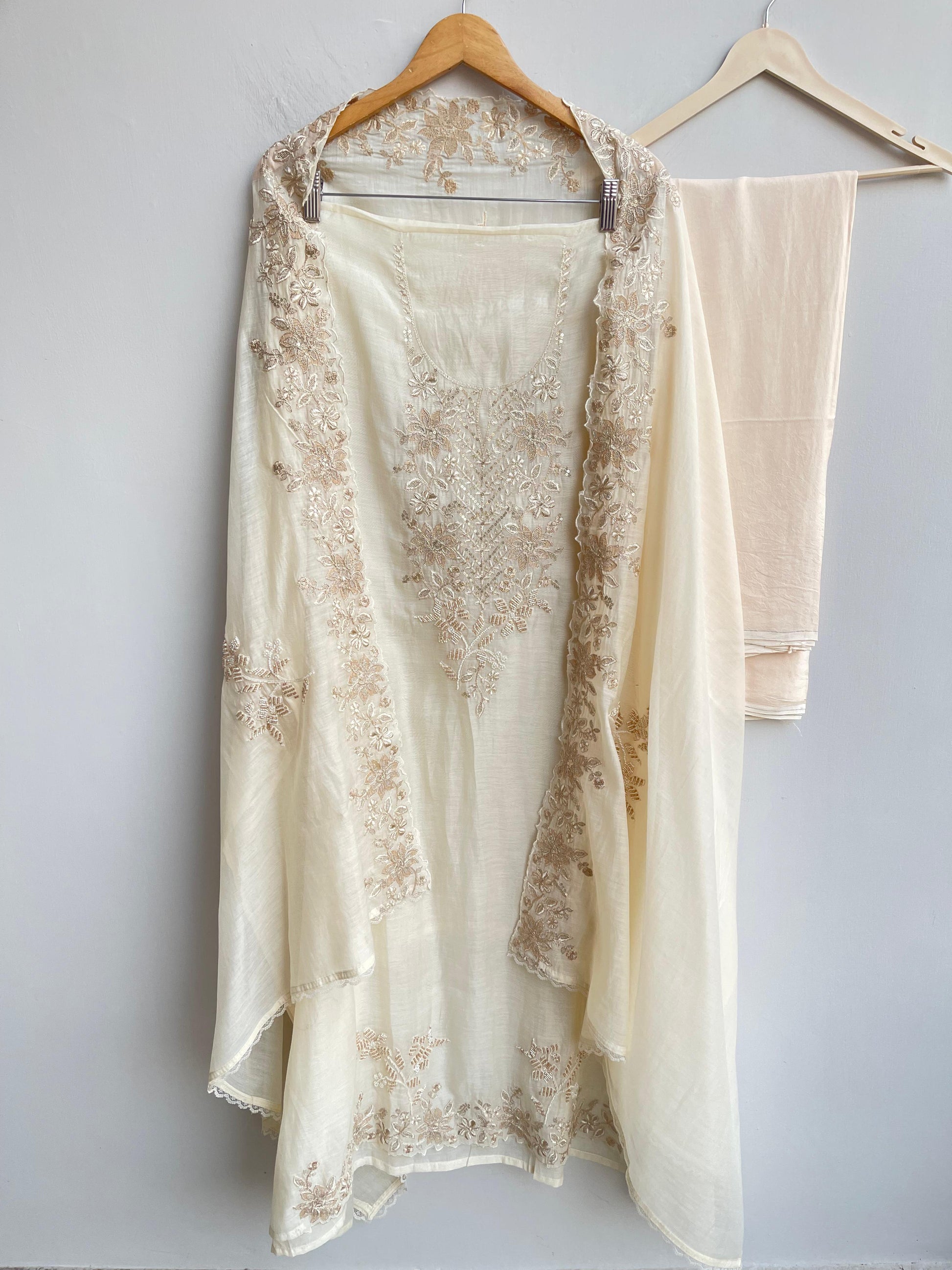 😊 pure mul chanderi fabric dupatta with resham zari sequence embroidery and scalping