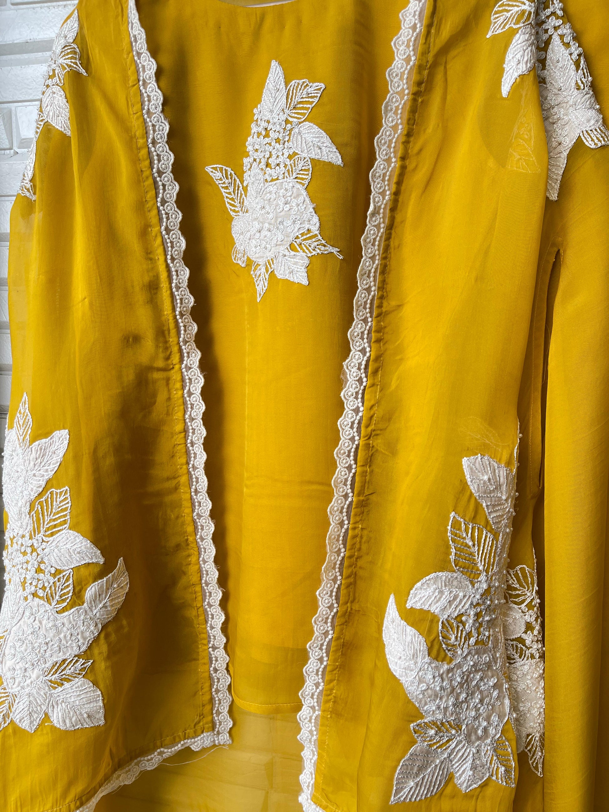 😊 pure oragnza detachable fabric cape with Resham pearl sequence embroidery