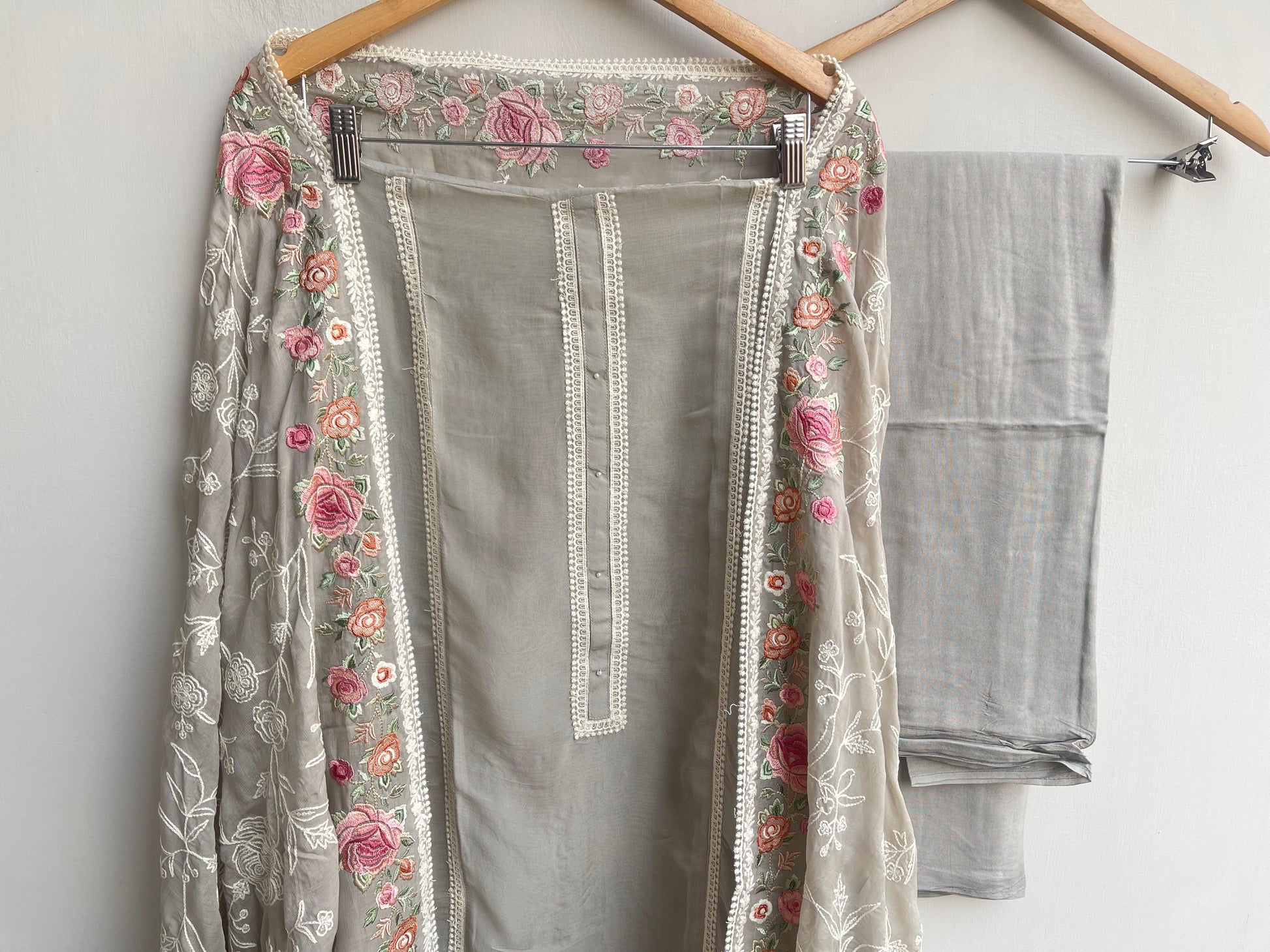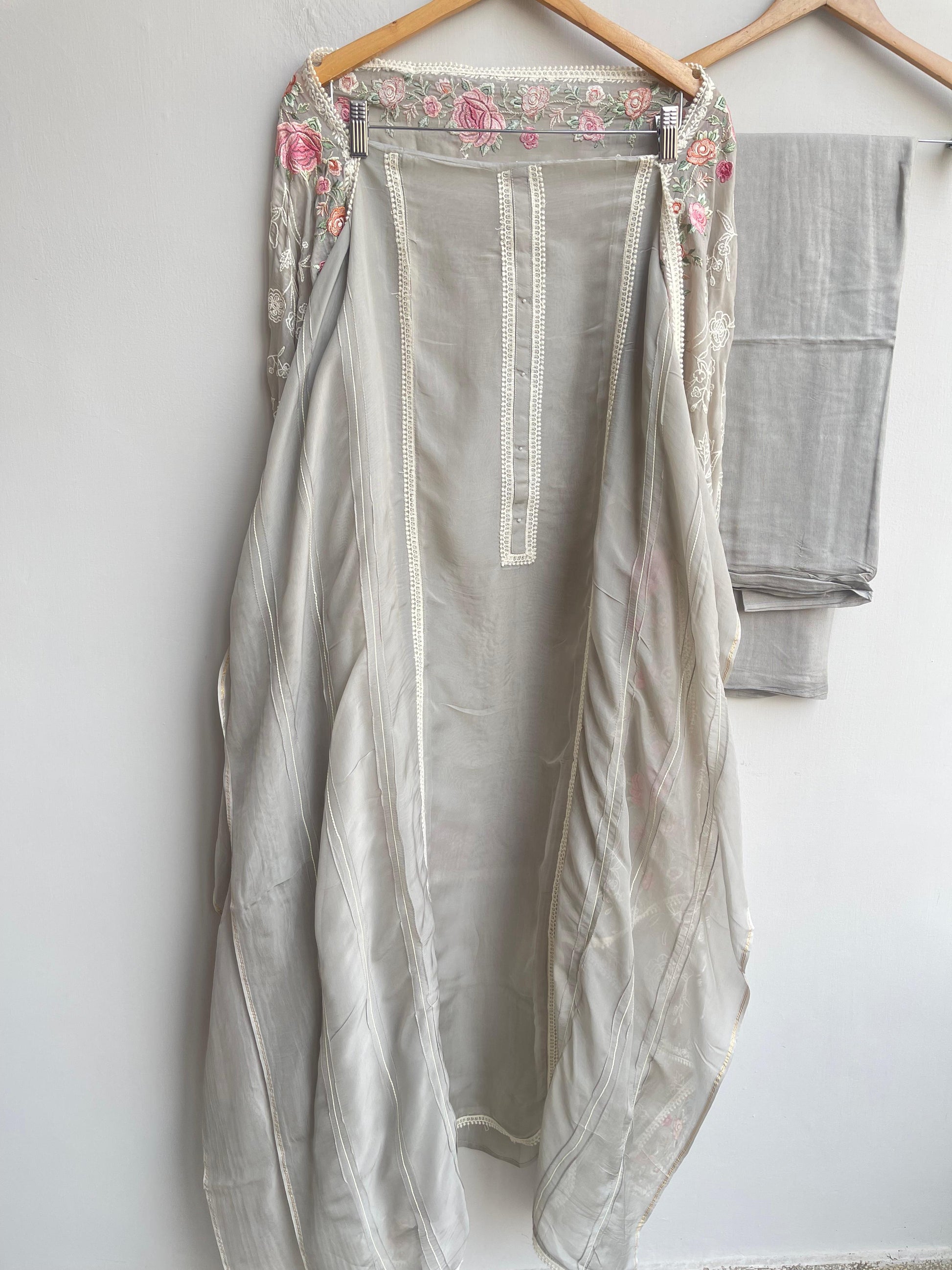 😊 pure organza fabric unstitched shirt with crotia lace insertions with crotia ghera lace and dhagai