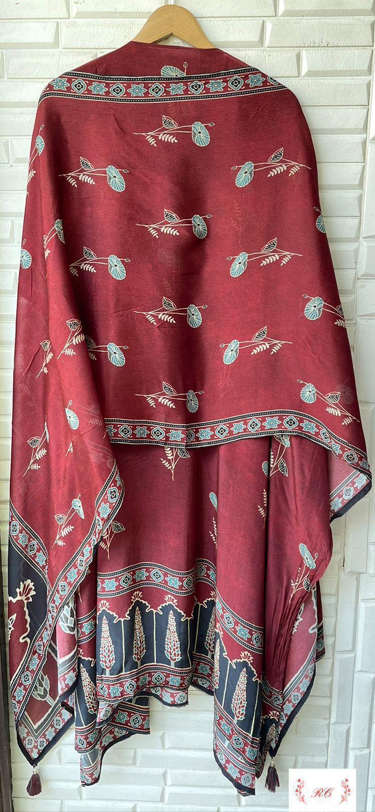 😊 Pure chinon silk printed fabric dupatta with latkans