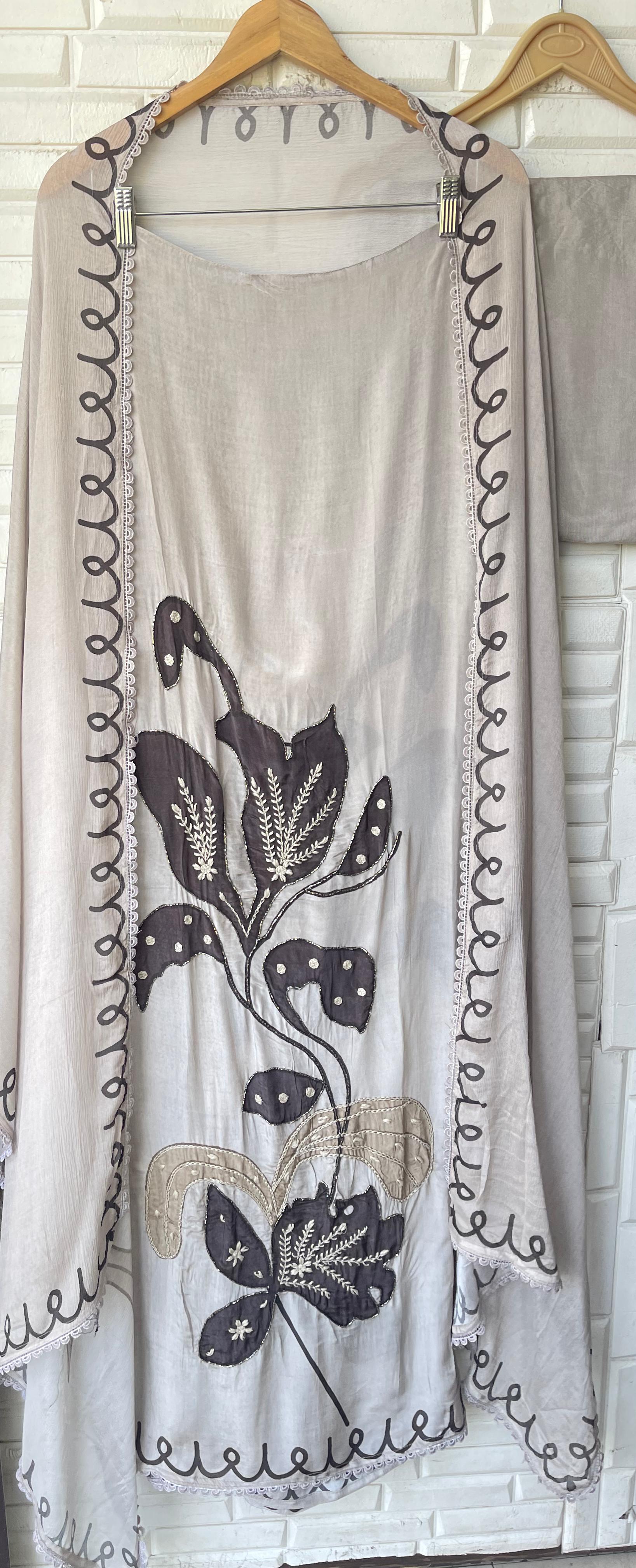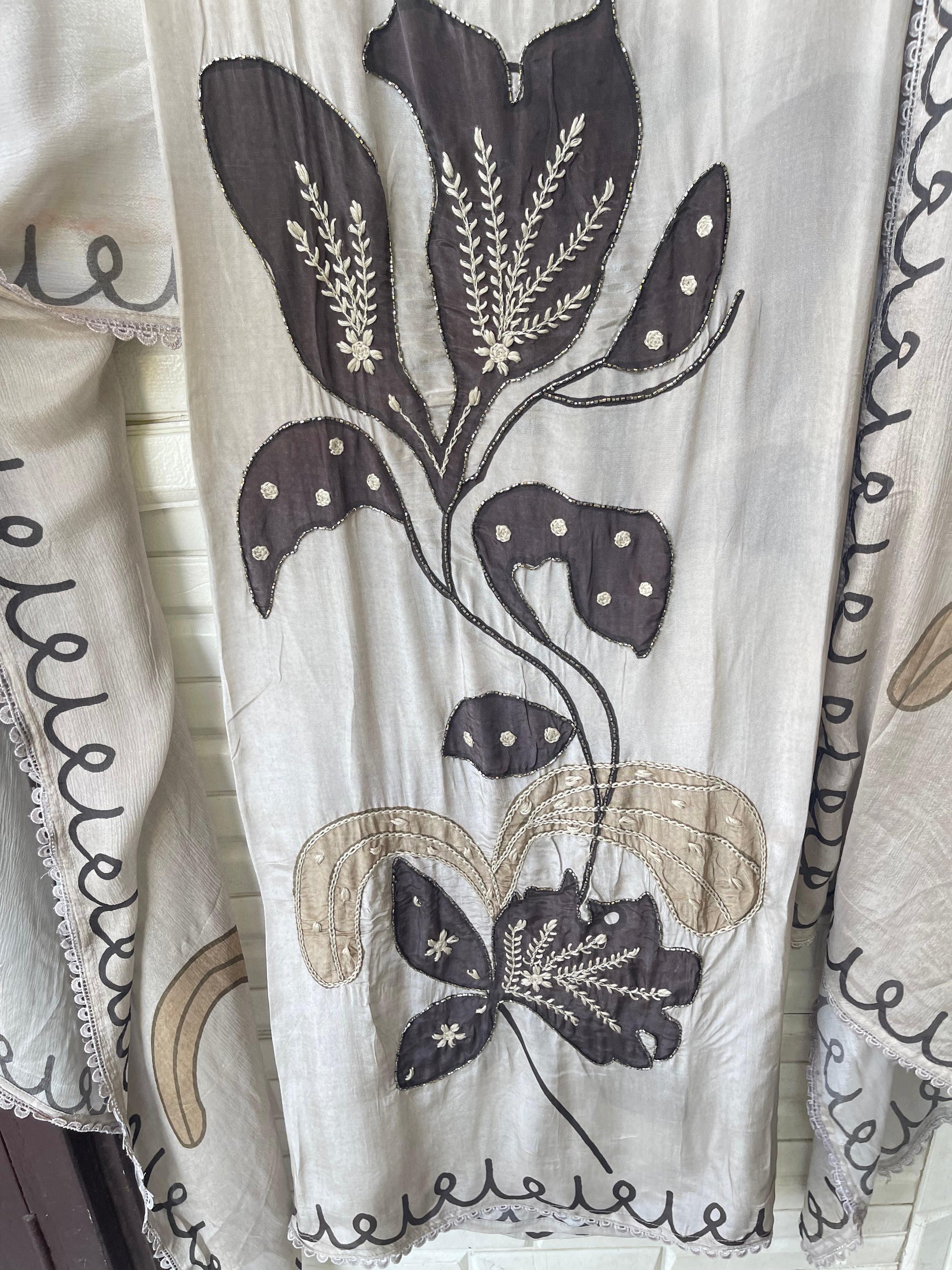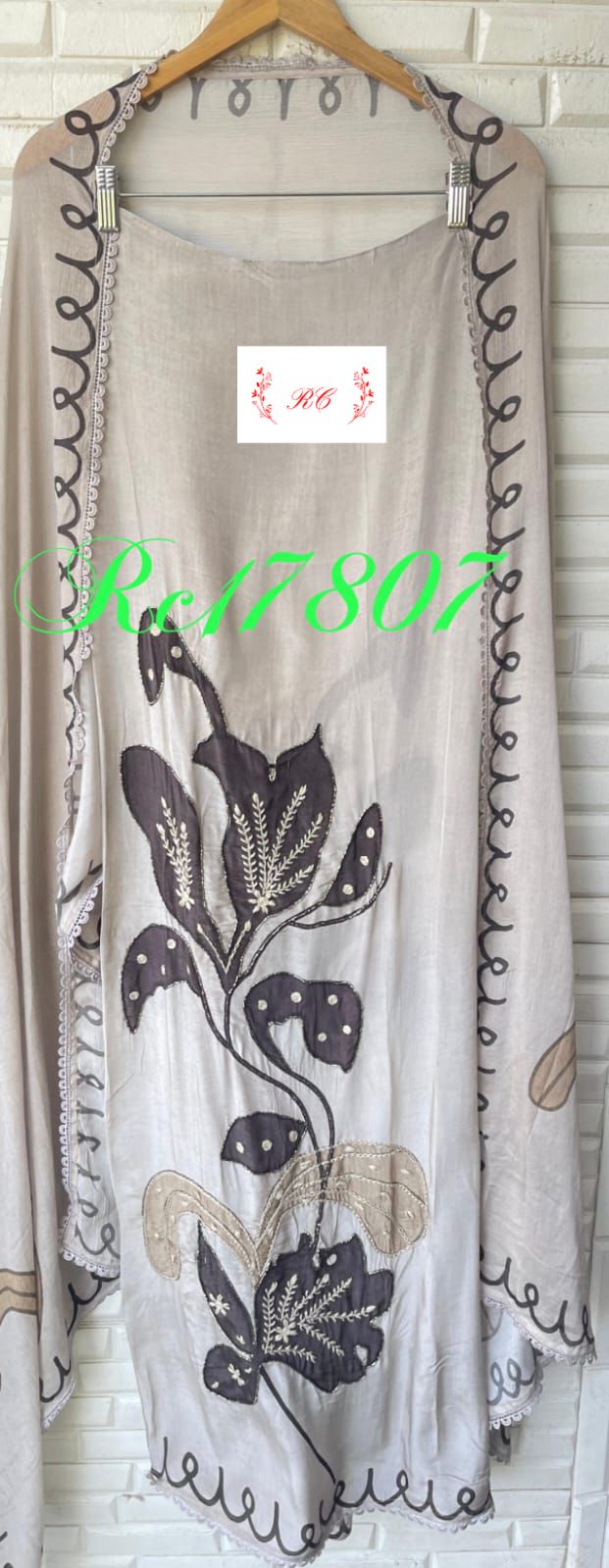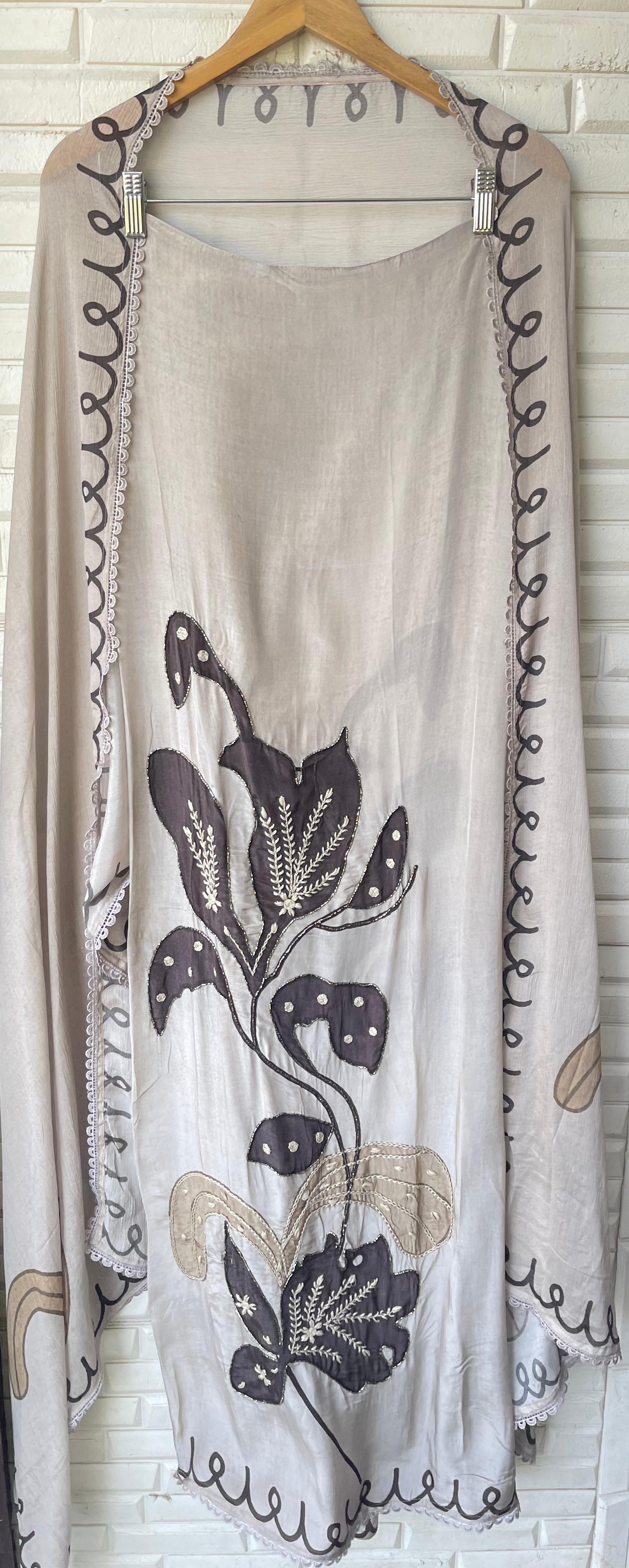 😊 pure satin crape fabric unstitched shirt with print all highlighted in kutdanna resham knots embroidery