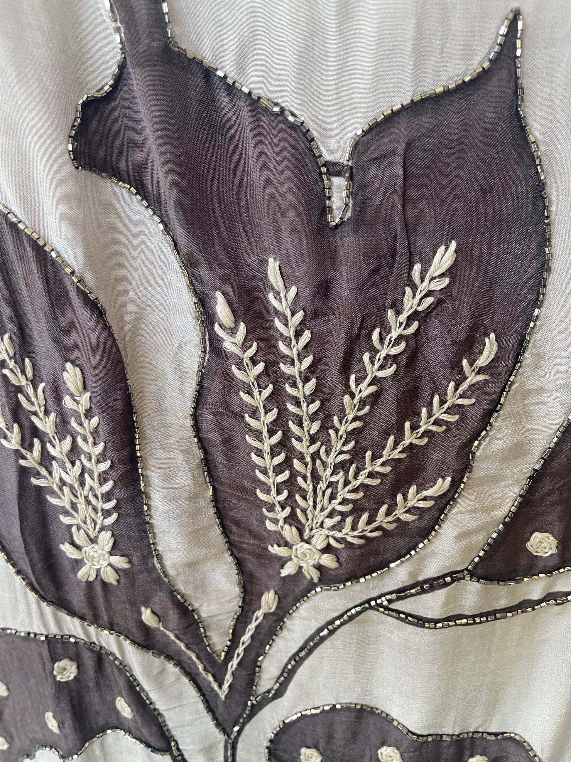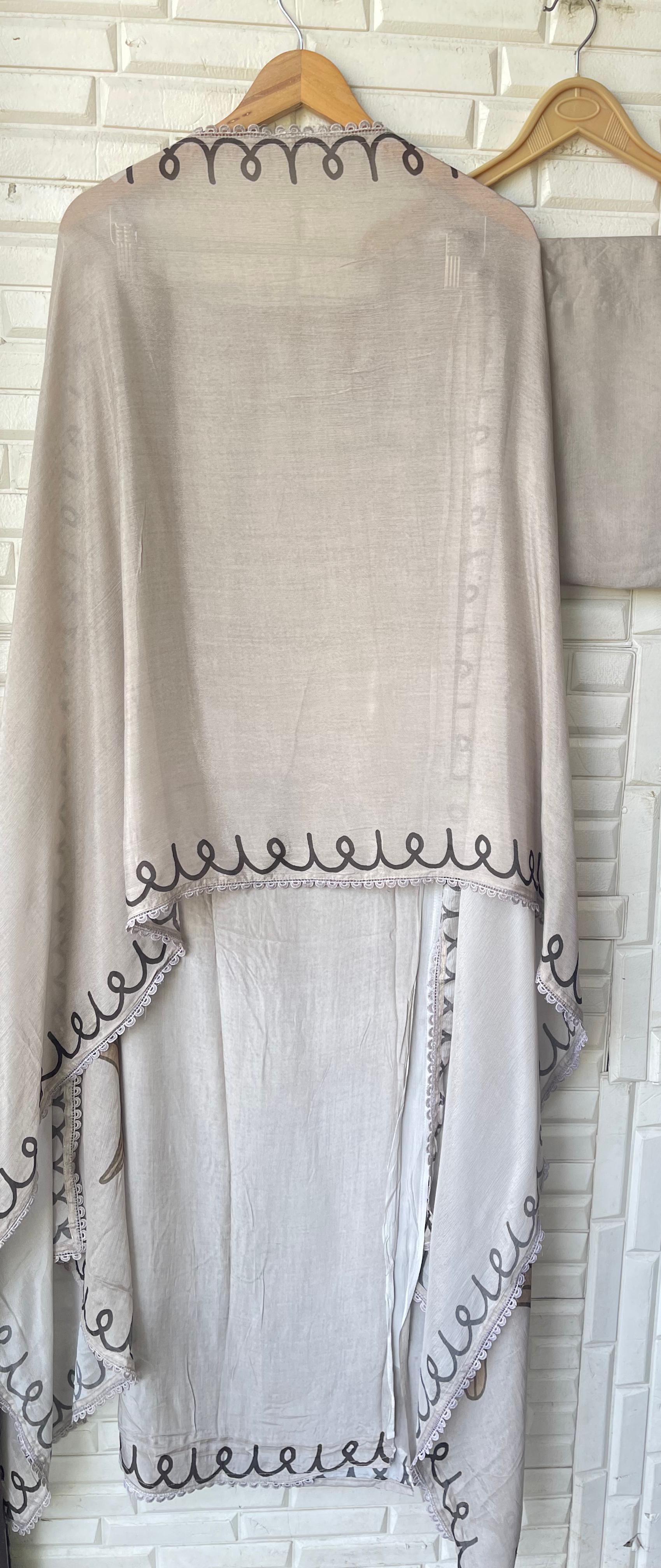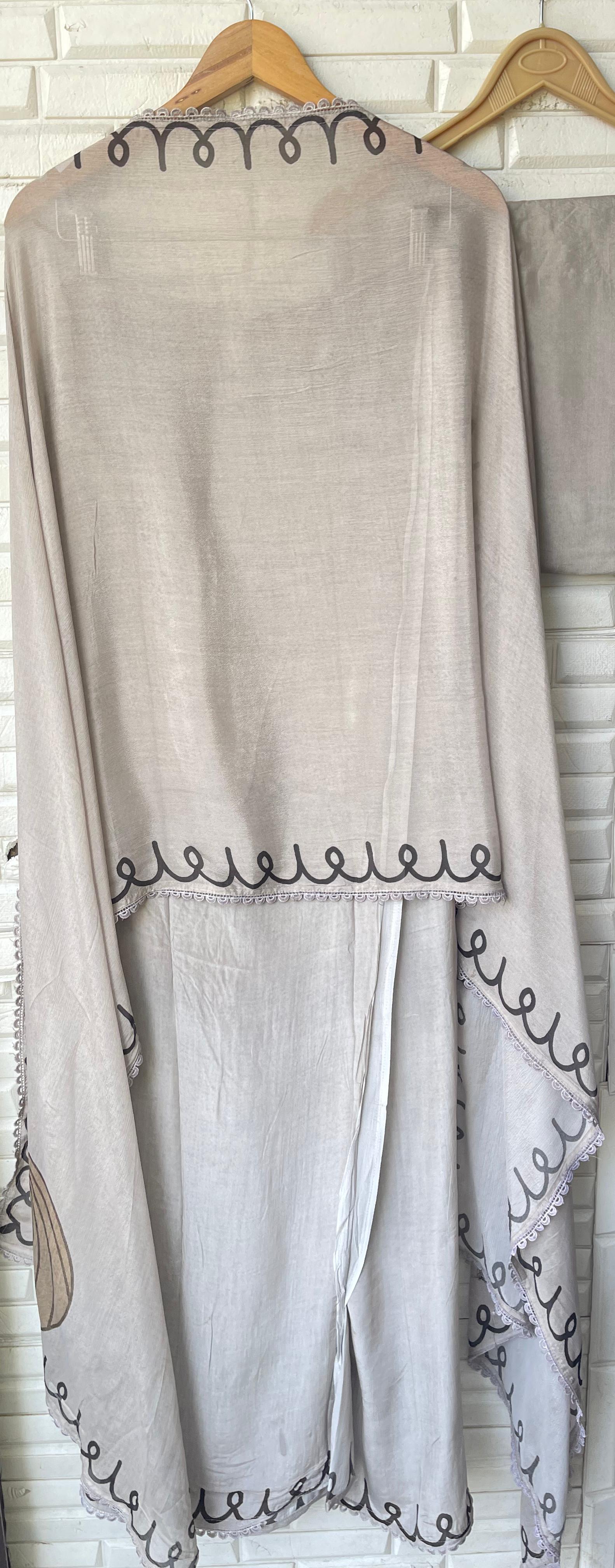 😊 pure satin crape fabric unstitched shirt with print all highlighted in kutdanna resham knots embroidery