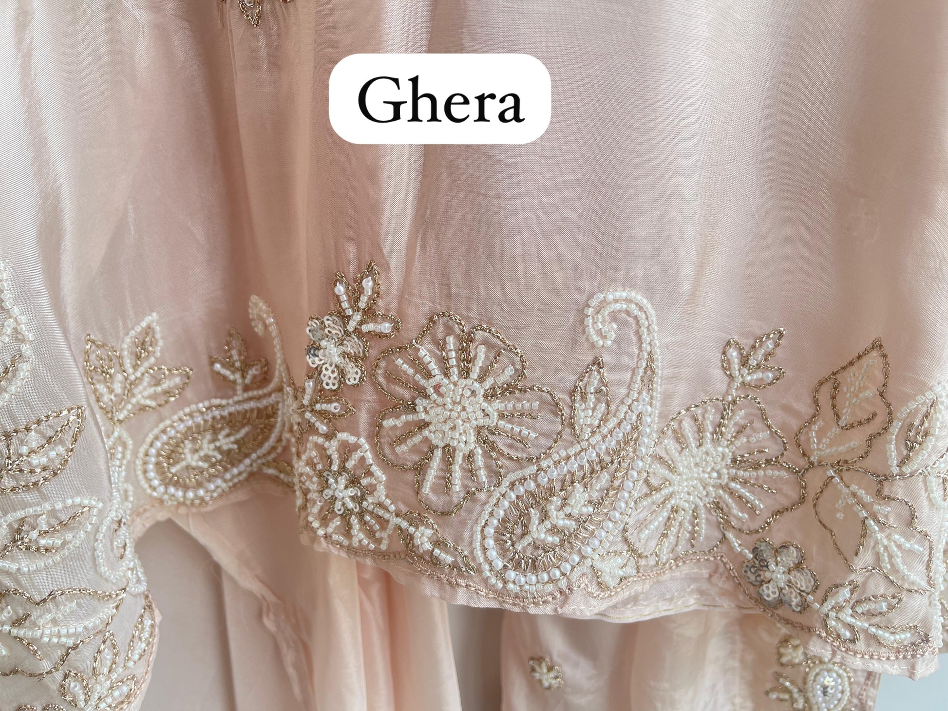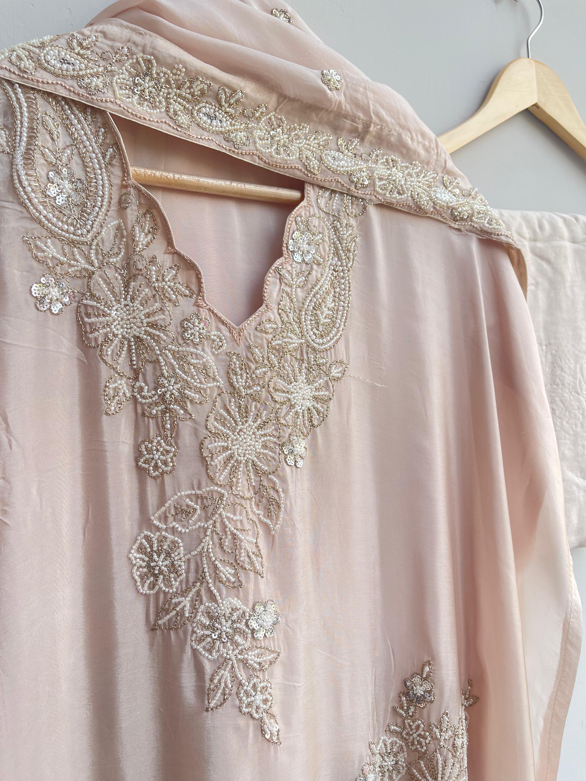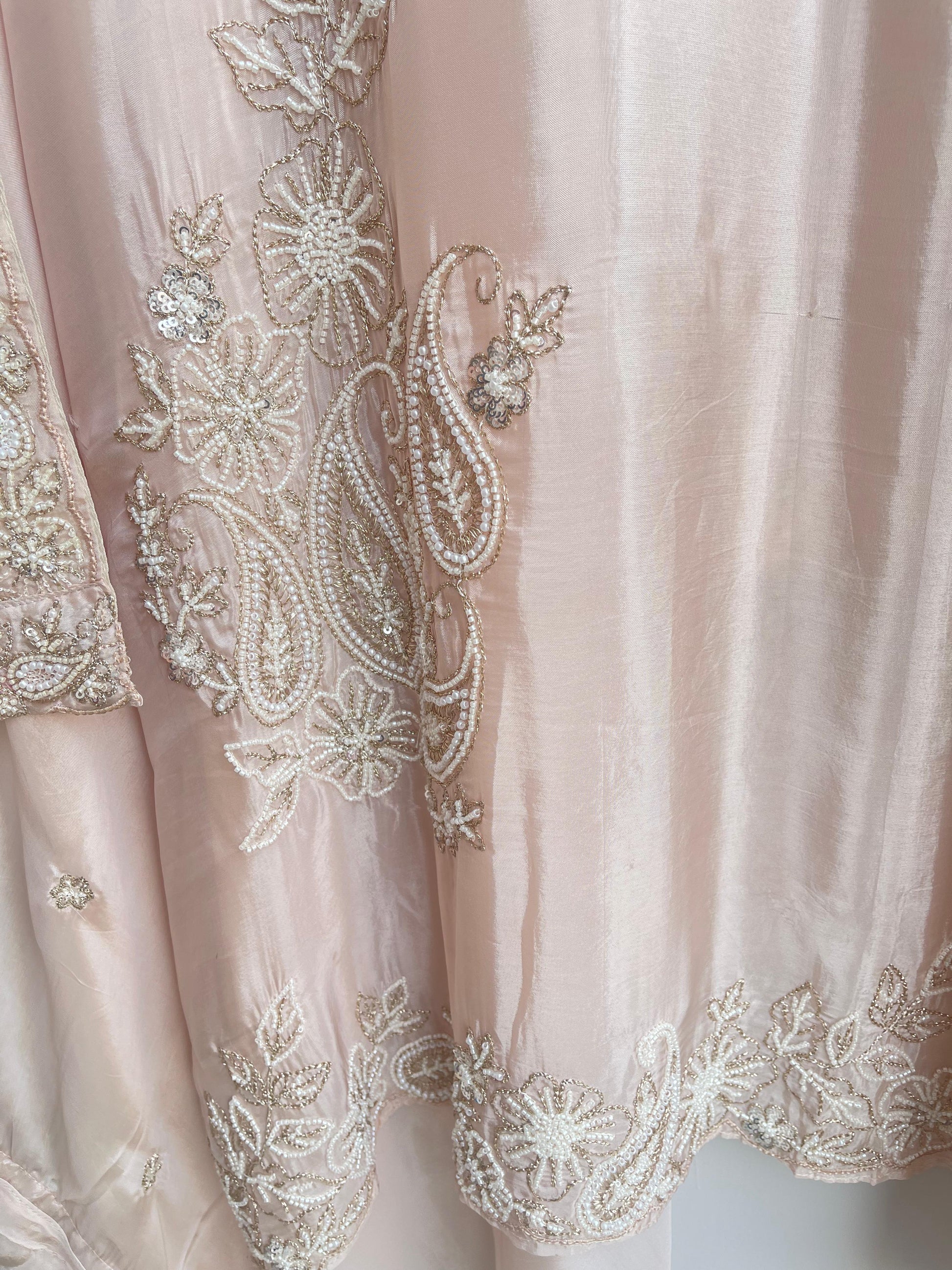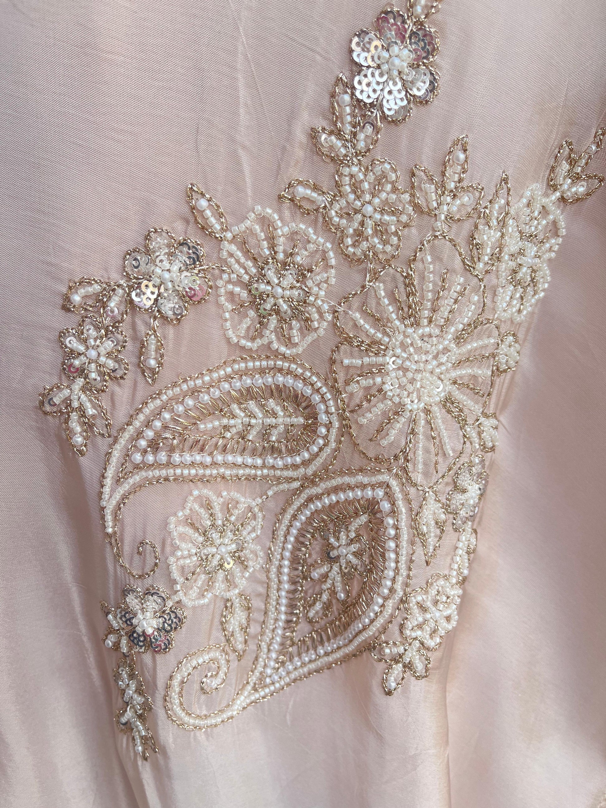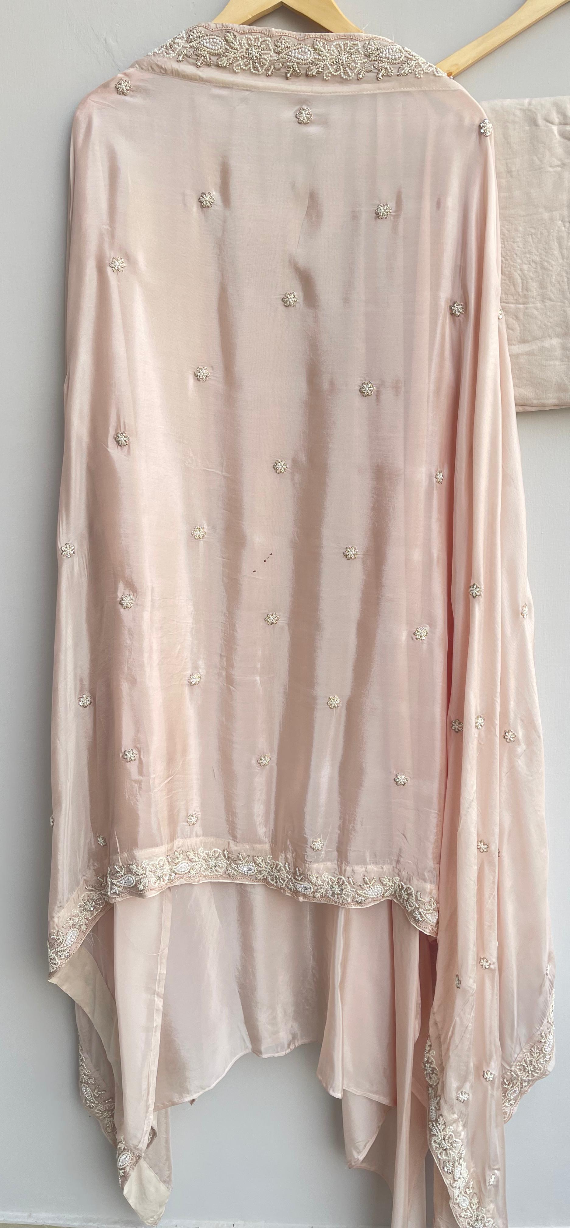 😊 pure satin crape fabric unstitched shirt with pearl zari sequence resham embroidery