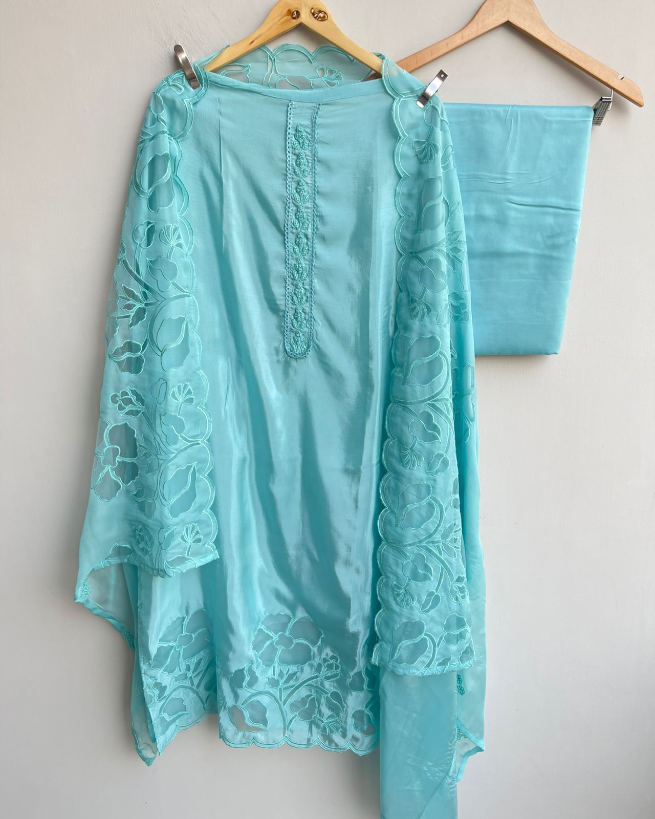 😊 satin crepe applique work fabric unstitched shirt with resham appliqué cutwork