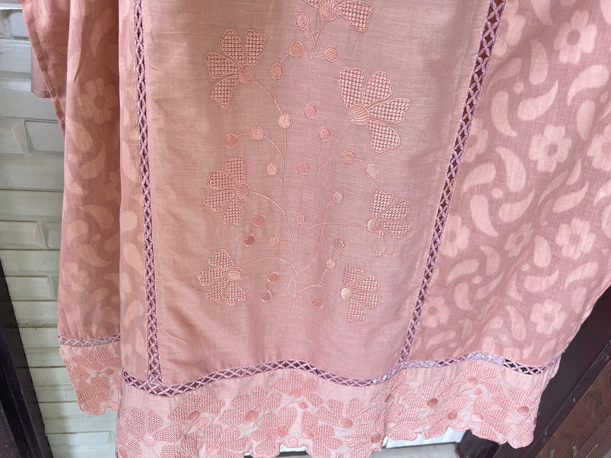 😊 self cotton fabric unstitched shirt with crotia kurta patti and insertions and resham embroidery