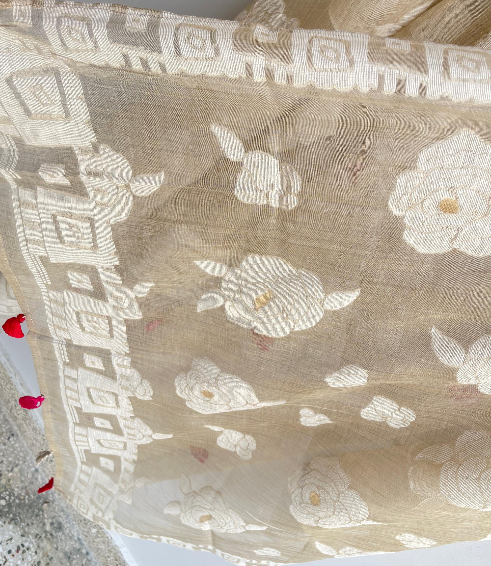 😊 self woven stunning khaadi silk mul Chanderi fabric dupatta with resham embroidery and latkans