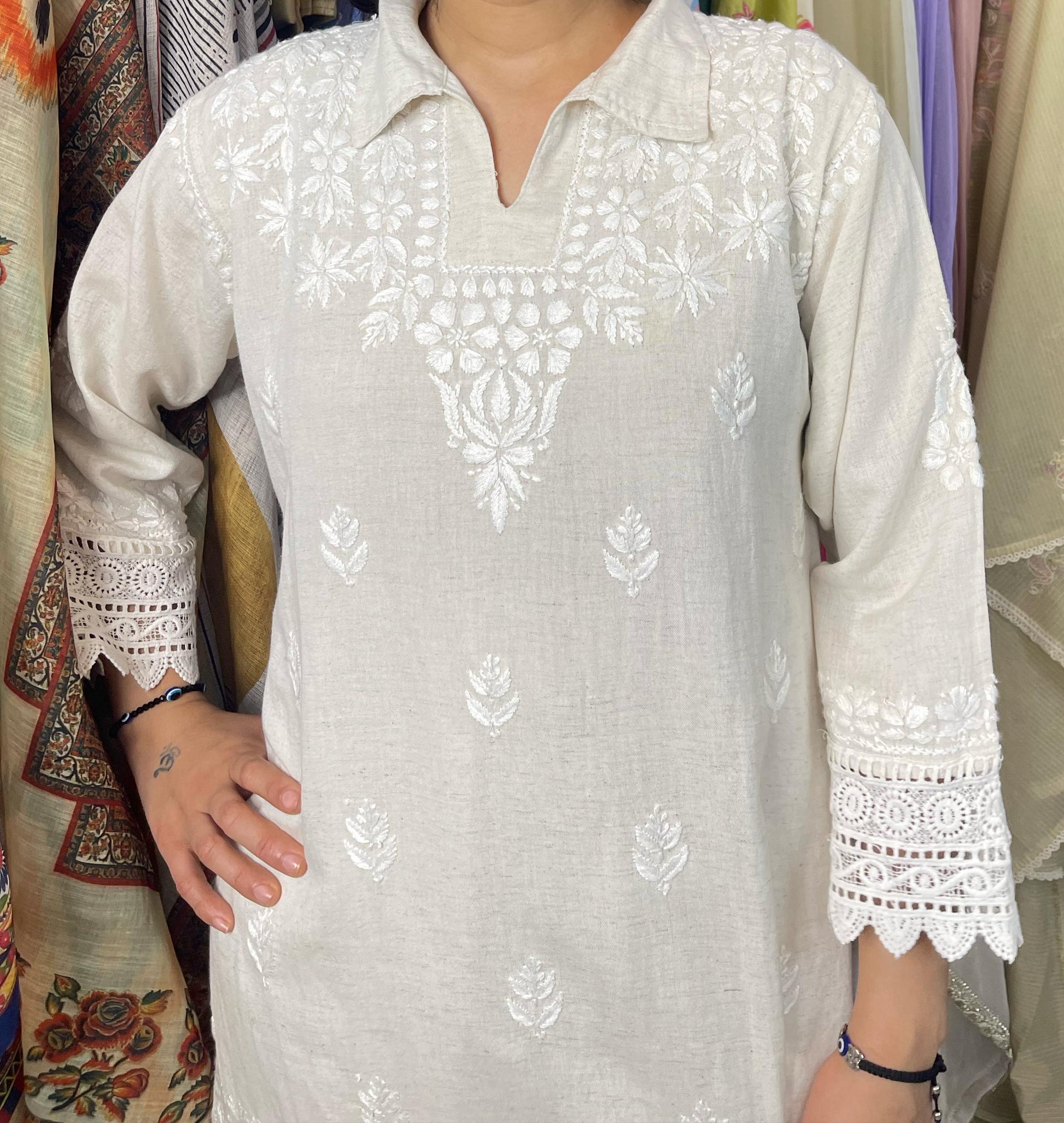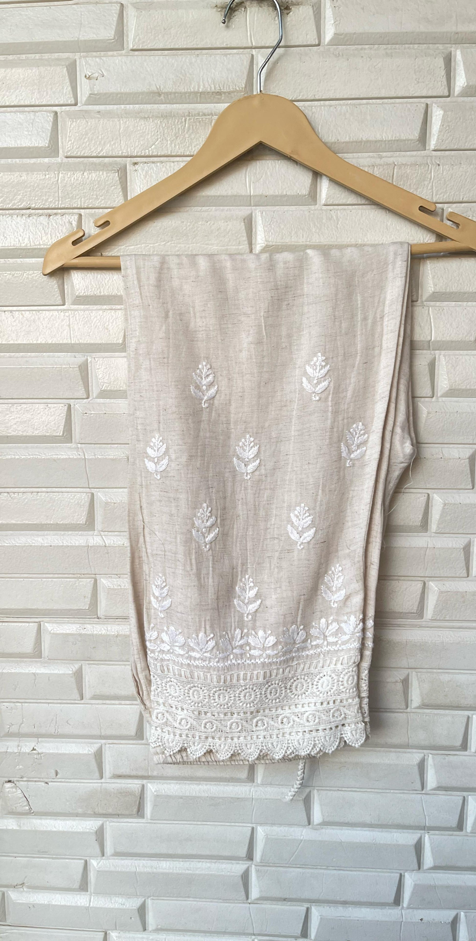 ☺️ self linen cotton fabric stitched pant with lining embroidery and crotia lace