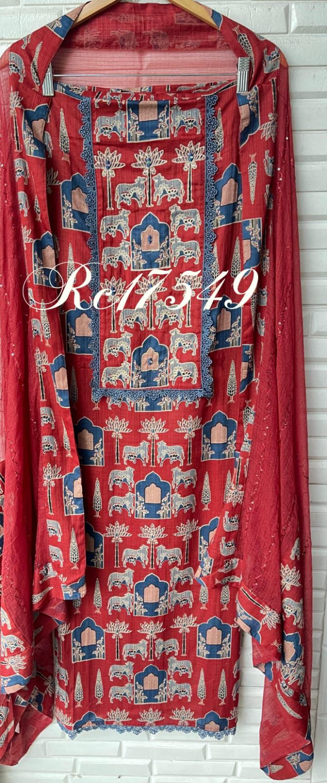 Self linen cotton unstitched ladies suit Rc17549 (a)