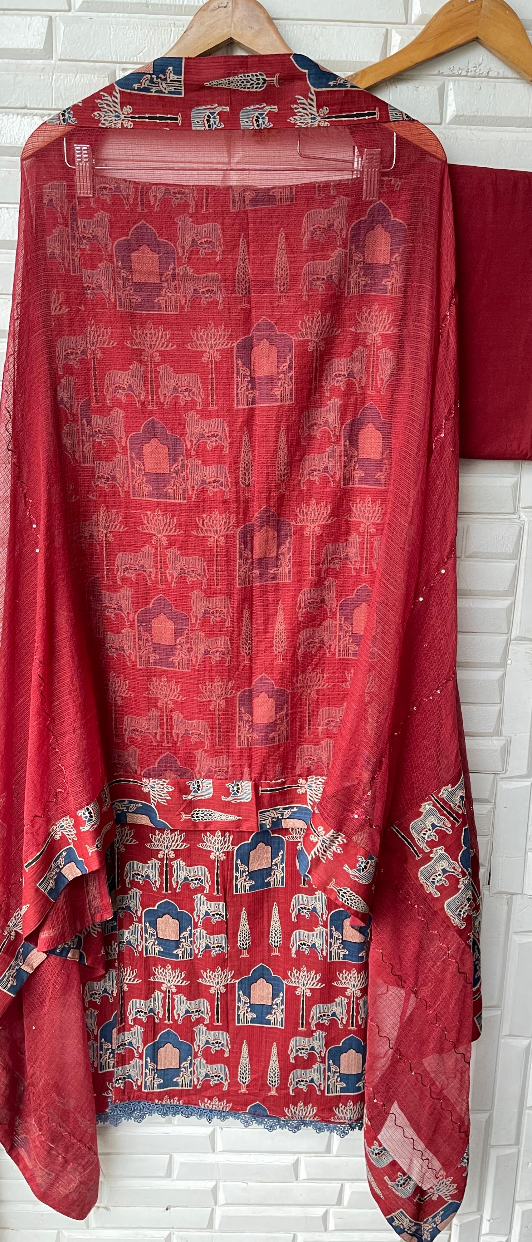 😊 kota doriya soft fabric dupatta with sequence weaving printed patchwork with zari highlighting