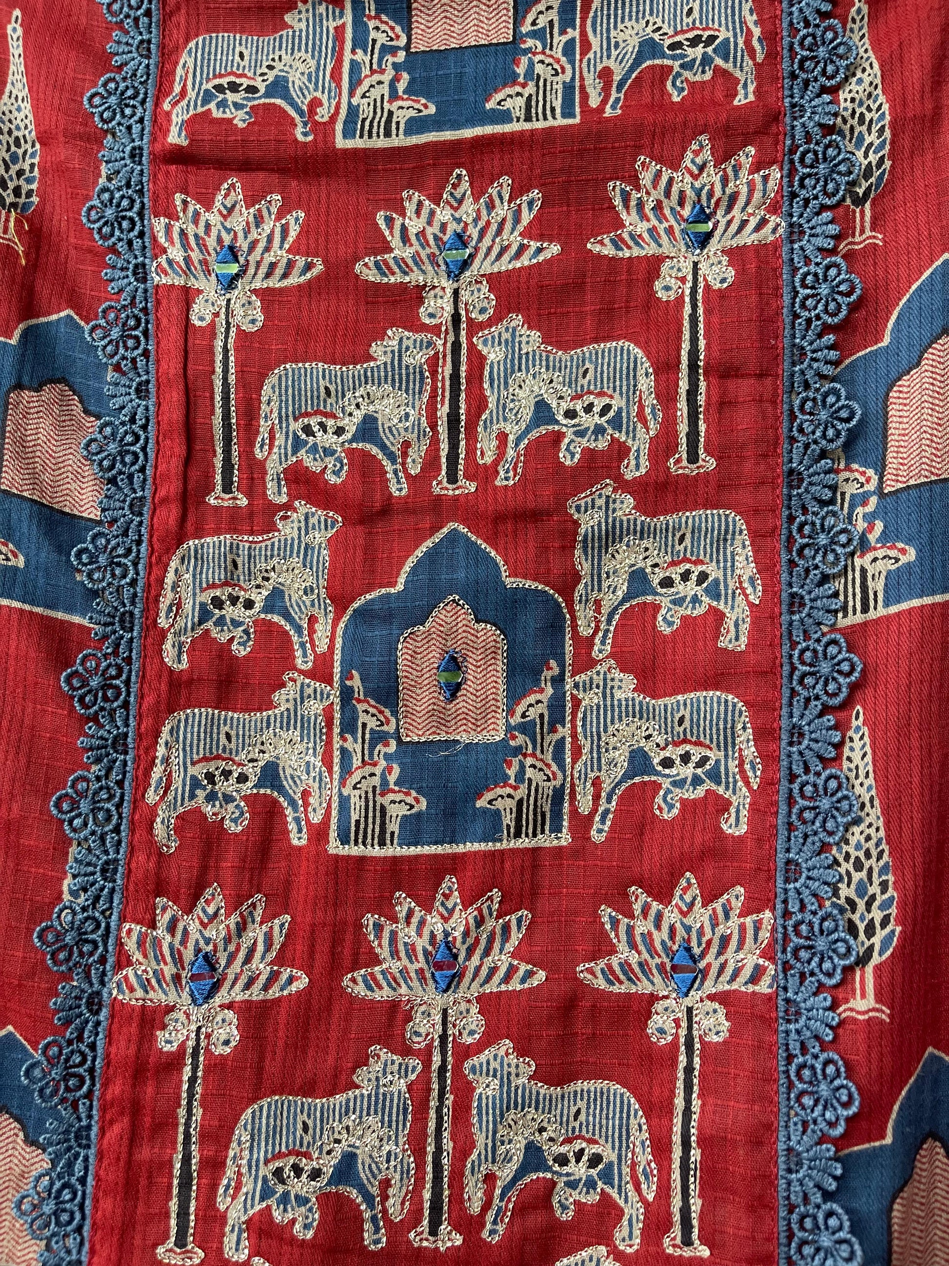😊 self linen cotton printed fabric unstitched shirt with crotia neck work resham mirror work zari highlighting embroidery