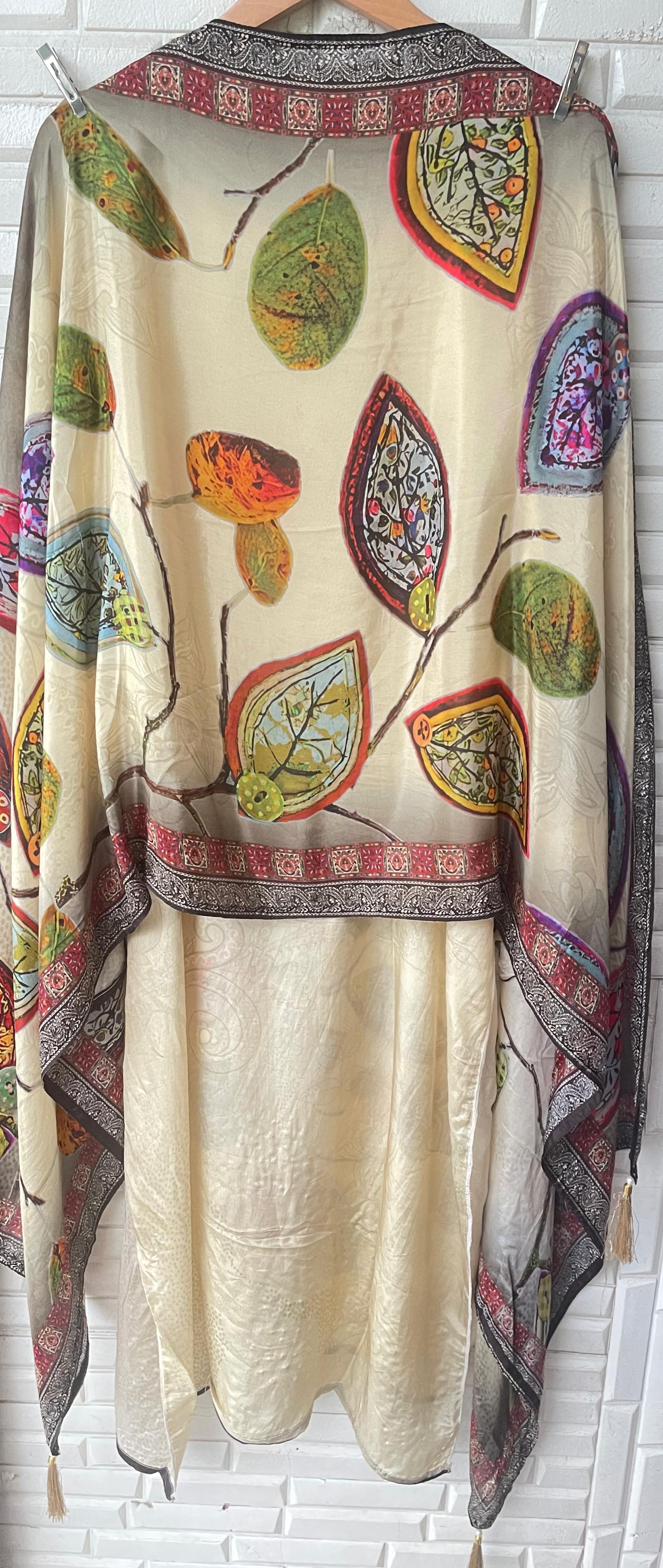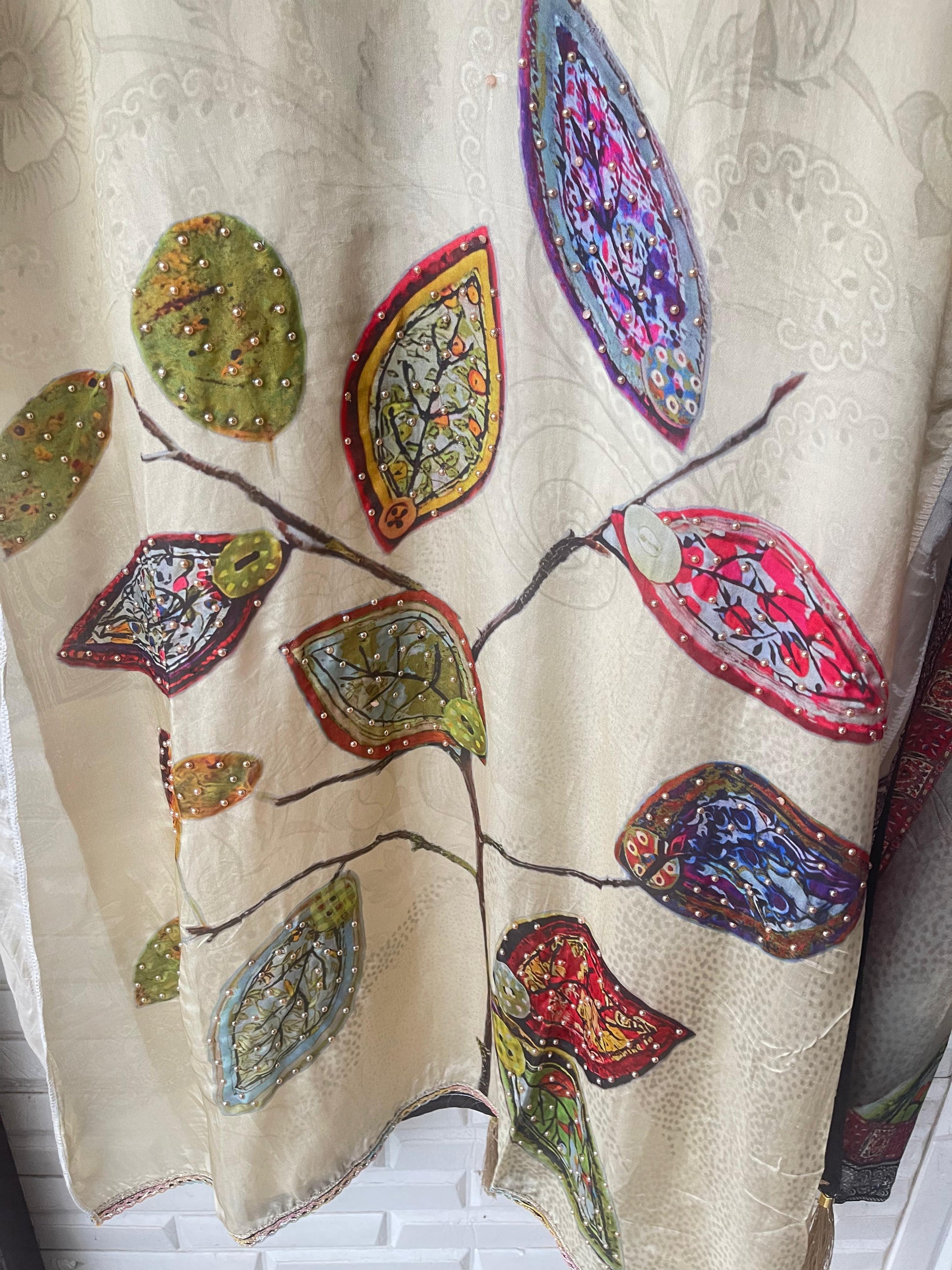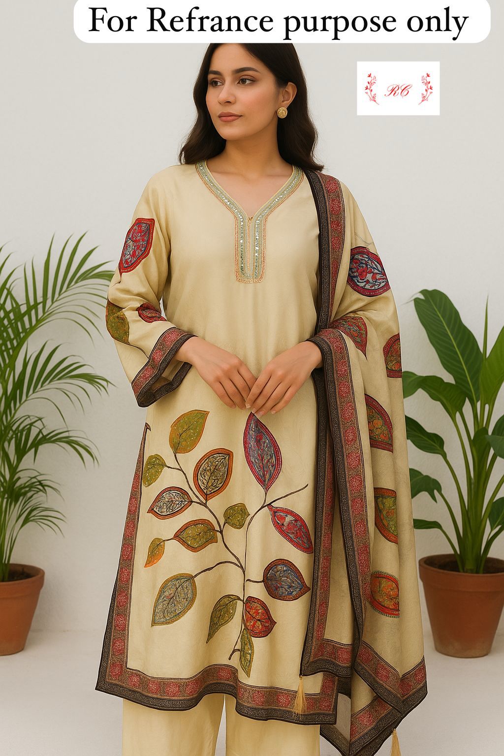 π self muslin crape fabric unstitched shirt with mirror zari resham lace on neck and pearl highlighting on printed patchwork